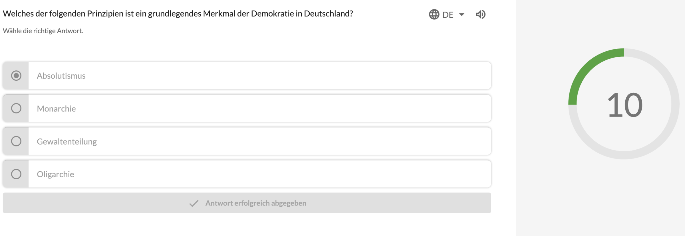 - Lernstandskontrollen: Durch eine schnelle und effektive Auswertung können Lehrpersonen den Lernfortschritt der Teilnehmenden überprüfen.