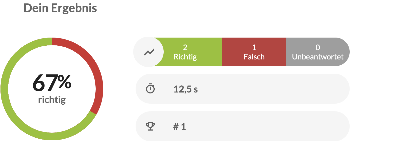 - Verständnis prüfen: Auf Basis der Quiz-Ergebnisse können Lehrpersonen Verständnisschwierigkeiten aufdecken und explizit darauf eingehen. Hierfür eignet sich insbesondere die Lehrmethode Peer Instruction.