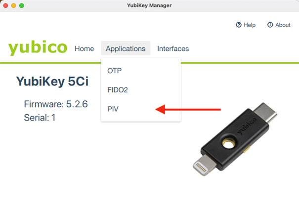 Öffnen Sie den YubiKey Manager und stecken Sie ihren YubiKey in ihren Computer.