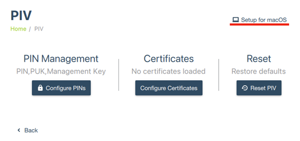 Gehen Sie dafür wieder in das „PIV“ Fenster. Klicken Sie nun aber auf „Setup for macOS“ und dann auf noch einmal auf den gleichnamigen blauen Button unten links