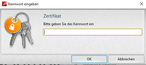 - Geben Sie das Kennwort ein, welches Sie sich beim Erhalt des Zertifikats ausgedacht haben.