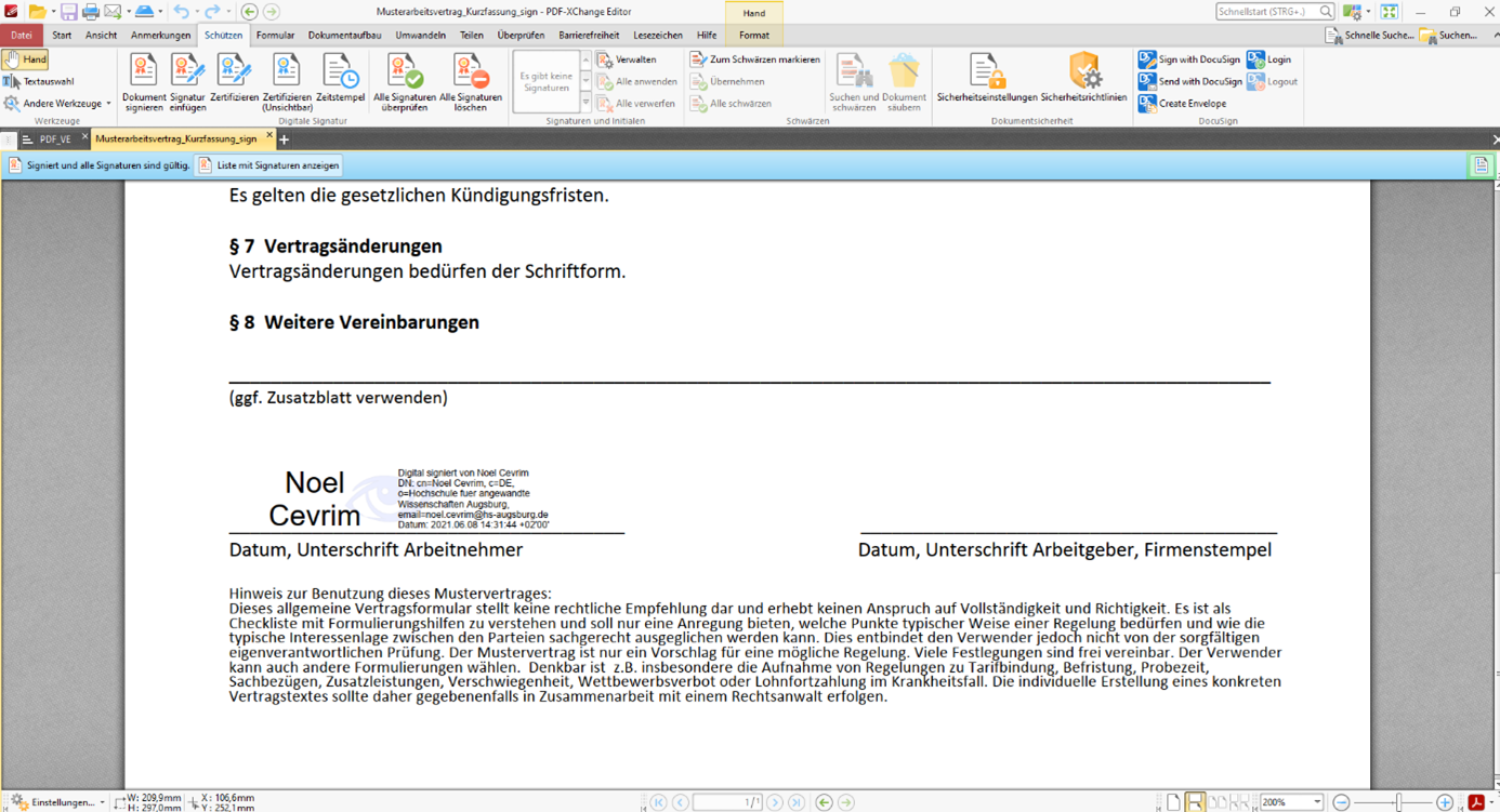 - Nachfolgend sehen Sie Ihre digitale Signatur an der gewünschten Stelle.