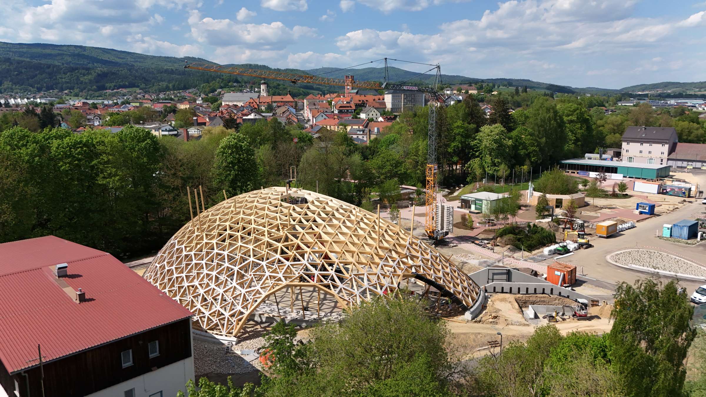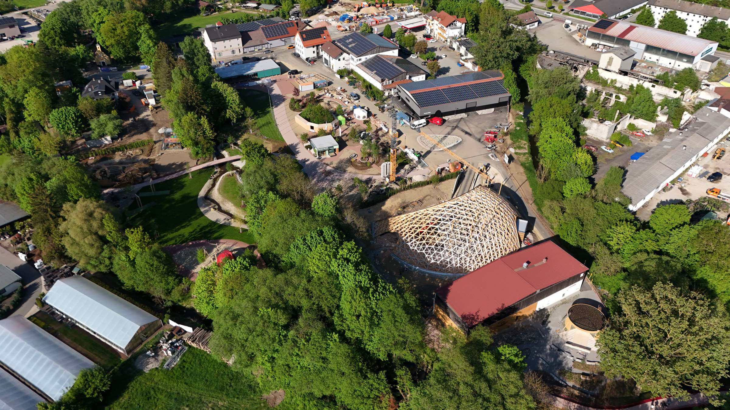 Die Parkarena Furth ist eine großformatige Gitterschale aus heimischem Holz mit knapp 40 Metern Spannweite und 14 Metern Höhe, die als offene Hallenkonstruktion 450 Sitzplätze überspannt und für verschiedene Open-Air-Veranstaltungen für die Bayerische Landesgartenschau Furth im Wald 2025 dauerhaft errichtet wurde. Während der einjährigen Projektlaufzeit von Juni 2024 bis Juni 2025 wurde die kuppelartige Dachkonstruktion in Kooperation zwischen Forschenden des Technologietransferzentrums (TTZ) digitales Planen und Fertigen im Bauwesen in Aichach unter der Leitung von Prof. Dr.-Ing. Christopher Robeller, wissenschaftlicher Leiter im Forschungsbereich digitaler Holzbau am TTZ Aichach und Ph.D. Hamed Karimian A., wissenschaftlicher Mitarbeiter am TTZ Aichach, gemeinsam mit Architekt Peter Hickl vom Büro PHII Architektur entwickelt. Realisiert wurde die Bühne von der Landesgartenschau Furth im Wald 2025 GmbH und der Stadt Furth im Wald sowie Tragwerksplanern von der str.ucture GmbH Stuttgart, Prüfingenieuren von der ZM-I Regensburg GmbH und der Holzbau-Penzkofer GmbH, Eschlkam.