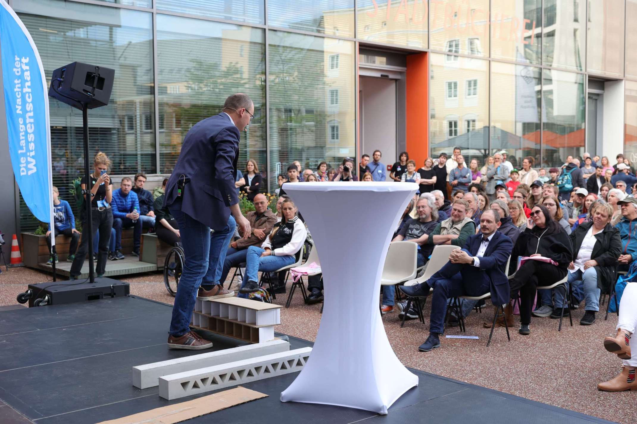 Wie klima- und ressourcenschonend mit alternativen Baumaterialien im Holz- und Massivbau gebaut werden kann, darüber informierten die Forschenden des Technologietransferzentrums (TTZ) Digitales Planen und Fertigen im Bauwesen der Technischen Hochschule Augsburg (THA) auf der Langen Nacht der Wissenschaft, die am 4. Mai 2024 von 18:30 - 23:00 Uhr in Augsburg stattfand.