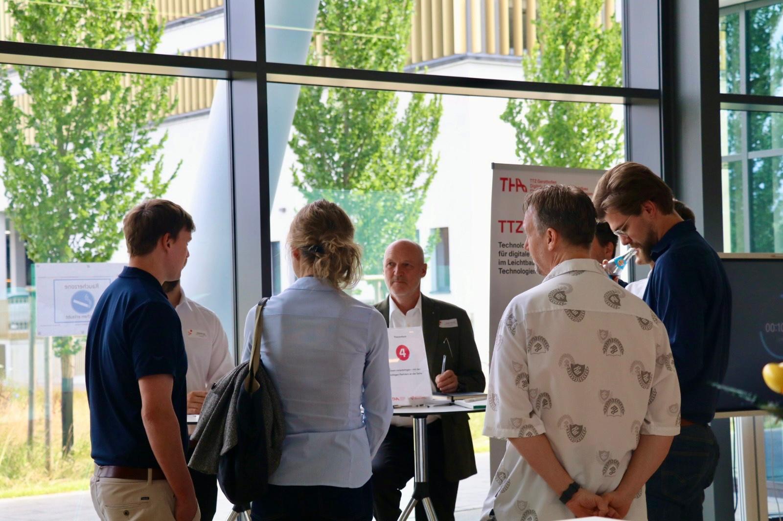 Die Teilnehmenden hatten Gelegenheiten zum fachlichen Austausch und Netzwerken. So tauschten sich die Mitarbeitenden von Technologieunternehmen an praxisnahen Thementischen und in Workshops zu aktuellen Entwicklungen, Forschungsfragen und Anwendungsfeldern mit dem TTZ-Gersthofen-Team aus. Beim Lunch und Get Together knüpften sie Kontakte mit regionalen Wasserstoffanbietern und Elektrolyseurprojekten. Der Nachmittag war dem Einsatz von Wasserstoff in der industriellen Praxis gewidmet, von der Substitution fossiler Energieträger bis hin zu hybriden Versorgungskonzepten.