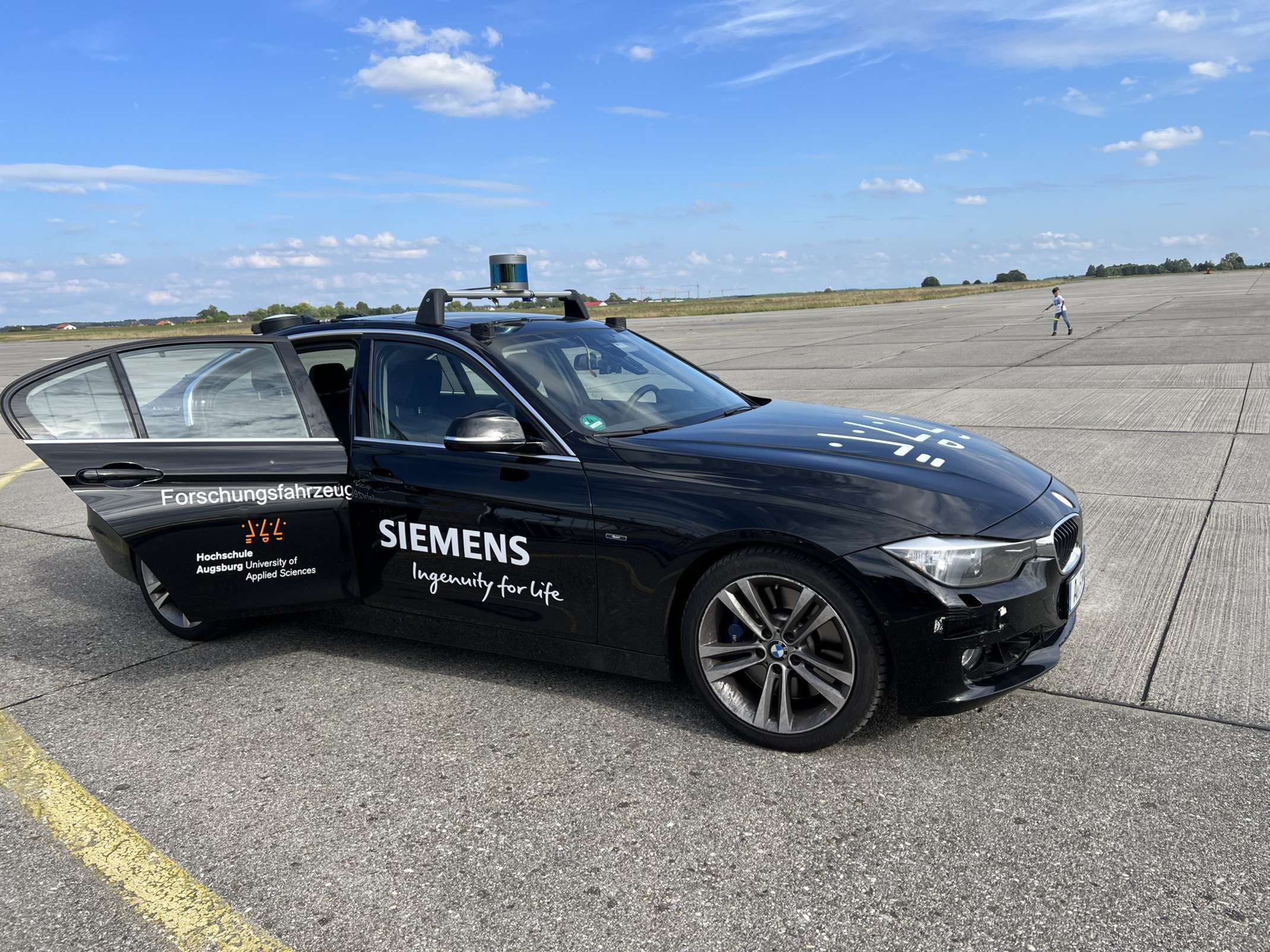 Das Forschungsfahrzeug der Technischen Hochschule Augsburg: Beim Tag der Offenen Tür können sich Besucher:innen autonom übers Testgelände des ADAC chauffieren lassen. Foto: ADAC/Karen Lüger