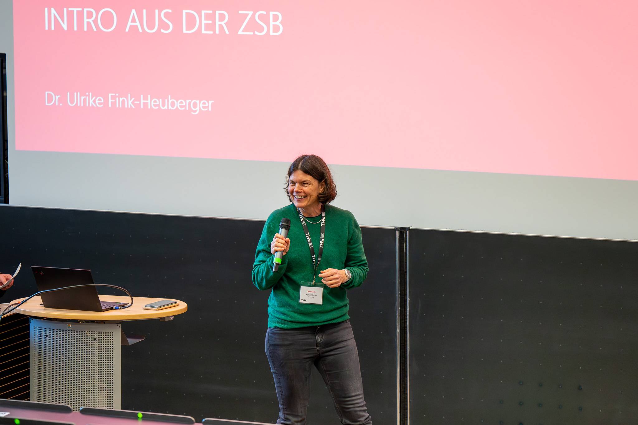 In ihrem Vortrag „Reine Formsache? Lehr- und Lernräume an der THA“ gab Prof. Dr. Svea Schauffler spannende Einblicke in innovative Lernumgebungen, darunter die SCALE-UP-Räume der Hochschule. Prof. Dr. Agnes Nocon und Dr. Ulrike Fink-Heuberger widmeten sich in ihrem Vortag dem sensiblen und relevanten Thema „Studierende mit psychischen Herausforderungen – Unterstützungsmöglichkeiten im Hochschulkontext“. Für spürbare Aktivierung im Hörsaal sorgten zu dem die Inputs „Starke Stimme“ und „Souverän mit starker Körpersprache" von Dagmar D'Alessio.