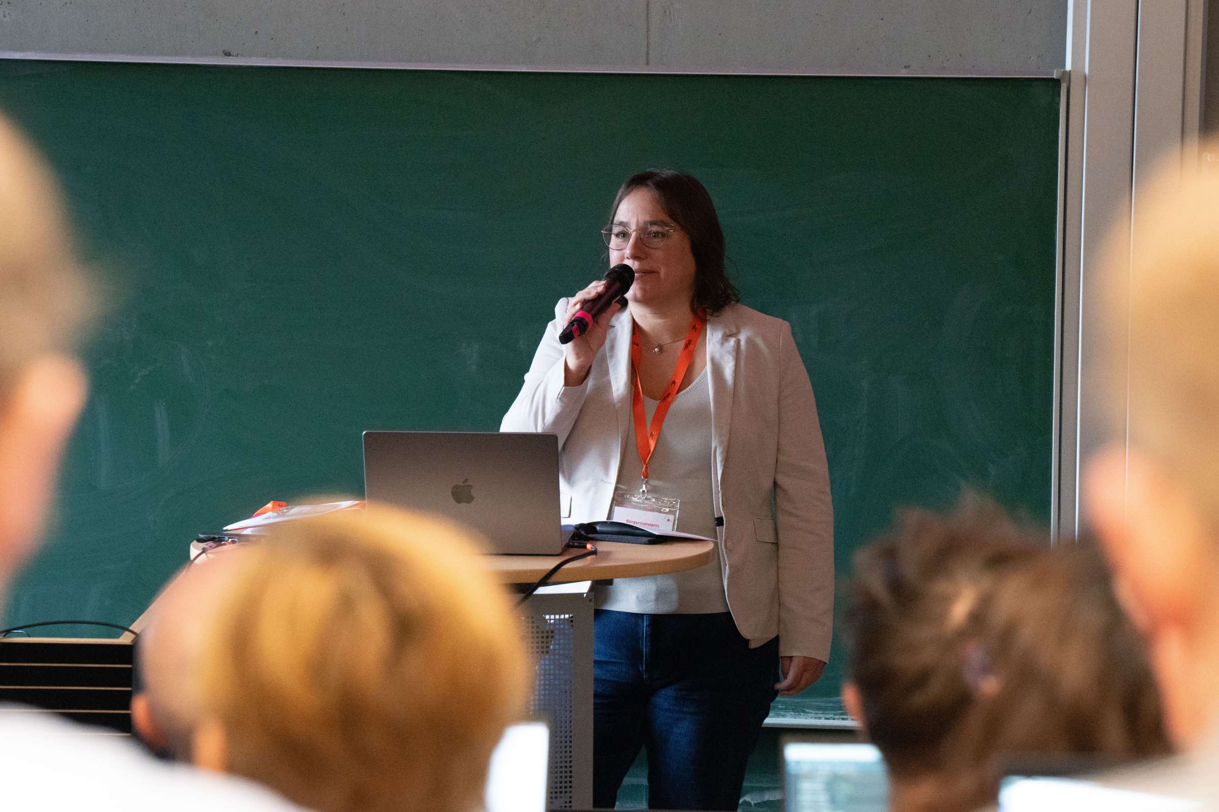 Für die zwei Keynotes konnte das DMZ Michael Folgmann (TU München) und Prof. Dr. Achim Zeileis (Univ. Innsbruck) gewinnen, die Ihre Lehrerfahrungen zu den Themen „KI trifft aktive Lernkultur“ und „Prüfungsformate in Großlehrveranstaltungen“ mit den Anwesenden teilten. Im ersten Kurzvortrag lieferten Prof. Dr. Sarah Hatfield sowie Prof. Dr. Simone Kubowitsch (Fakultät Wirtschaft) kreative Insights zum neuen Lern- und Innovationslabor ELLSI. Alisa Kasle-Henke (Fakultät AGN) schloss mit der Vorstellung eines originellen Feedback-Ansatzes zur Förderung der Präsentationsfähigkeit von Studierenden an. Auch Prof. Dr. Daniel Niebauer (Fakultät AGN) sprach über das „Verinnerlichen“ von Wissen und den Herausforderungen des Theorie-Praxis-Transfers, besonders im Studiengang Soziale Arbeit. Bianca Fasel vom Didaktik-Medien-Zentrum führte hingegen empirisch belegte Faktoren für ein nachhaltiges Lernerlebnis von Studierenden auf und präsentierte neben konkreten Handlungsempfehlungen die Überlegungen zu einem Kompetenz-Check für Lehrende.