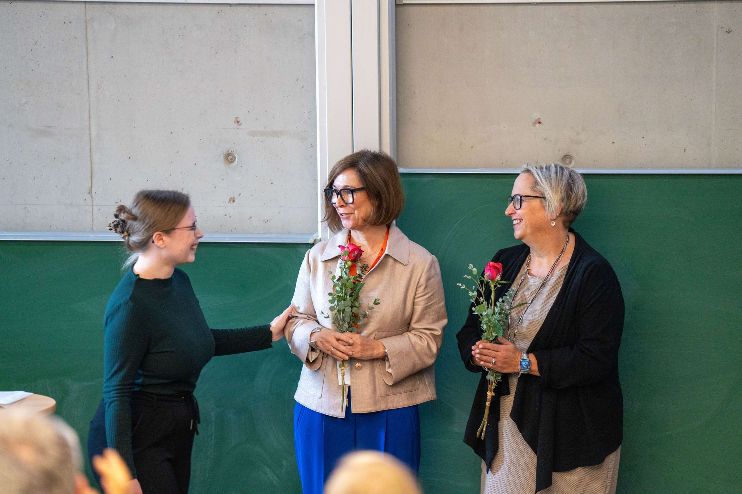 Neben dem Speed-Networking, das die Vernetzung untereinander förderte, erreichte der Vormittag seinen Höhepunkt in der Vergabe des Preises für gute Lehre in zwei Kategorien. Von den Studierenden nominiert und durch eine interdisziplinäre Jury ausgezeichnet wurden Prof. Dr. Sabine Joeris (Fakultät Wirtschaft) in der Kategorie Projekt sowie Alisa Kasle-Henke in der Kategorie Großveranstaltung. Die Prämierung wurde von Prof. Dr. Laszló Kovács (Vizepräsident, Ressort Studium und Lehre), Sarah Huber (Ressort für Studium und Lehre) und Brawndy Graça Kapela (Vorständin der Studentischen Vertretung) moderiert.