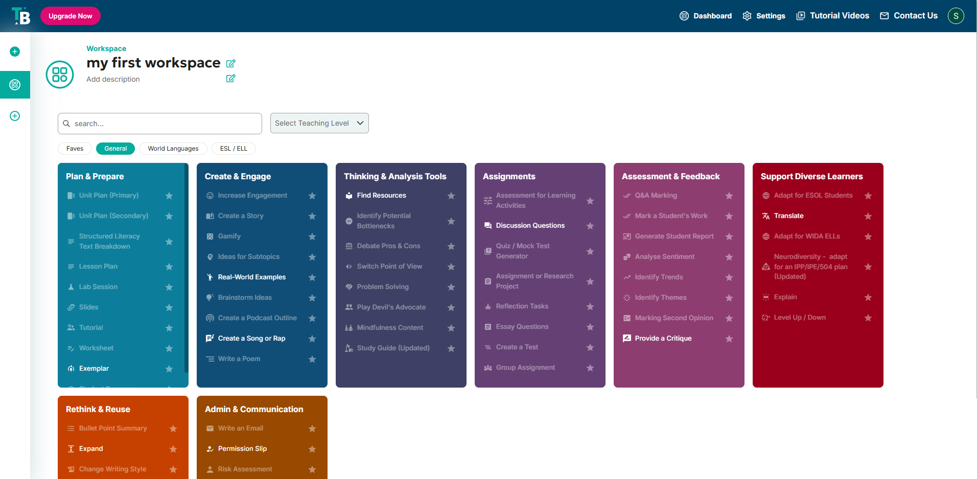 Plan & Prepare: Unterstützung bei der Unterrichtsplanung, etwa mit Templates für Unterrichtseinheiten, Arbeitsblätter oder Präsentationen.