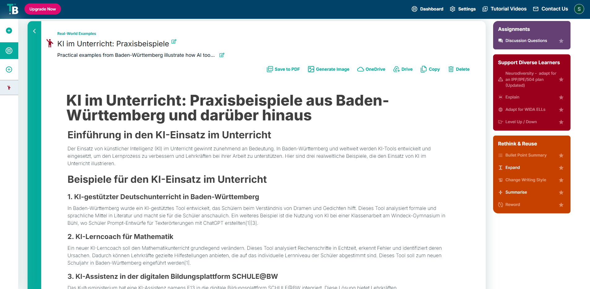 Teacher's Buddy ist ein KI-gestütztes Planungstool für Lehrende, das dabei hilft, Unterrichtseinheiten schnell, strukturiert und zielgerichtet zu entwickeln. Ursprünglich für den Schulkontext konzipiert, eignet sich das Tool auch für Hochschullehrende, die Inspiration, Struktur oder Entlastung bei der Vorbereitung von Lehrveranstaltungen suchen.