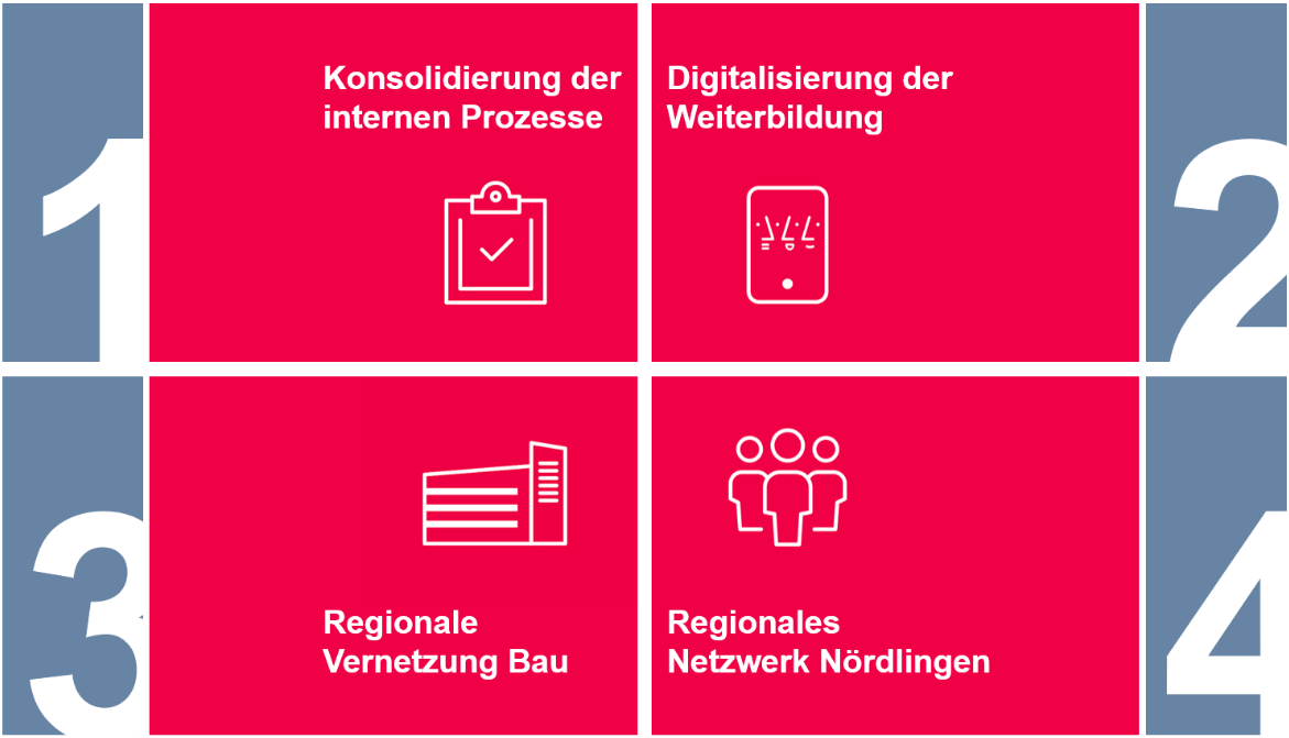 Im Rahmen des Projekts werden vorrangig vier Bausteine bearbeitet: