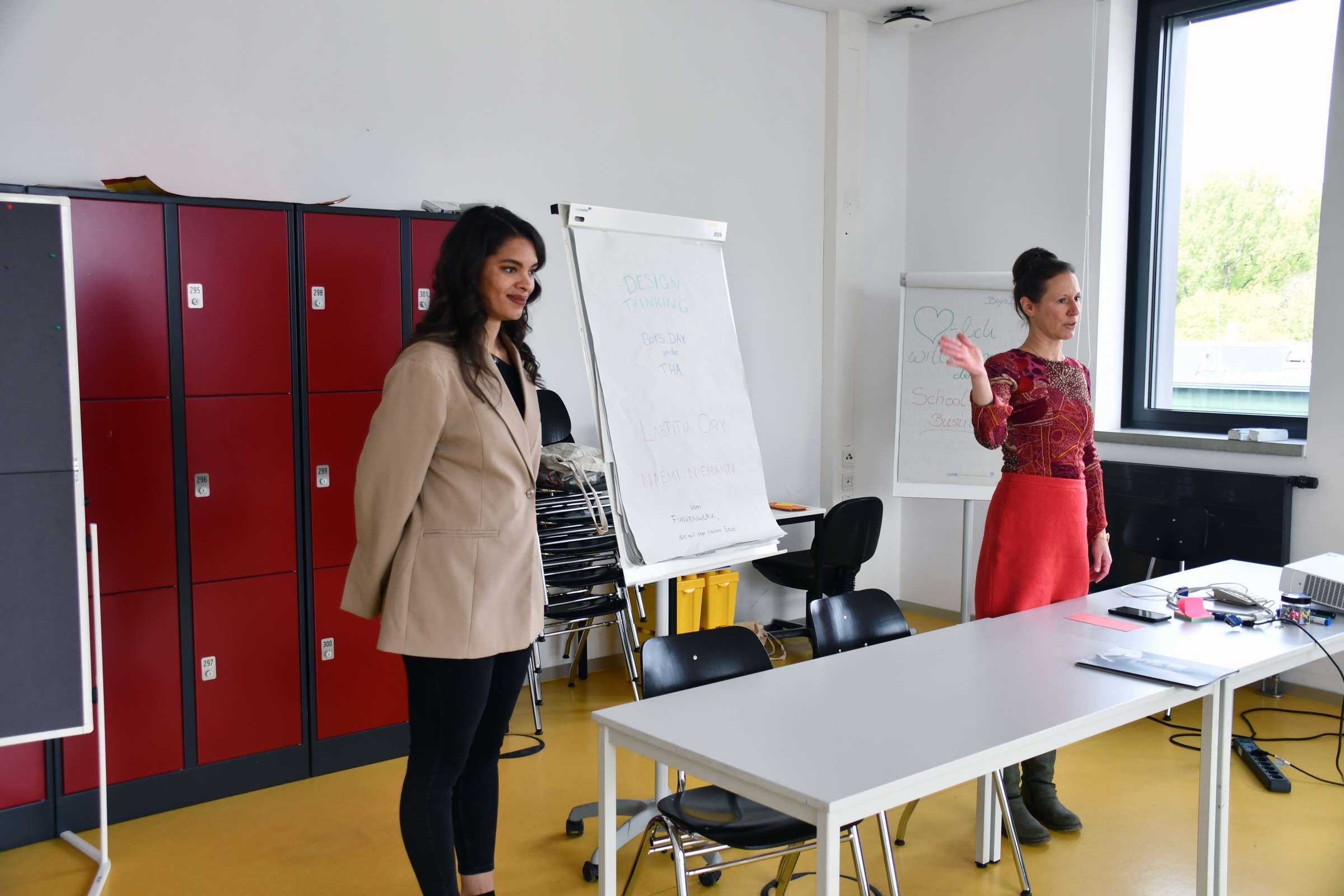Dann wurde es praktisch: Beim Workshop zum Thema Design Thinking beeindruckten die Schüler mit ihrer Kreativität und ihrem Erfindergeist. Unter der Leitung von Laetitia Ory und Naemi Niemann von der Startup-Schmiede Funkenwerk entwickelten sie in Gruppenarbeit innovative Lösungen für Alltagsprobleme. Die Themen umfassten die Entwicklung ergonomischer Stühle für Schüler, die Gestaltung eines Schulranzens, der wie ein Trolley hinter sich hergezogen werden kann, und die Idee einer Zeitmaschine zur Vermeidung von Lebensmittelverschwendung. Die Ergebnisse wurden in einer Abschlusspräsentation anschaulich mit Hilfe von Legosteinen vorgestellt. Wie in der realen Unternehmenswelt stellte Naemi Niemann, die in die Rolle einer Investorin schlüpfte, kritische Fragen, um die Geschäftsideen auf Rentabilität und Umsetzbarkeit zu prüfen. Die beiden Startup-Expertinnen zeigten sich von den Ergebnissen beeindruckt. „Hier war von günstigen und einfach umsetzbaren Ideen bis zu futuristischen Prototypen alles dabei. Es ist spannend zu sehen, wie viel Kreativität und Motivation in den jungen Menschen steckt. Die Ergebnisse sind wirklich einen ganz großen Applaus wert“, freute sich Laetitia Ory.