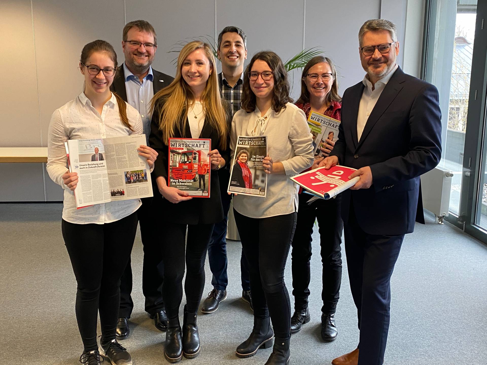 Die monatlich erscheinende Mitgliederzeitschrift „Bayerisch-Schwäbische Wirtschaft“ ist für Unternehmer der Region eine beliebte Pflichtlektüre. Informationen, Hintergründe, Firmenporträts, Trends und viel Service bieten jeweils einen bunten Blumenstrauß an Inhalten für die Mitglieder der IHK Schwaben. Doch auch ein Magazin muss immer wieder auf den Prüfstand. Wie bei jedem anderen Produkt geht es darum, die Wünsche der Leserinnen und Leser möglichst optimal zu erfüllen. Studierende des Masterstudiengangs Marketing/Vertrieb/Medien unterstützten im Kurs „Unter-nehmenskommunikation und Massenmedien“ von Prof. Dr. Manfred Uhl das Kommunikationsteam der IHK bei den Überlegungen zur Weiterentwicklung der BSW. Nach einem professionellen Briefing von Thomas Schörg, Kommuni-kationsleiter der IHK, sowie Heike Ditzler und Ercin Özlü analysierten Sarah Bachthaler, Rebecca Fuchs und Katharina Marxreiter systematisch die aktuelle Magazinkonzeption und verglichen sie mit ausgewählten Benchmarks aus dem Wirtschafts- und Verbändebereich. Sie überprüften ihre Erkenntnisse anhand einer Leserumfrage und erarbeiteten konkrete Ideen zur Weiterentwicklung der beliebten Zeitschrift. So entstanden passgenaue Empfehlungen für eine zeitgemäße Kombination aus Print- und Online-Formaten.