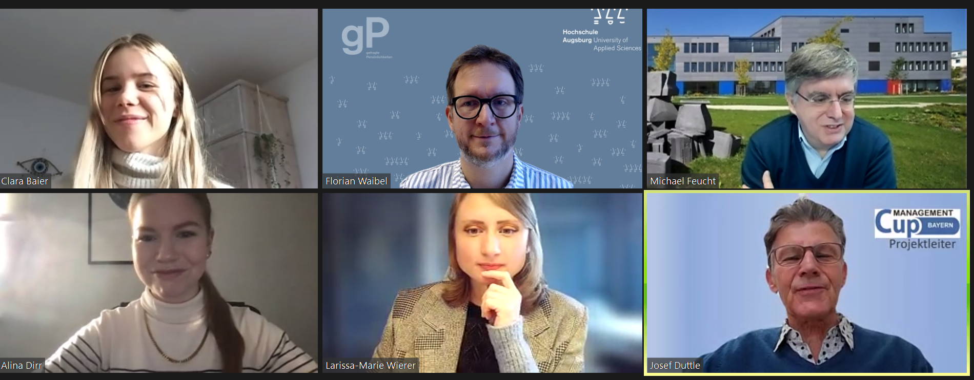 Vom 28. bis 30. September traten virtuell zwölf Teams aus verschiedenen Hochschulen und Universitäten Bayerns gegeneinander an. Die Studierenden schlüpften in die Rolle von Vorständ:innen, mit dem Ziel; den bestmöglichen Unternehmensgewinn zu erzielen und den Aktienkurs zu steigern.