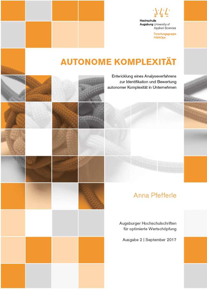 Pfefferle, A. (2017): »AUTONOME KOMPLEXITÄT - Entwicklung eines Analyseverfahrens zur Identifikation und Bewertung autonomer Komplexität in Unternehmen«, Augsburger Hochschulschriften für optimierte Wertschöpfung, Band 2, Shaker, 2017.