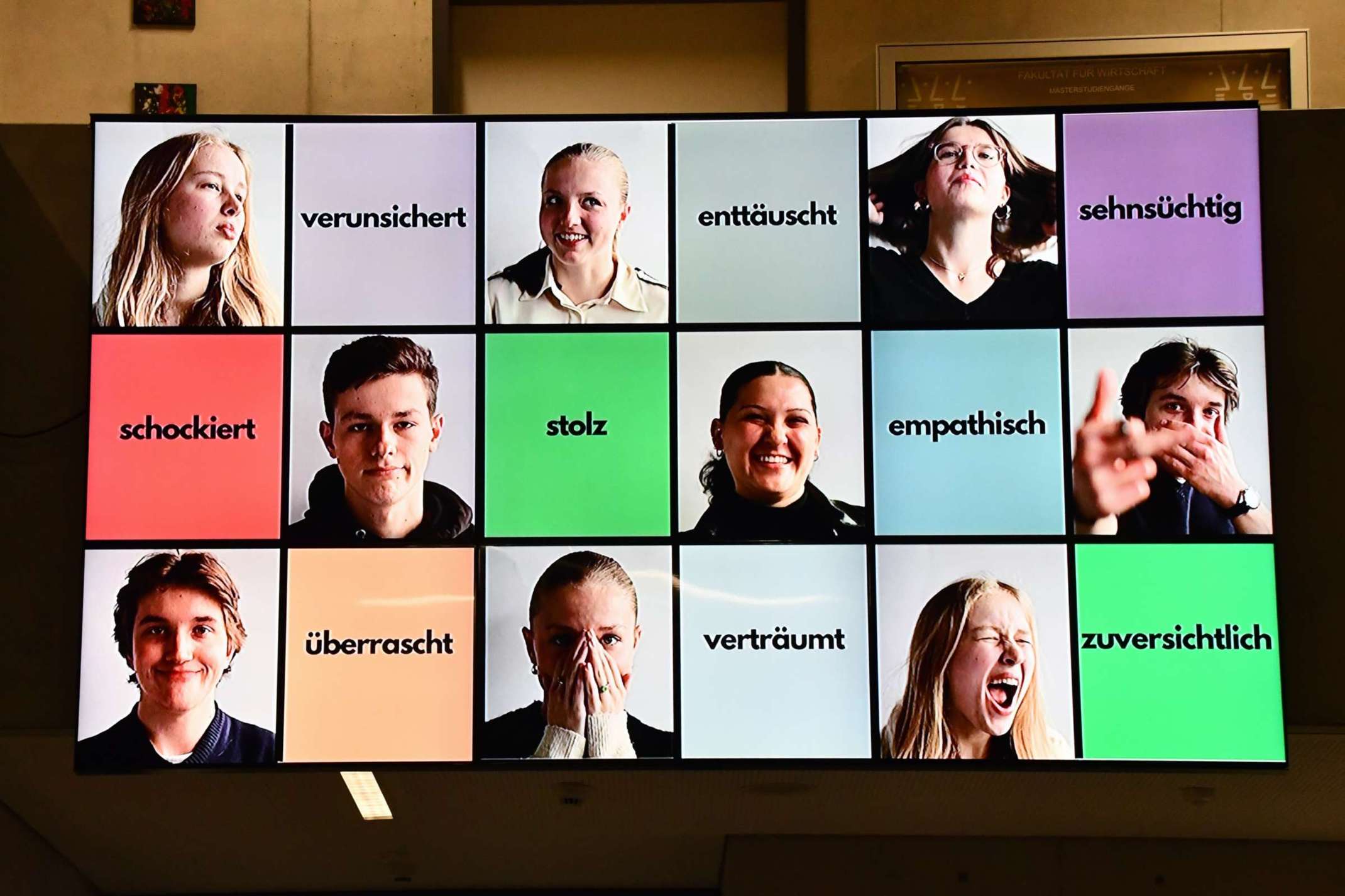 Christian Odato, Kunstpädagoge und Leiter des P-Seminars, erzählt bei der Eröffnungsfeier von der Entstehung der Ausstellung, der Themenfindung, Umsetzung und Suche nach der richtigen Kulisse für die Exponate: „Dass sich die Schüler für das Thema „Gefühle“ entschieden haben, sah ich anfangs skeptisch, denn die künstlerische Umsetzung ist schwierig. Man muss aufpassen, dass man nicht in Klischees verfällt und zu einer einfachen Symbolik greift. Und letztlich ist jedes künstlerische Werk Ausdruck eines Gefühls.“ Odato sieht die Phase des Lockdowns in der Corona-Pandemie als Auslöser für den Wunsch, Gefühle künstlerisch wiederzugeben: „Die Menschen hatten während des Lockdowns Zeit, sich selbst zu reflektieren und innezuhalten. Die Kunst bietet eine Möglichkeit, die unterschiedlichen Gefühle, die uns in dieser Zeit begleiteten und bis heute nachwirken, zum Ausdruck zu bringen.“ Er sei stolz, die vielfältigen Interpretationen heute präsentieren zu dürfen. Die Schüler hätten das Thema auf eindrucksvolle Weise künstlerisch umgesetzt. Und das Fakultätsgebäude mit seinen reduzierten Formen und grauen Wänden bilde einen perfekten Rahmen für diese Ausstellung. Zudem ermögliche die Hochschule als pädagogische Einrichtung vielen Menschen den Zugang zur Kunst und fördere einen lebendigen Austausch.