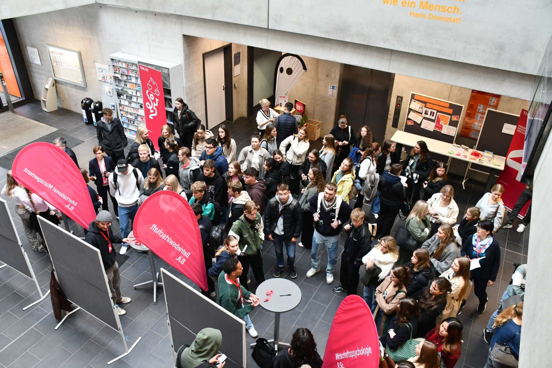 Die Orientierungsmesse der School of Business findet nach der hochschulweiten Begrüßung am 01. und 02. Oktober 2025 im W-Gebäude statt. An beiden Tagen erhalten Sie wichtige Informationen zu Ihrem Studium – von Einführungsveranstaltungen über Sprachkurse bis zum Auslandssemester. Die fachgebundenen Infoveranstaltungen sind verpflichtend für alle Studierenden. Nutzen Sie außerdem die Gelegenheit, Ihre KommilitonInnen, ProfessorInnen, die Fachschaft und unsere Buddys kennenzulernen – ein idealer Einstieg, um sich frühzeitig im Studium zu vernetzen.