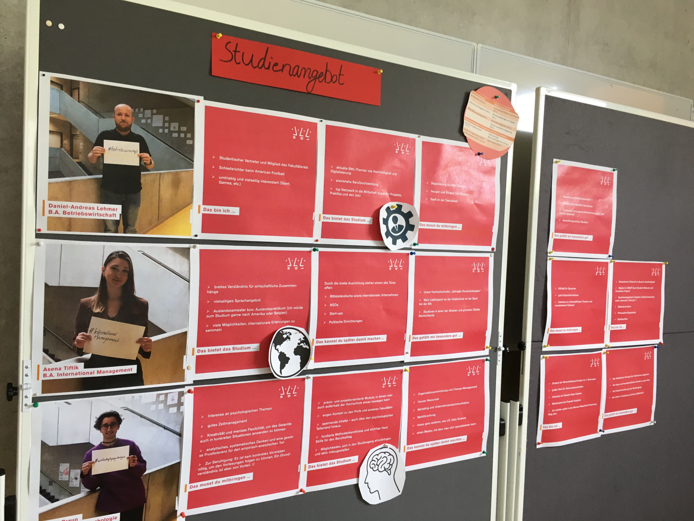 Darüber hinaus hatten alle die Möglichkeit, bei einem Gallery Walk selbstständig Informationen über die Besonderheiten eines Studiums an einer Hochschule für angewandte Wissenschaften zu entdecken. Sie konnten das vielfältige Studienangebot und den Ablauf eines Bachelorstudiums kennenlernen sowie sich über potenzielle Beschäftigungsfelder informieren.