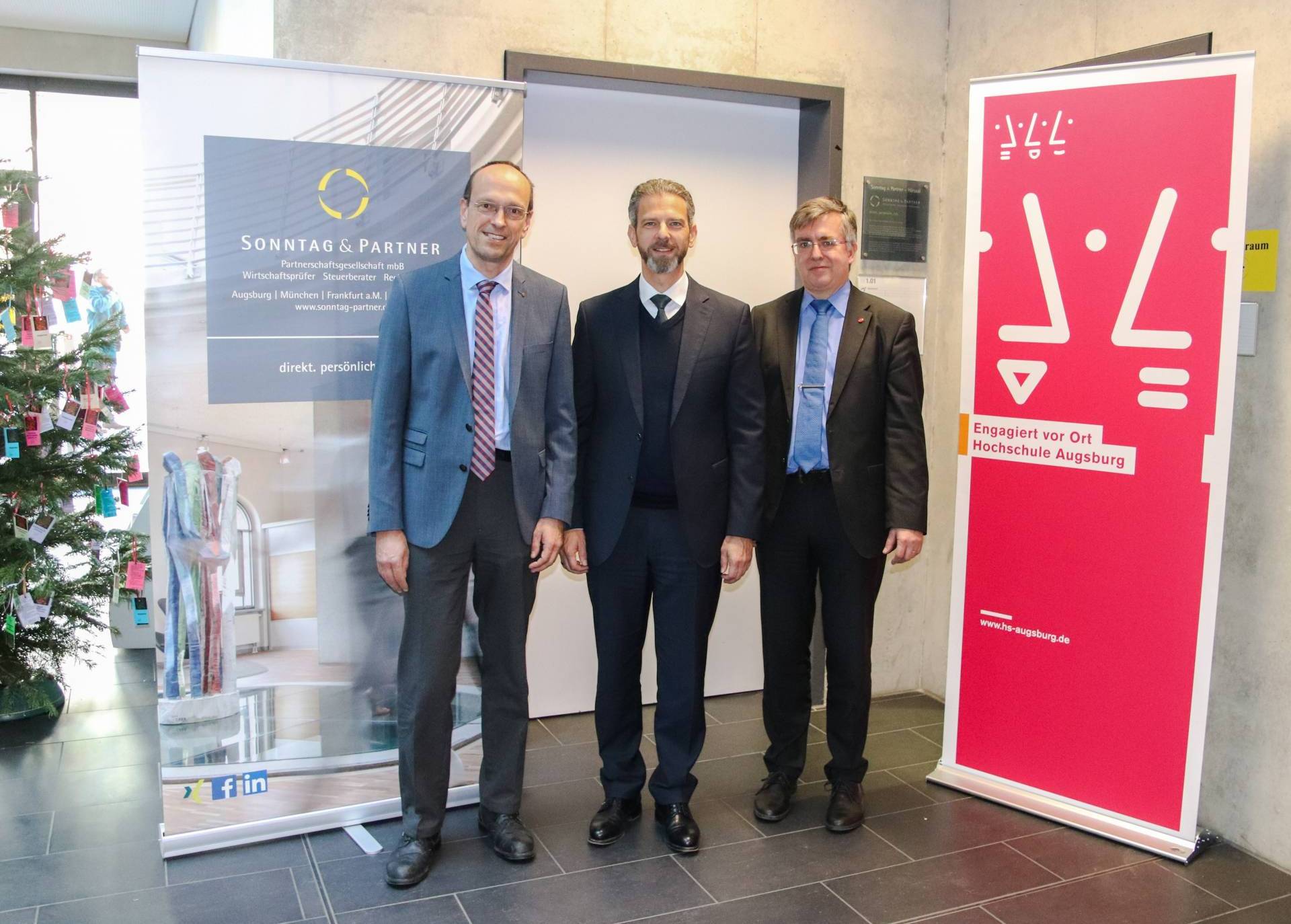 „Wir freuen uns sehr, dass wir mit dem Sponsoring die Zusammenarbeit mit Sonntag & Partner weiter intensivieren konnten und so ein noch engerer Austausch stattfindet“, so der Dekan der Fakultät für Wirtschaft, Prof. Dr. Michael Feucht. Prof. Dr. Helmut Wieser, Vizepräsident der Hochschule Augsburg ergänzt: „Der Transfer zwischen Wissenschaft, Forschung, Wirtschaft und Gesellschaft steht bei uns weit oben auf der Agenda. Darüber hinaus unterstützt das Sponsoring unsere Mission, gefragte Persönlichkeiten zu entwickeln – auch über das Mindestangebot hinaus.“