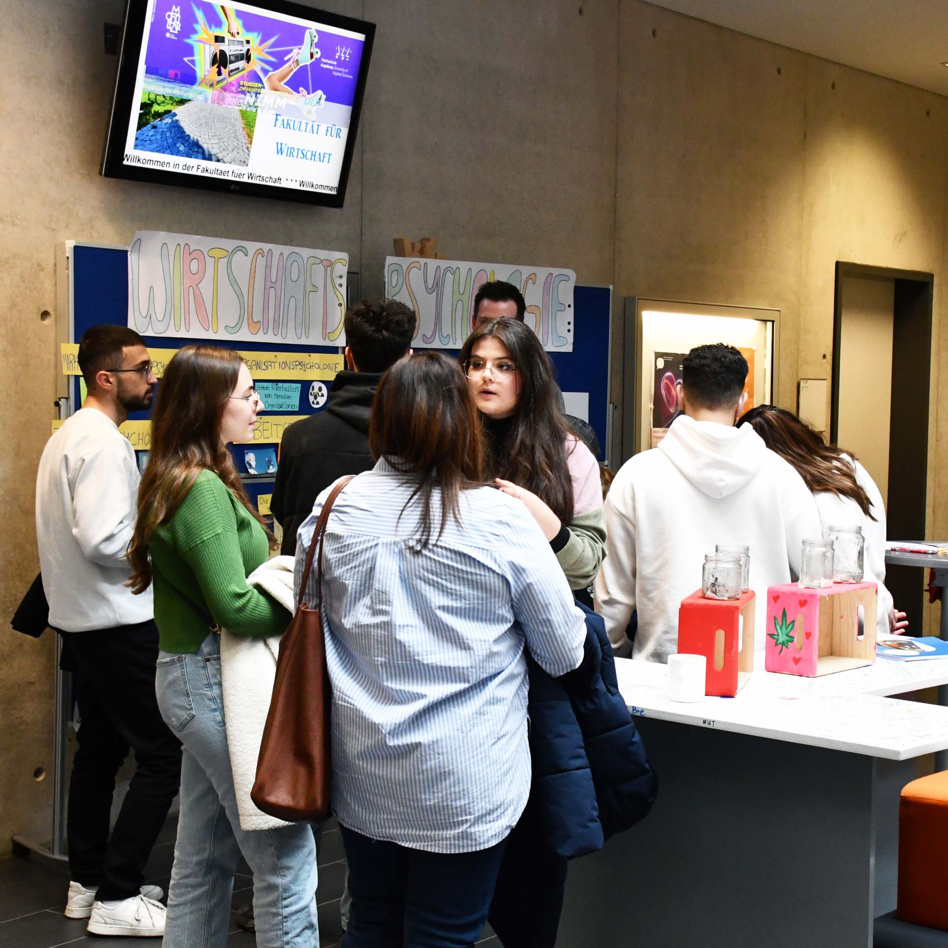 Studieninteressierte konnten den Campus kennen lernen, an Schnuppervorlesungen teilnehmen und sich über die verschiedenen Studiengänge der Fakultät informieren. In persönlichen Gesprächen wurden viele Fragen zum Thema Studienaufbau, Zulassungsvoraussetzungen und Auslandsaufenthalten beantwortet.