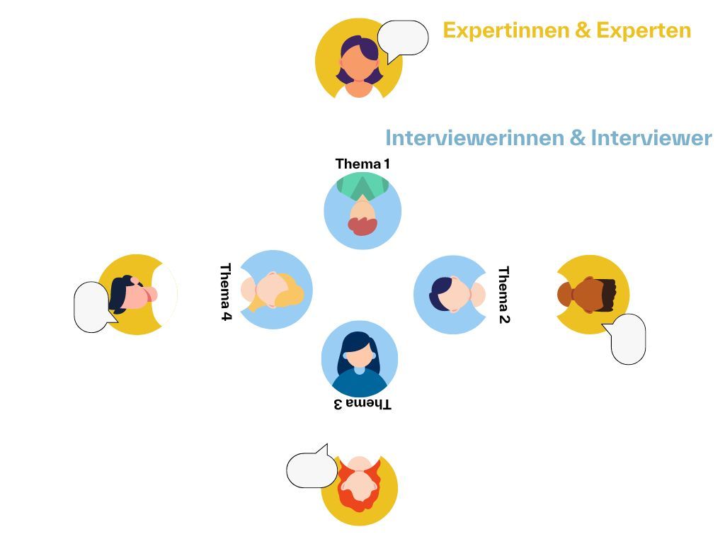 Jeder Interviewerin und jedem Interviewer wird ein spezifisches Unterthema zugewiesen.