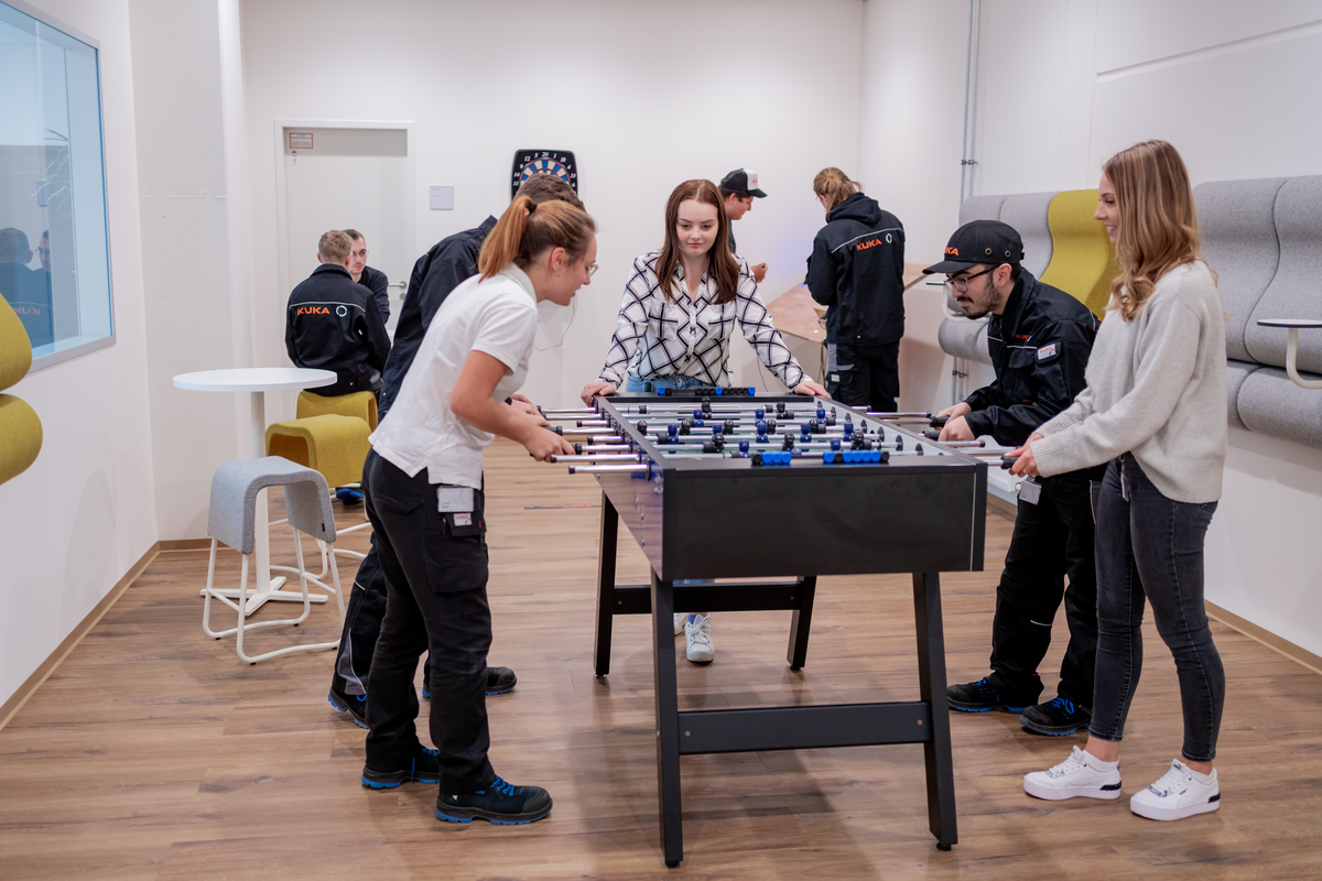 Lukas Wenger: Das ist gar nicht so einfach zu beantworten. Es gibt ein tolles Netzwerk unter den Auszubildenden und Studierenden bei KUKA. Wissen und Erfahrungen werden geteilt, über die Hochschule und das Unternehmen.
