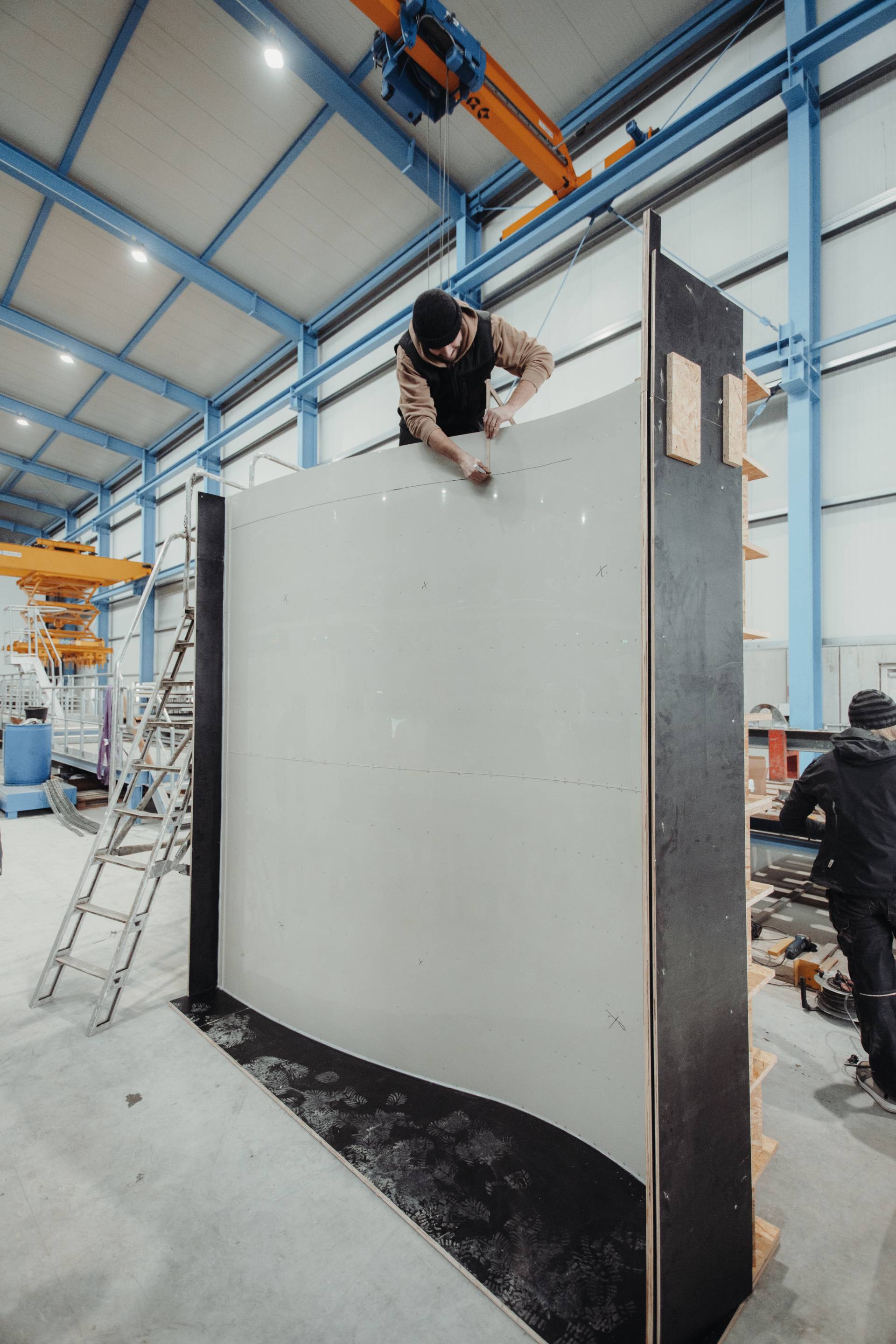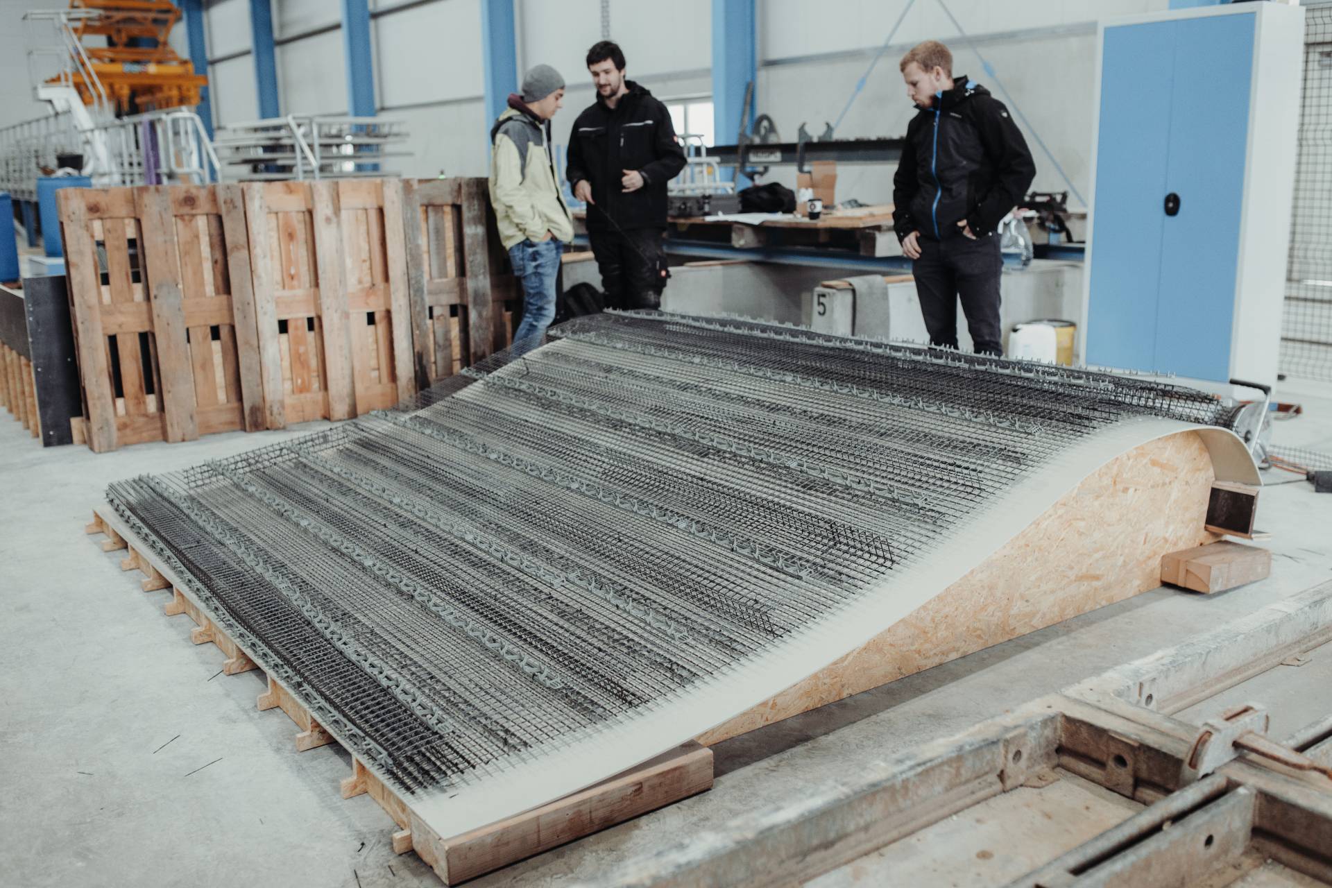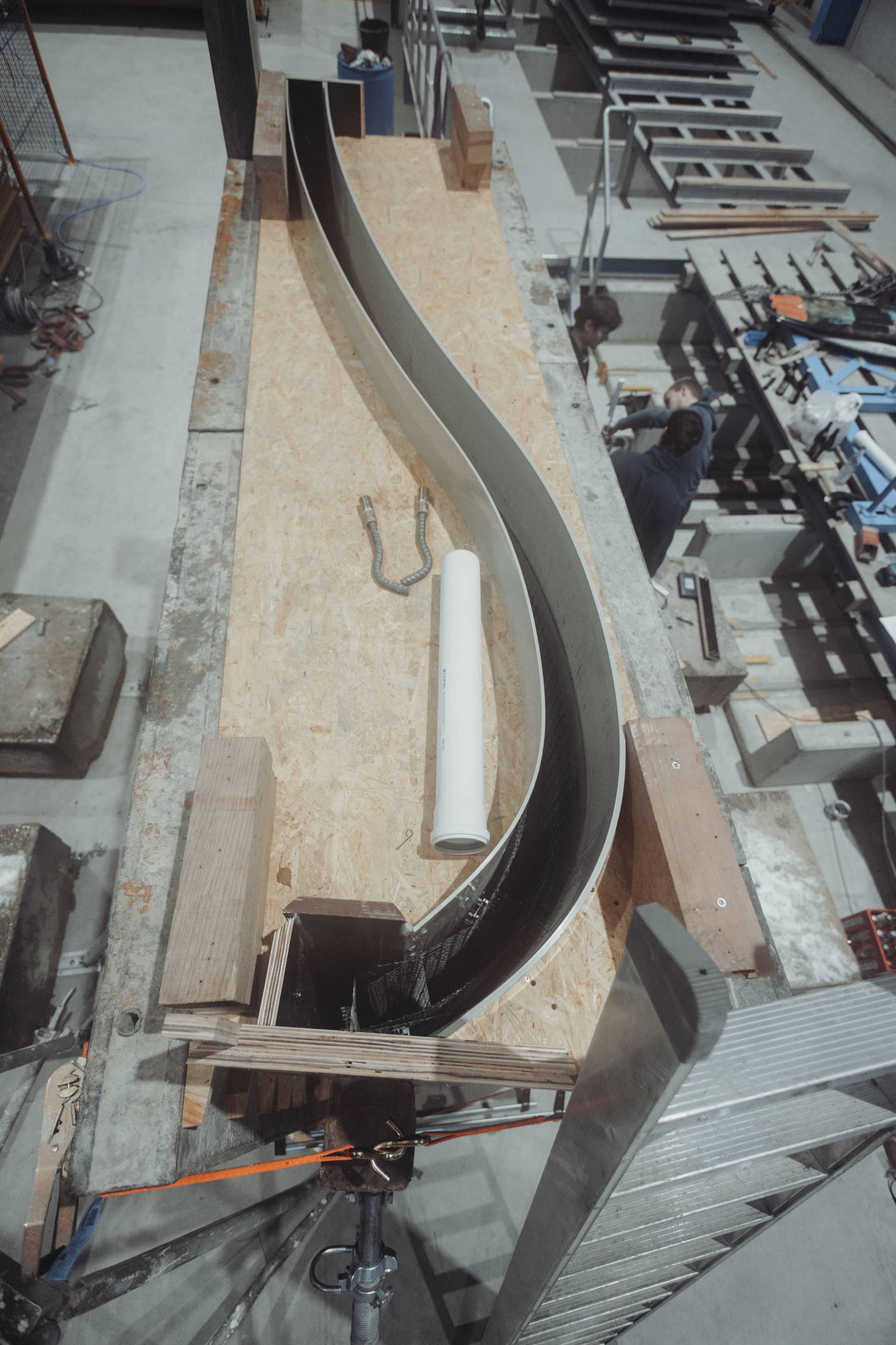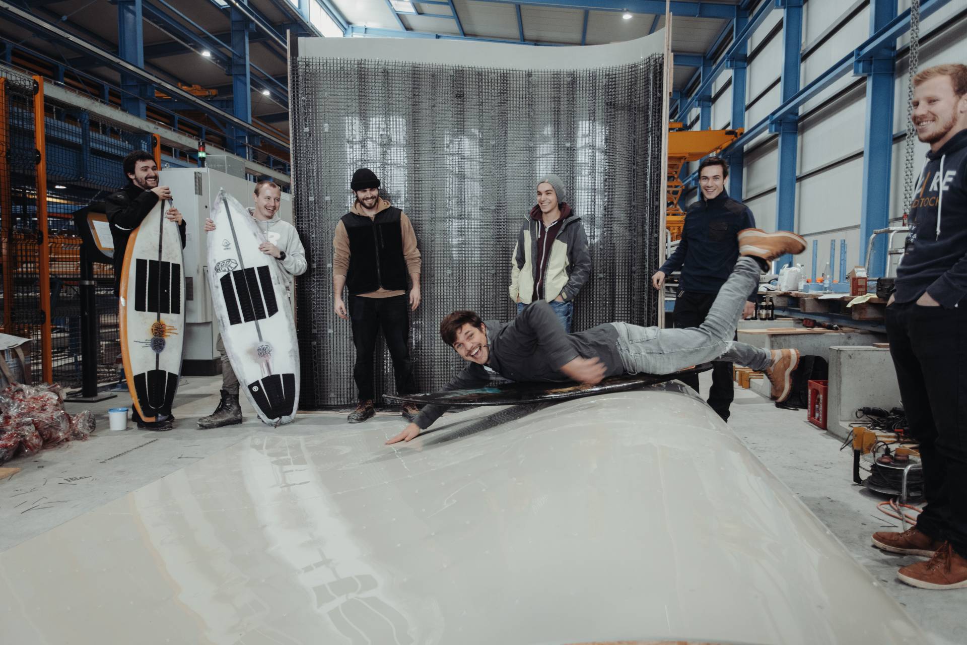 Das zweite Projekt „Surfwelle“ beschäftigte sich mit der Herstellung einer Sohlschwelle für den Wertachkanal. Durch die künstliche Verengung entsteht eine 8 Meter breite Surfwelle. Die Betonelemente dafür wurden von der Studierenden Korbinian Ableitner, Anton Kümmerl, Julian Nowak, Pius Nürnberger, Thomas Schropp, Benedikt Seng, Elias Hammerl, Andreas Heider, Florian Bauern, Patricia Gebhardt, Eric Hansen und Simon Kögel geplant und hergestellt. Das besondere an den Bauteilen ist der eingesetzte Beton mit Carbonbewehrung. Die beteiligten Personen haben eine eigene Betonrezeptur entwickelt, die statischen Berechnungen durchgeführt und die Schalung selbstständig gebaut. Abschließend wurden die Betonelemente bewehrt und betoniert. Die Aufstellung der Verengung ist für den April 2023 geplant.
