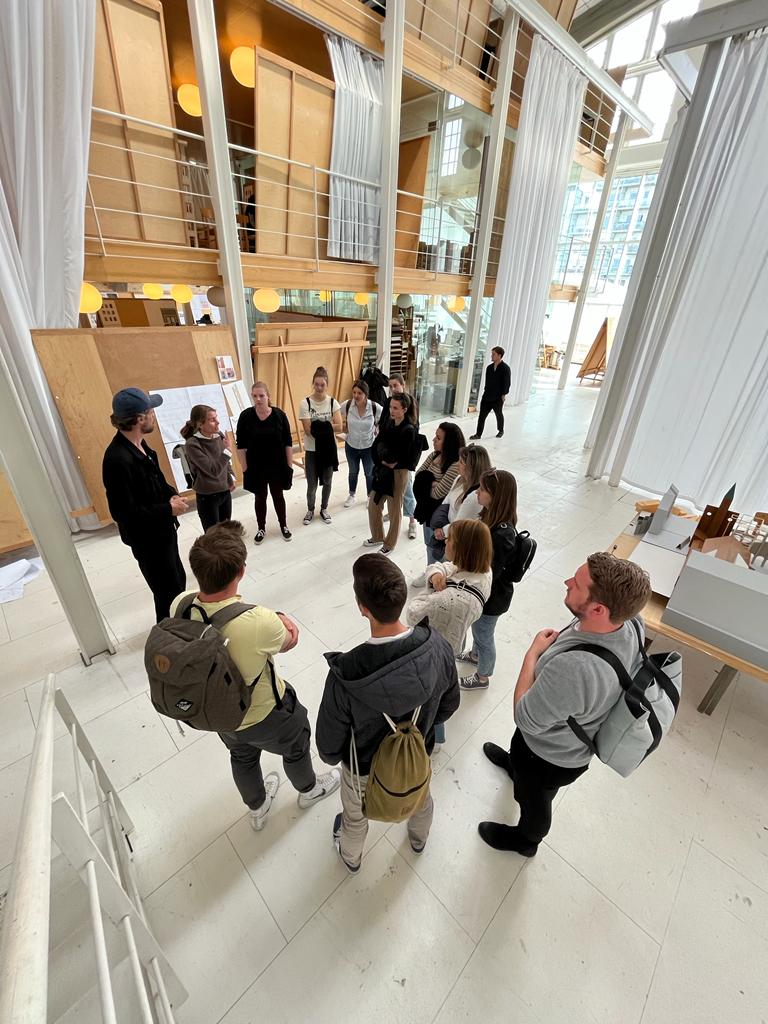 Im Sommersemester 2022 beschäftigten sich die Masterstudierenden der Hochschule Augsburg im Rahmen eines Auslands-Masterstudios mit dem zirkulären Bauen und den Räumen der Gesellschaft in Kopenhagen. Zu diesem Zwecke fuhren die Studierenden eine Woche lang auf Exkursion nach Kopenhagen, wo sie mit dem Fahrrad die Stadt und die Stadträume erkunden konnten. Geleitet wird das Auslands-Masterstudio von Prof. Mikala Holme Samsøe, die selbst gebürtige Kopenhagenerin ist.
