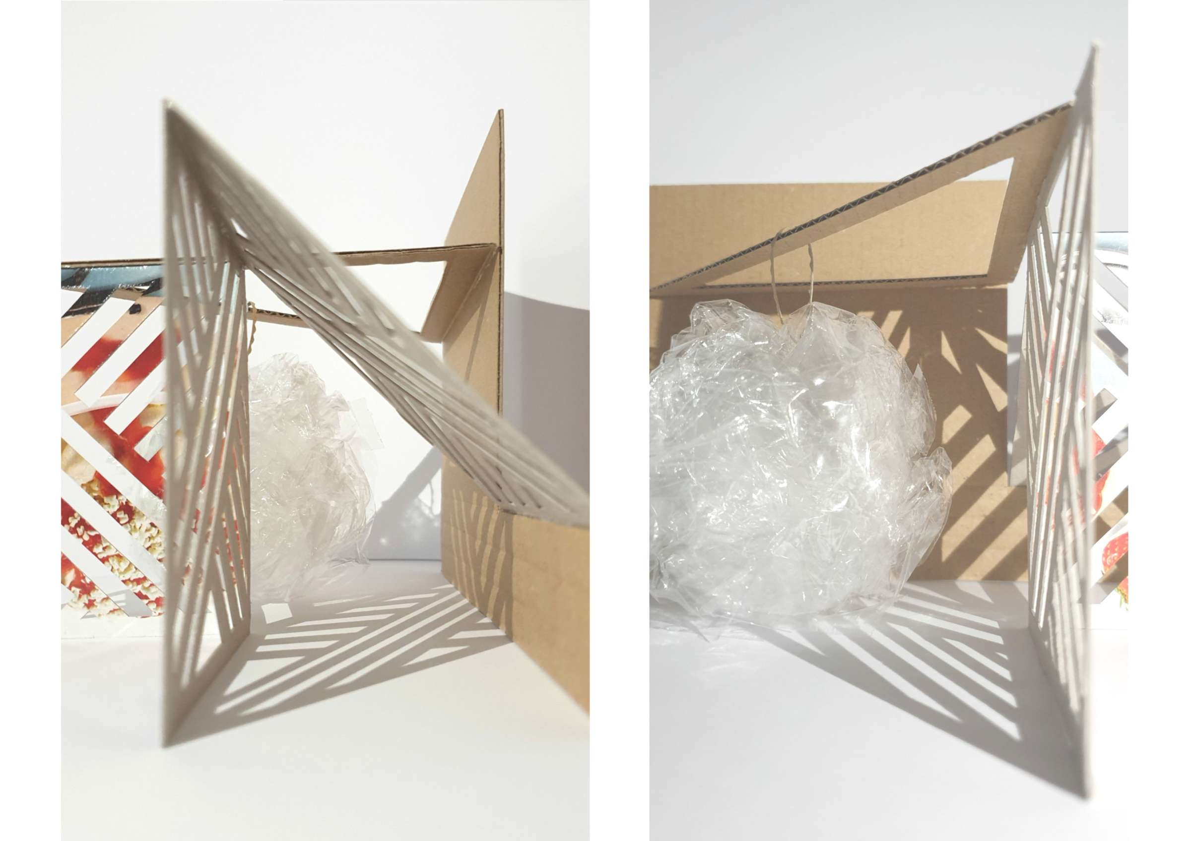 Um dieser Problematik entgegenzuwirken, haben Architekturstudierende in den letzten beiden Semestern im Rahmen eines Wahlpflichtmoduls kleine Modelle aus Resten von Onlinebestellungen sowie aus "Müll" oder upgecycelten Materialien erstellt. Dabei wurden beispielsweise Flaschen, alte Stoffe, Beton-, Gips- und Lehmreste, alte Blumenkübel, Drahtreste und Fäden verwendet. Zusätzlich wurden auch bereits vorhandene Modelle auseinandergenommen und die Materialien wiederverwertet, wodurch sie ein zweites Leben erhielten.