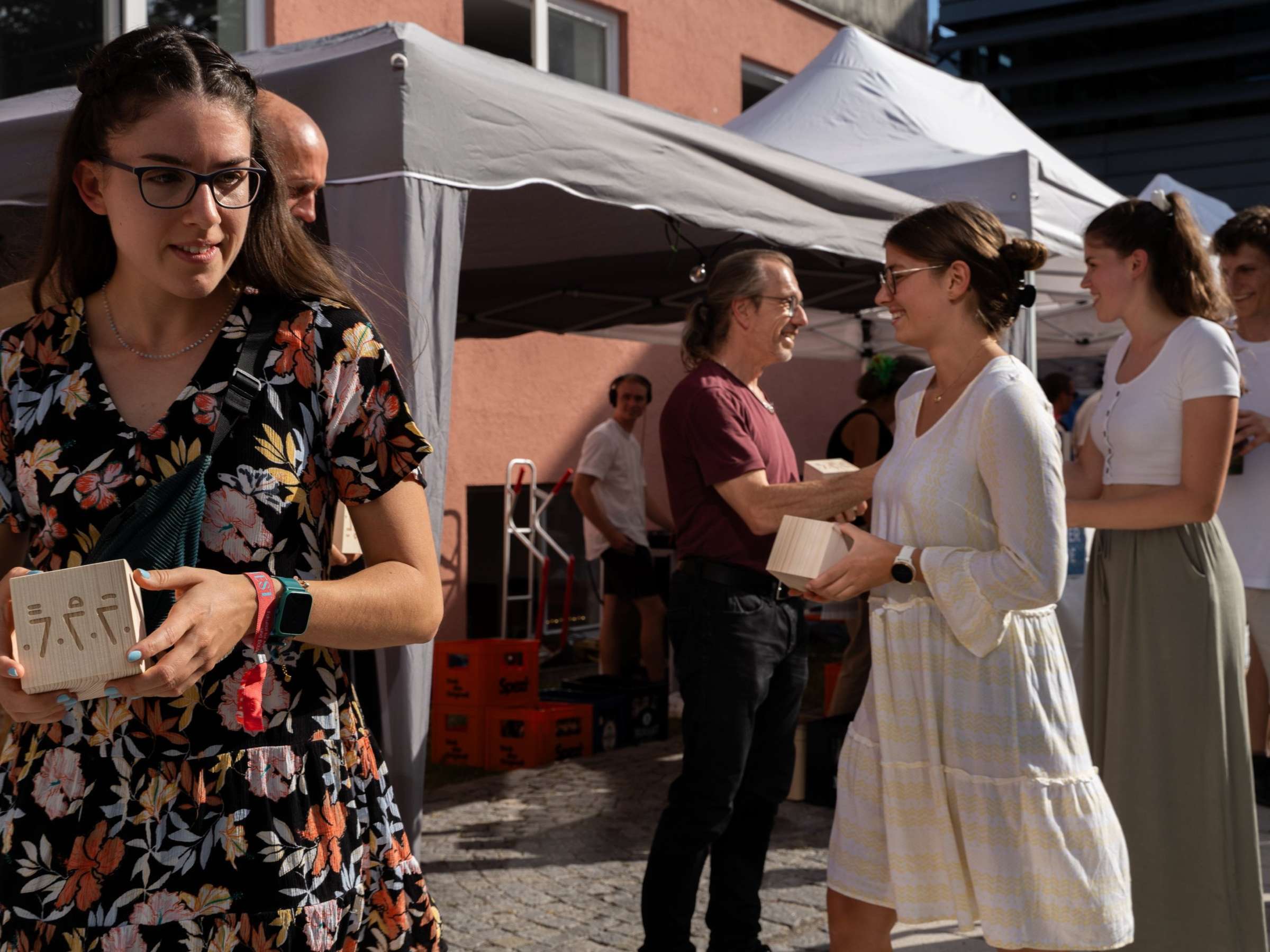 Direkt im Anschluss wurden nach einleitenden Worten von Studiendekan Prof. Dr.-Ing. Jürgen Huber die Absolvent:innen des Jahrgangs 2023 geehrt und verabschiedet. Um unsere Studierenden gebührend und vor allem wertschätzend zu verabschieden, wurden eigens für den Abschlussjahrgang entworfene Holz-Würfel als bleibende Erinnerung durch die jeweiligen Studiengangsleiter:innen verliehen.