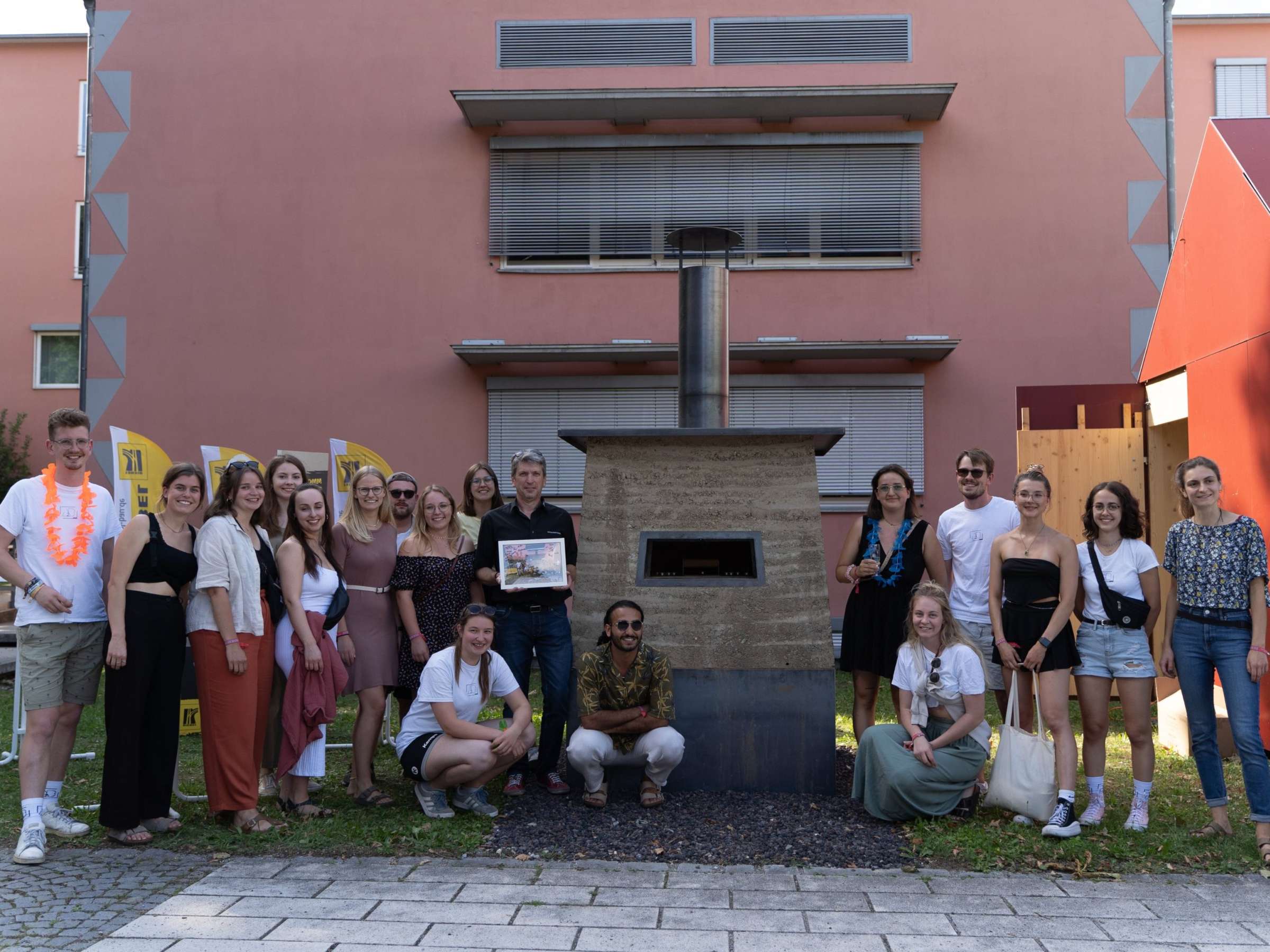 Bereits ab 15 Uhr konnten Arbeiten und Projekte der Studierenden besichtigt werden, die in den Gängen der Fakultät ausgestellt waren. Das Fest begann offiziell um 16 Uhr mit Grußworten des Dekans Prof. Dr.-Ing. Wolfgang Nowak. Im Anschluss wurde der im Rahmen eines Lehmbauprojekts von Studierenden gebaute Pizzaofen offiziell enthüllt. Die Gelegenheit nutzten die Studierenden René Kromer und Theresa Haase, um Gerd Wagner, der an diesem Abend für die Firma Xaver Riebel Bauunternehmung GmbH & Co. KG anwesend war, einen Dank für die großzügige Unterstützung des Projekts auszusprechen.