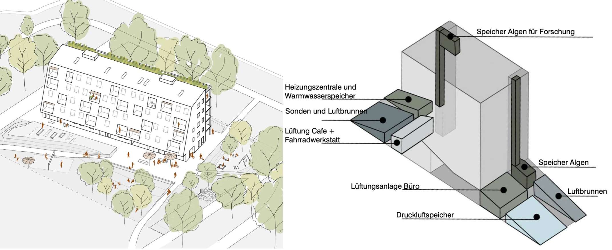 - Das Team Martina Heilig und Levin Kümmerle mit ihrem Beitrag "Horizontal Living - Healthy Homes Design", entstanden im Rahmen des Moduls "Methodik des energieeffizienten Entwerfens MEEE" im Master "Energie Effizienz Design - E2D"