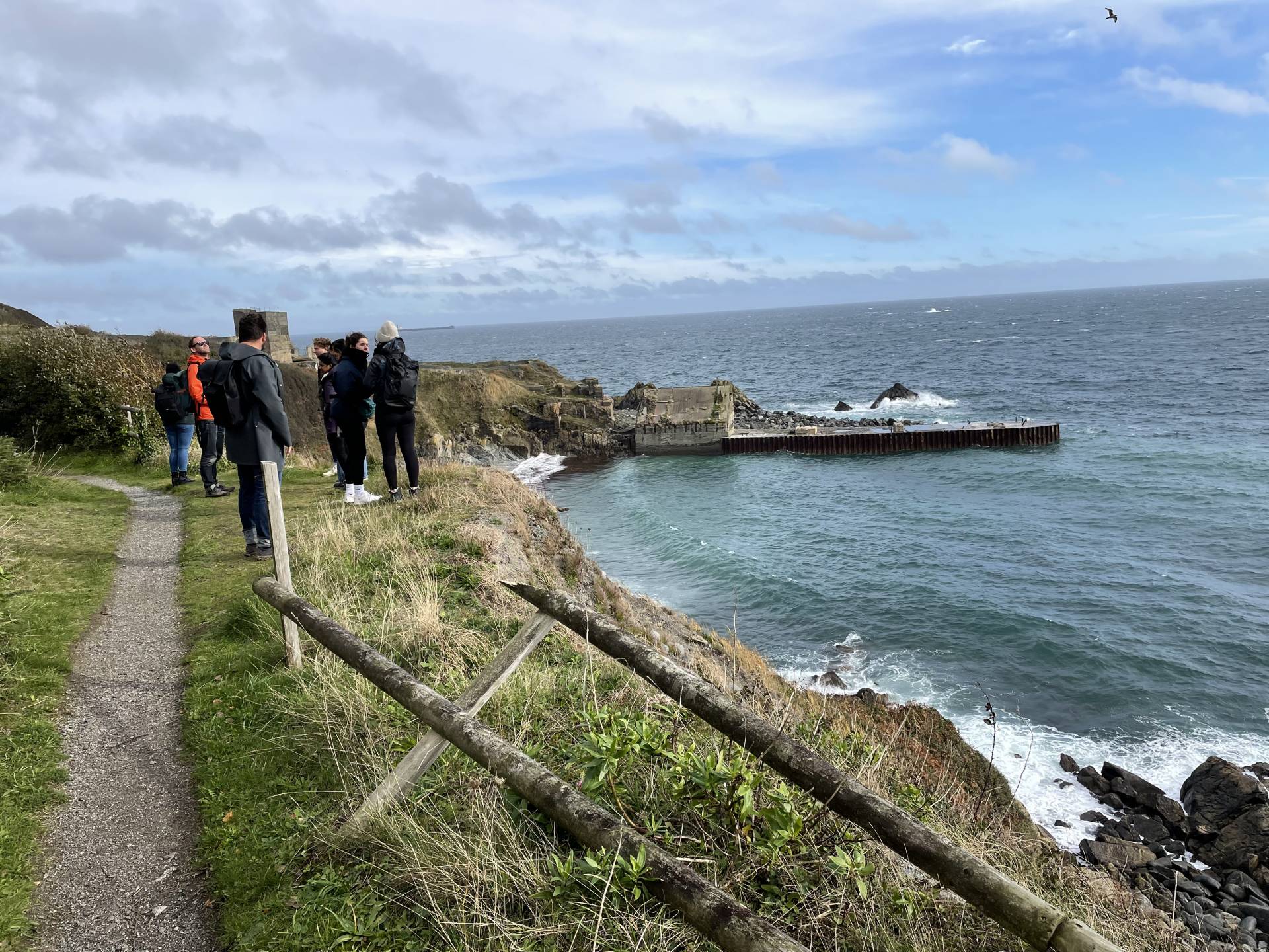 11 Masterstudierende erkunden den stillgelegten Steinbruch Dean Quarry, den Ort ihres Studios im Wintersemester 2022/2023, direkt an der Atlantikküste Cornwalls. Neben Führungen durch Referenzprojekte wie das Eden Project in Bodelva oder das Wheal Martyn China Clay Mining Museum in St. Austell bilden örtliche Kunst-Galerien, die eindrucksvolle Küstenlandschaft, ortstypische Bauweisen und Gebäudetypologien weitere Schwerpunkte der Exkursion. Den Ausgangspunkt der Erkundungen bildet Falmouth, wo in den Räumen der Universität und in Zusammenarbeit mit Prof. Tom Ebdon von der Architekturfakultät ein zweitägiger Entwurfsworkshop die inhaltliche Auseinandersetzung mit der Entwurfsaufgabe vorantreibt.