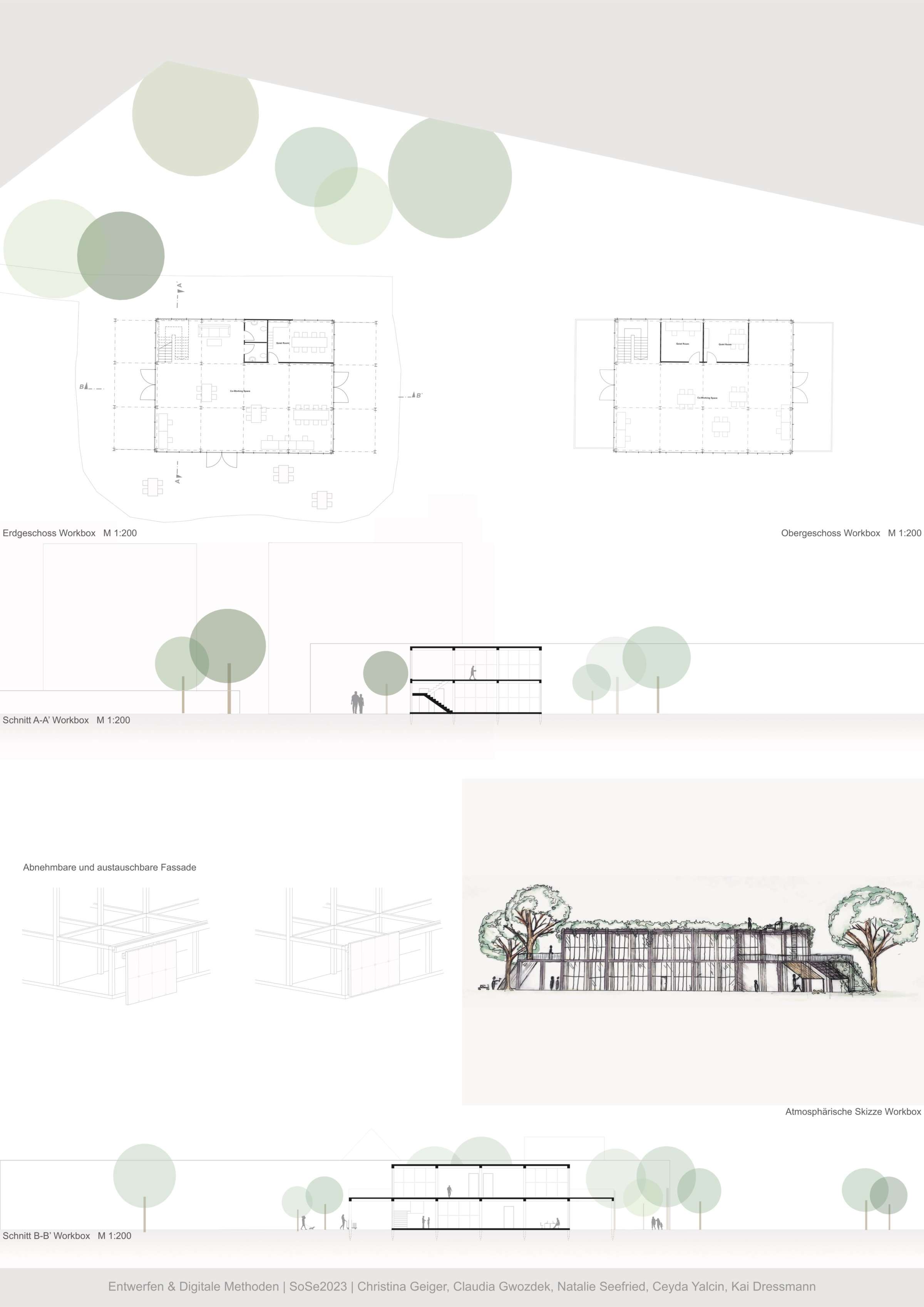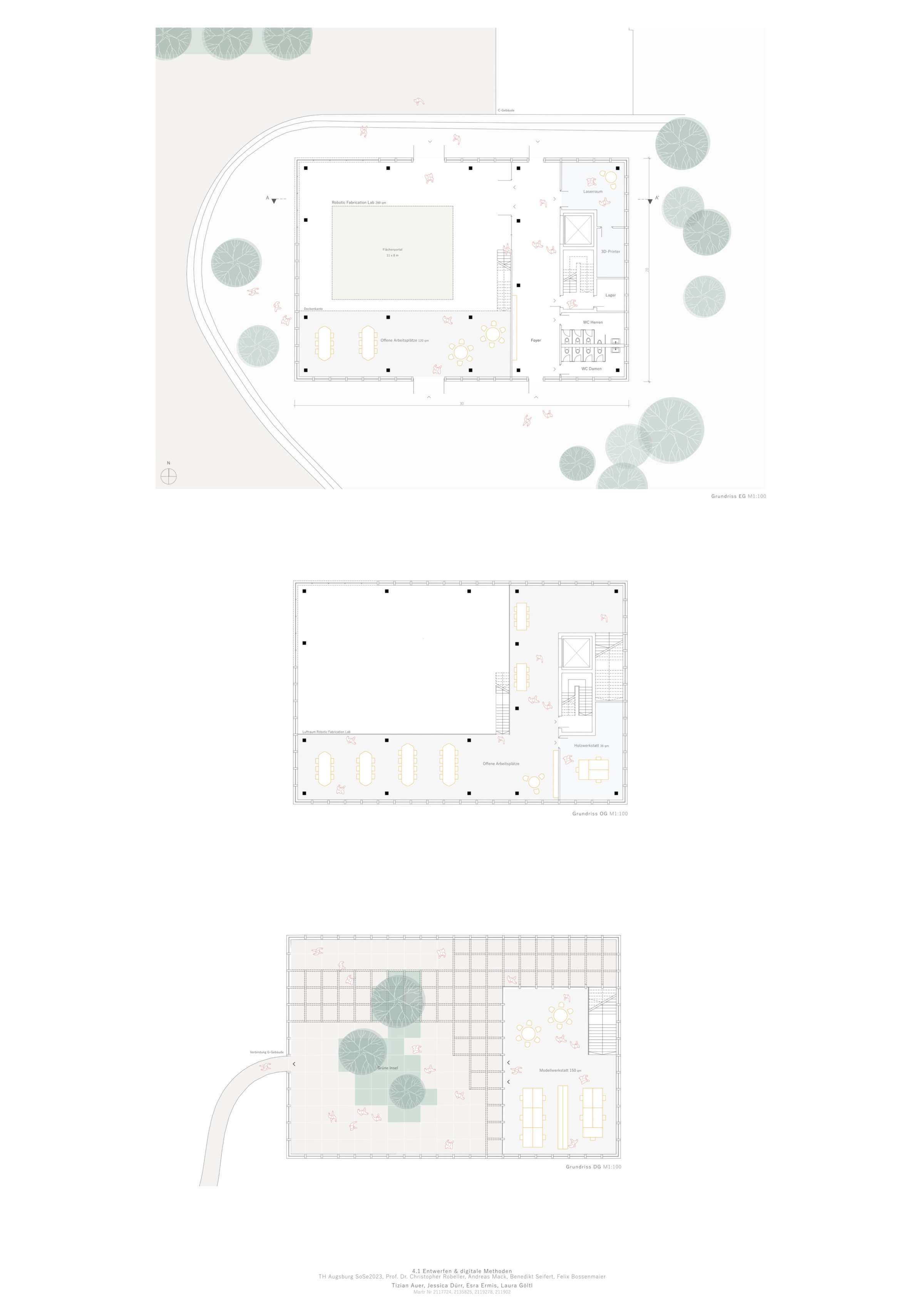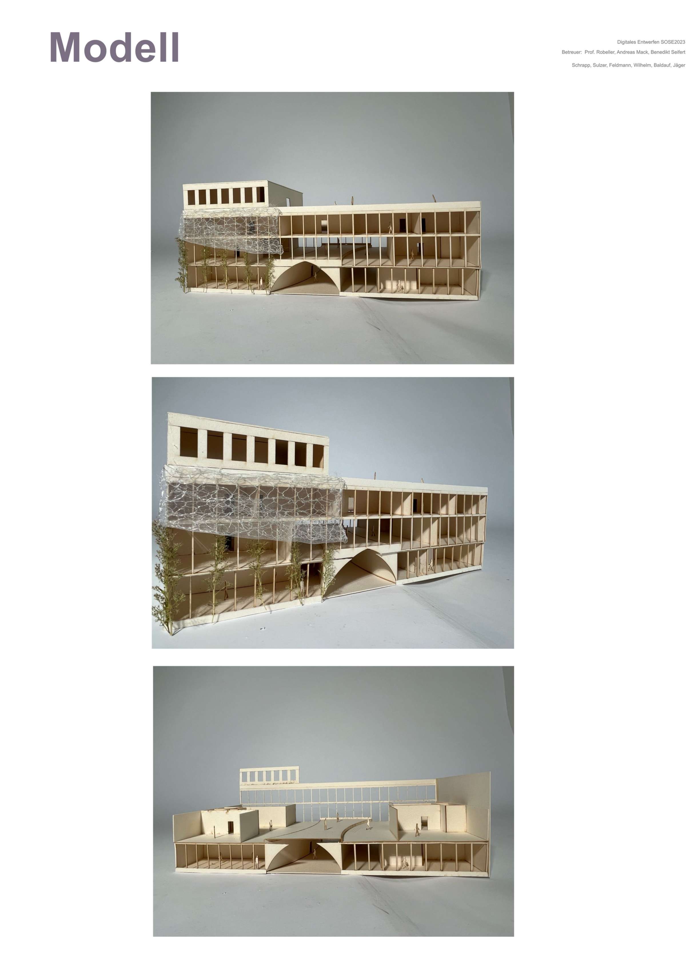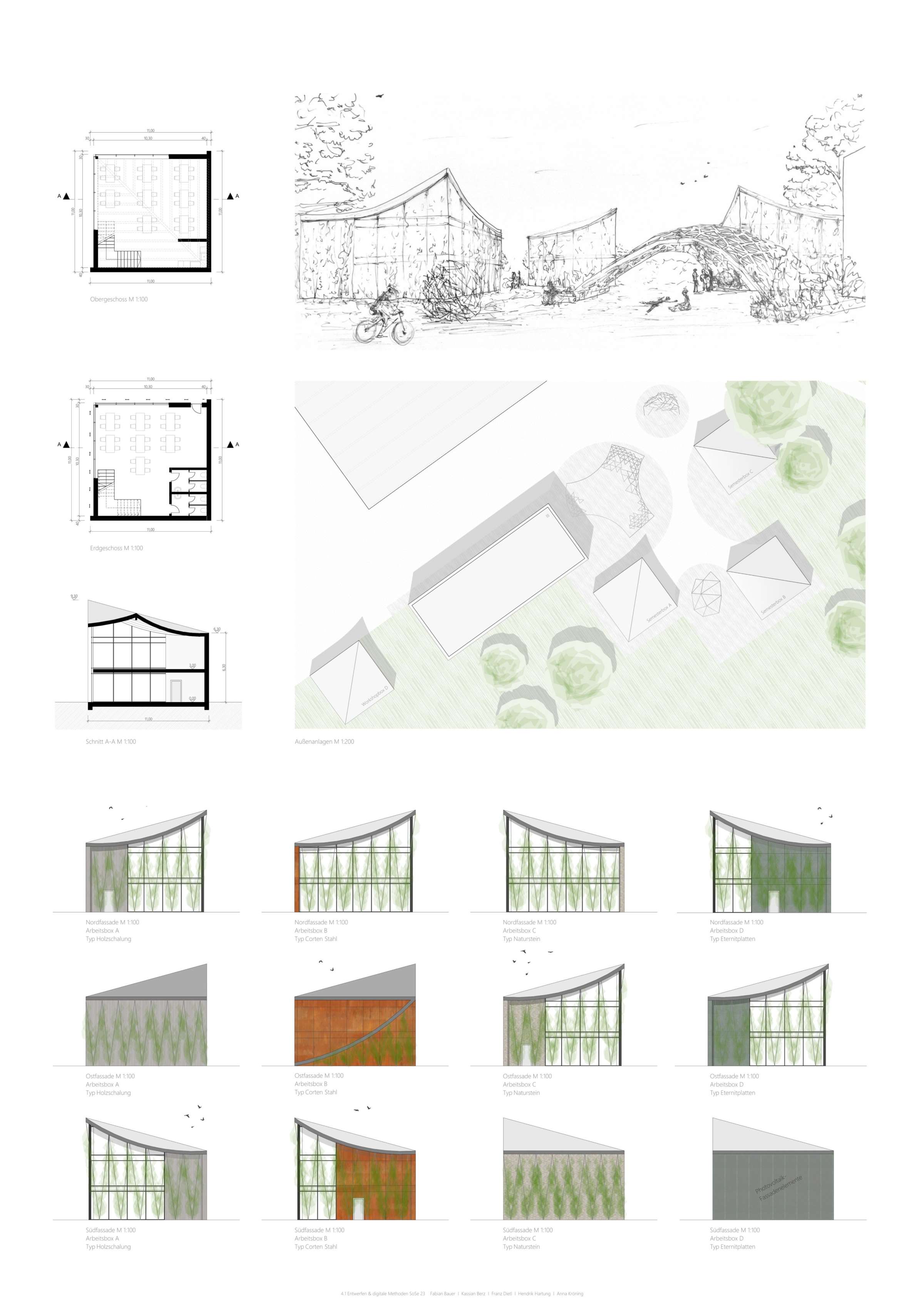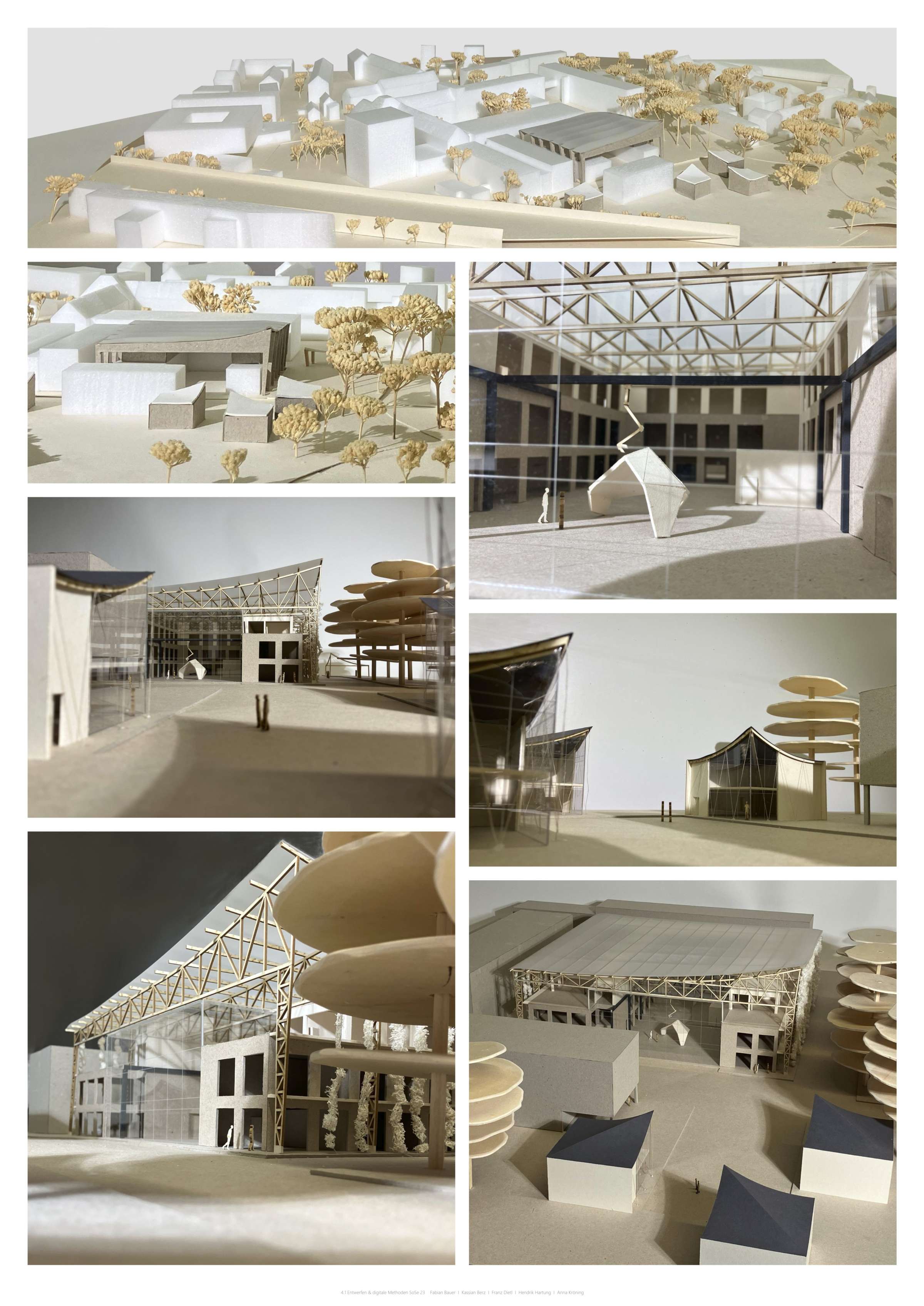 Das erlernte Wissen konnten die Studierenden direkt in ihre Entwurfsprozesse einsetzen und vertiefen. Jede Gruppe sollte ebenfalls ein Forschungsprojekt recherchieren und in ihren Entwurf integrieren.