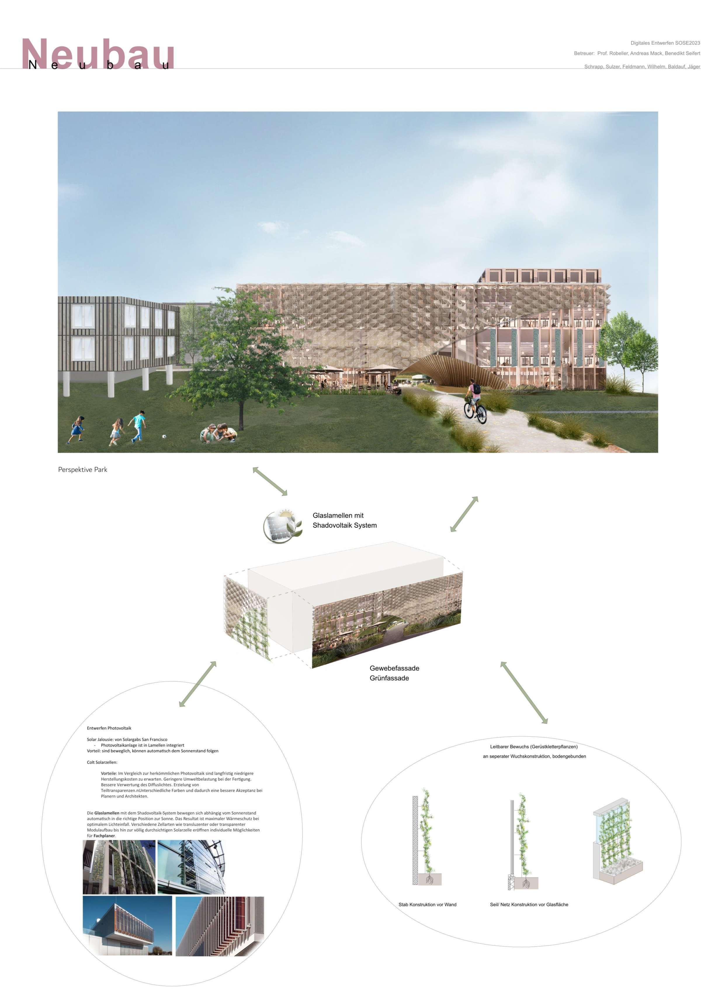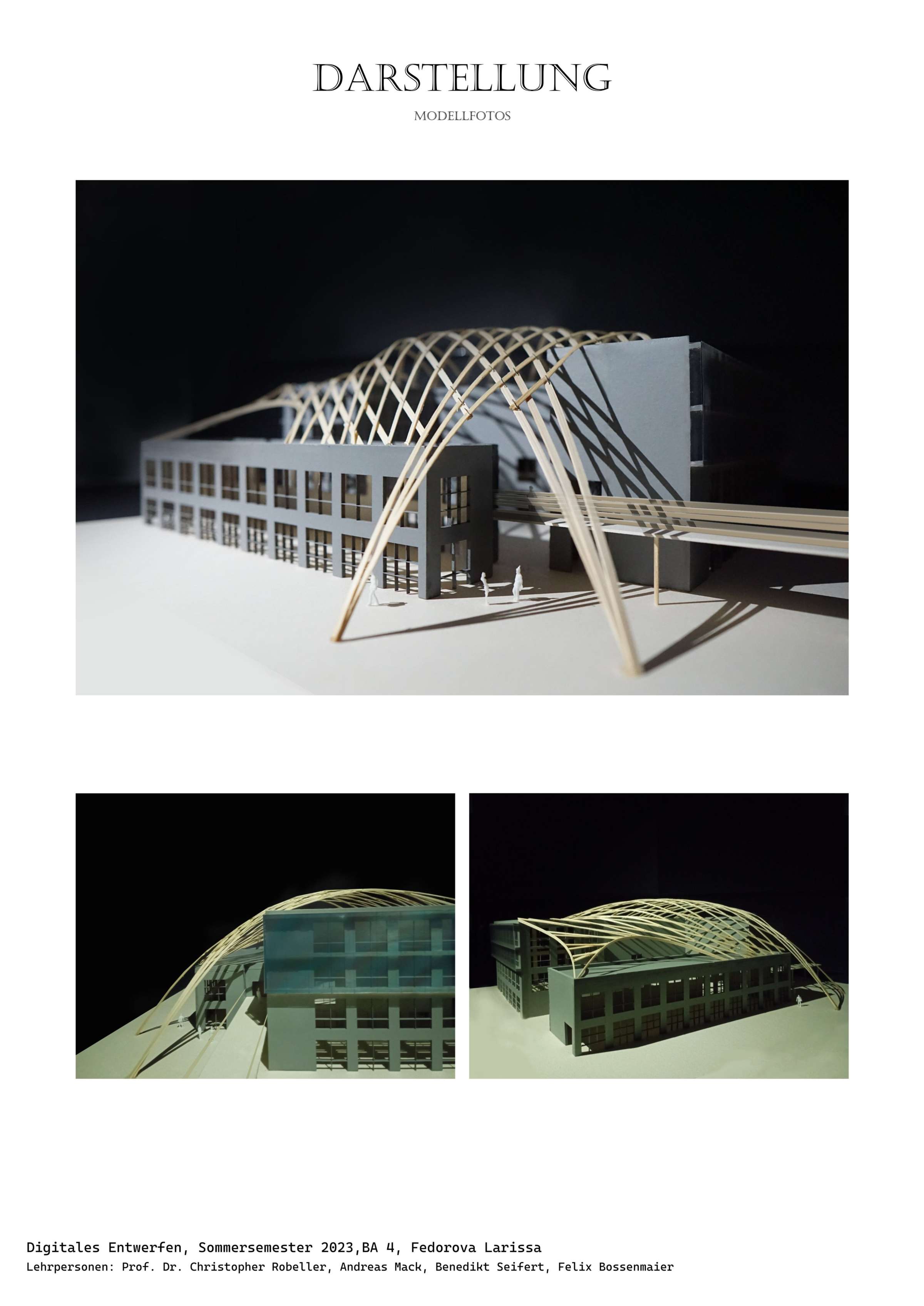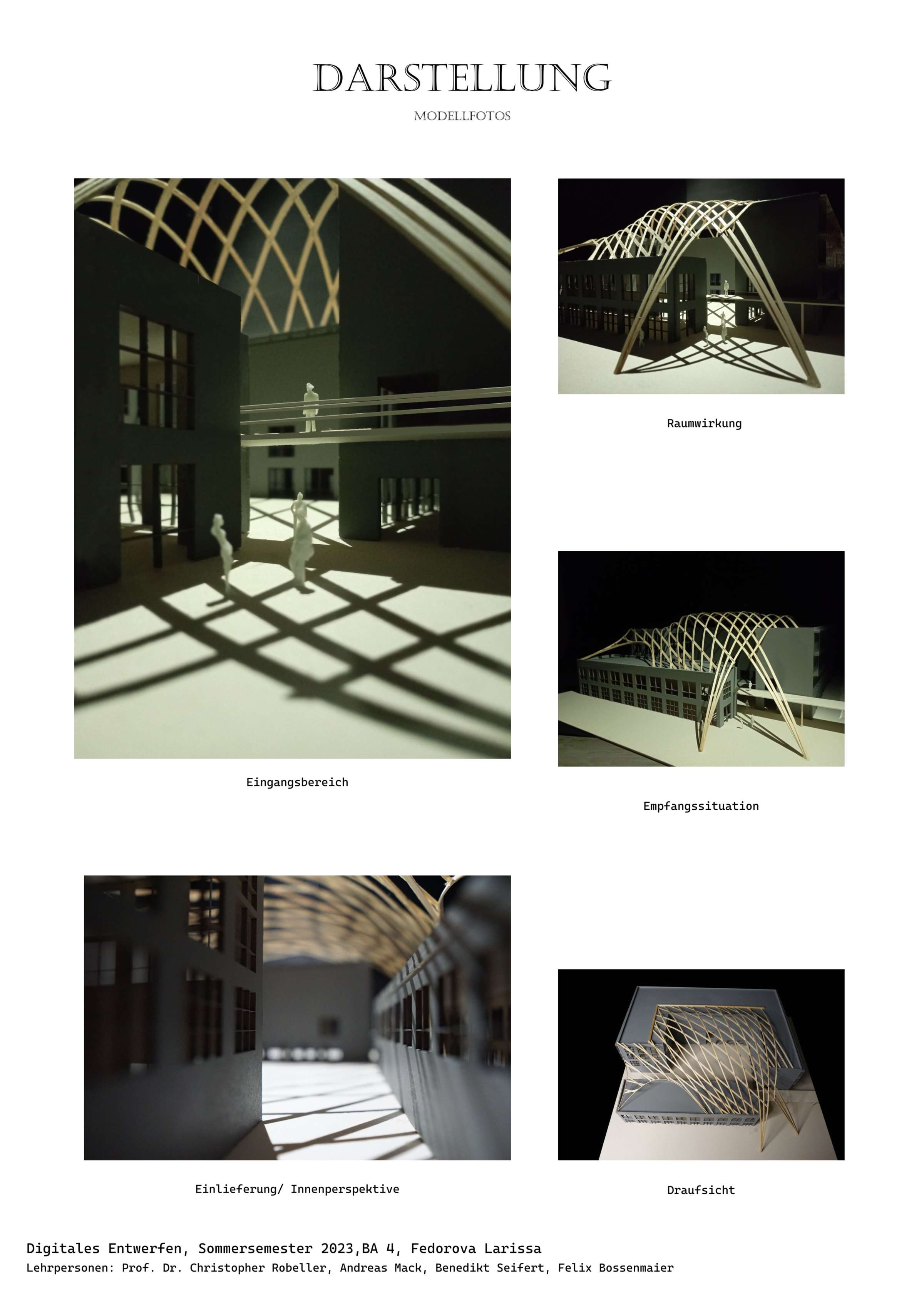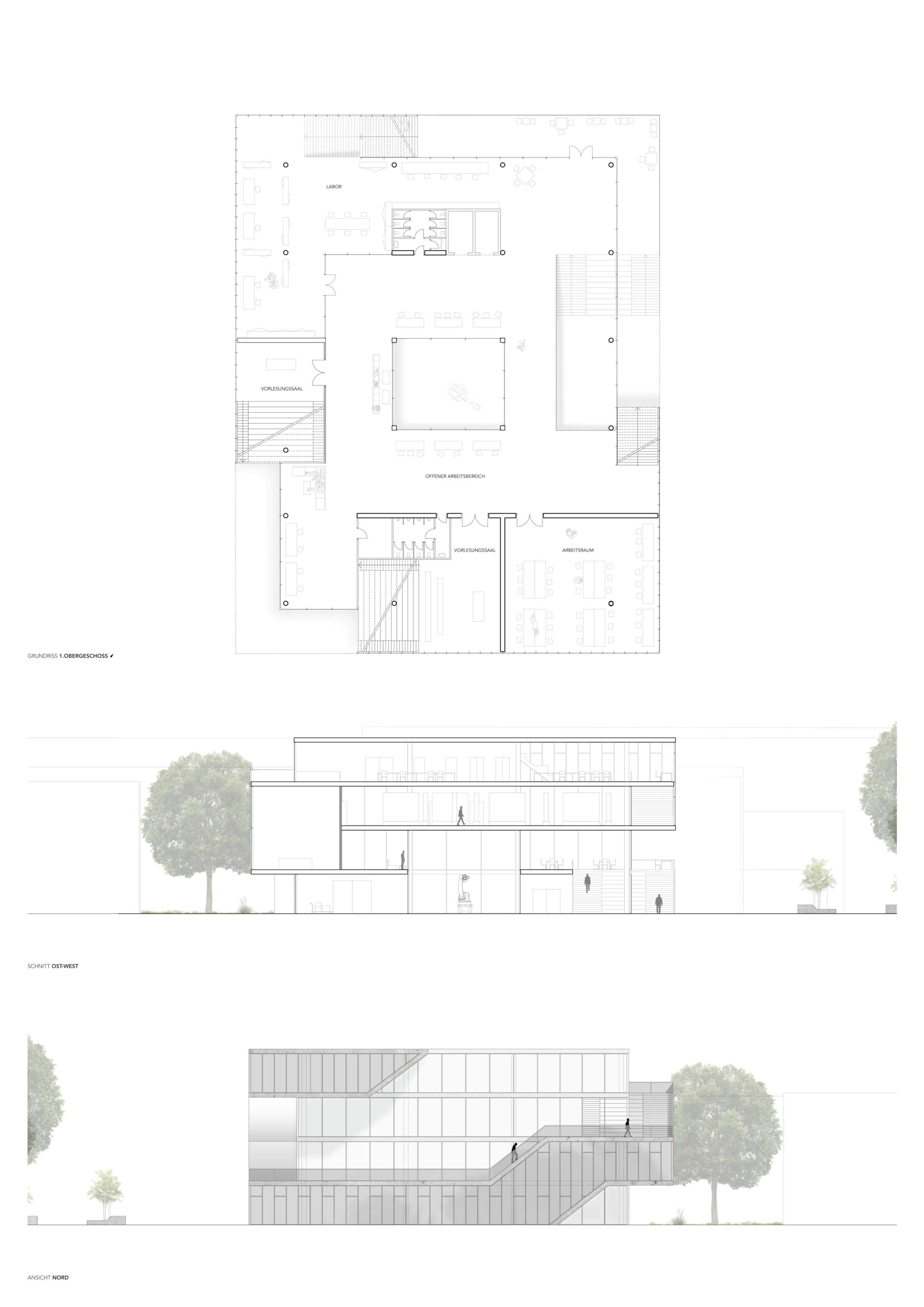 Das erlernte Wissen konnten die Studierenden direkt in ihre Entwurfsprozesse einsetzen und vertiefen. Jede Gruppe sollte ebenfalls ein Forschungsprojekt recherchieren und in ihren Entwurf integrieren.