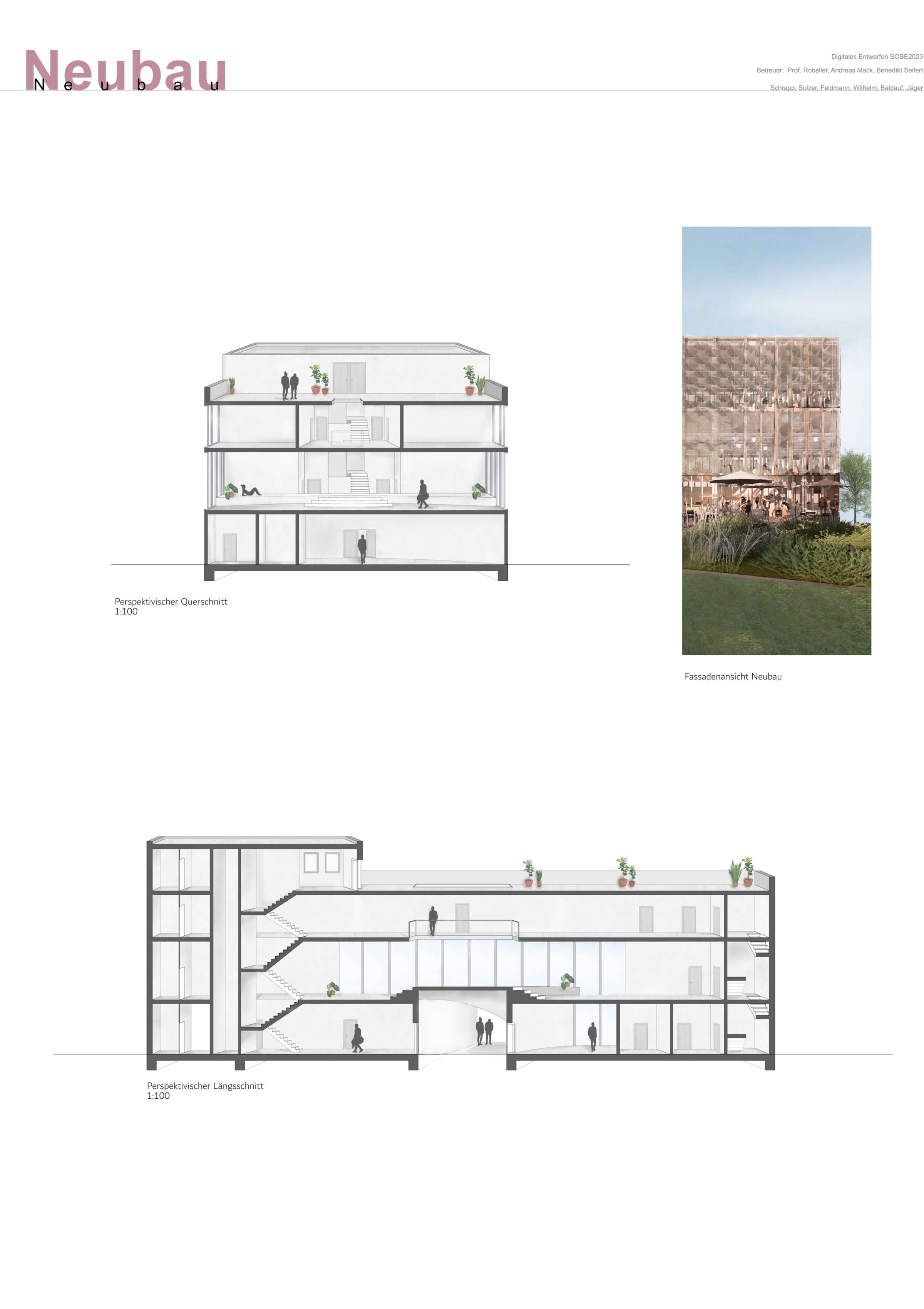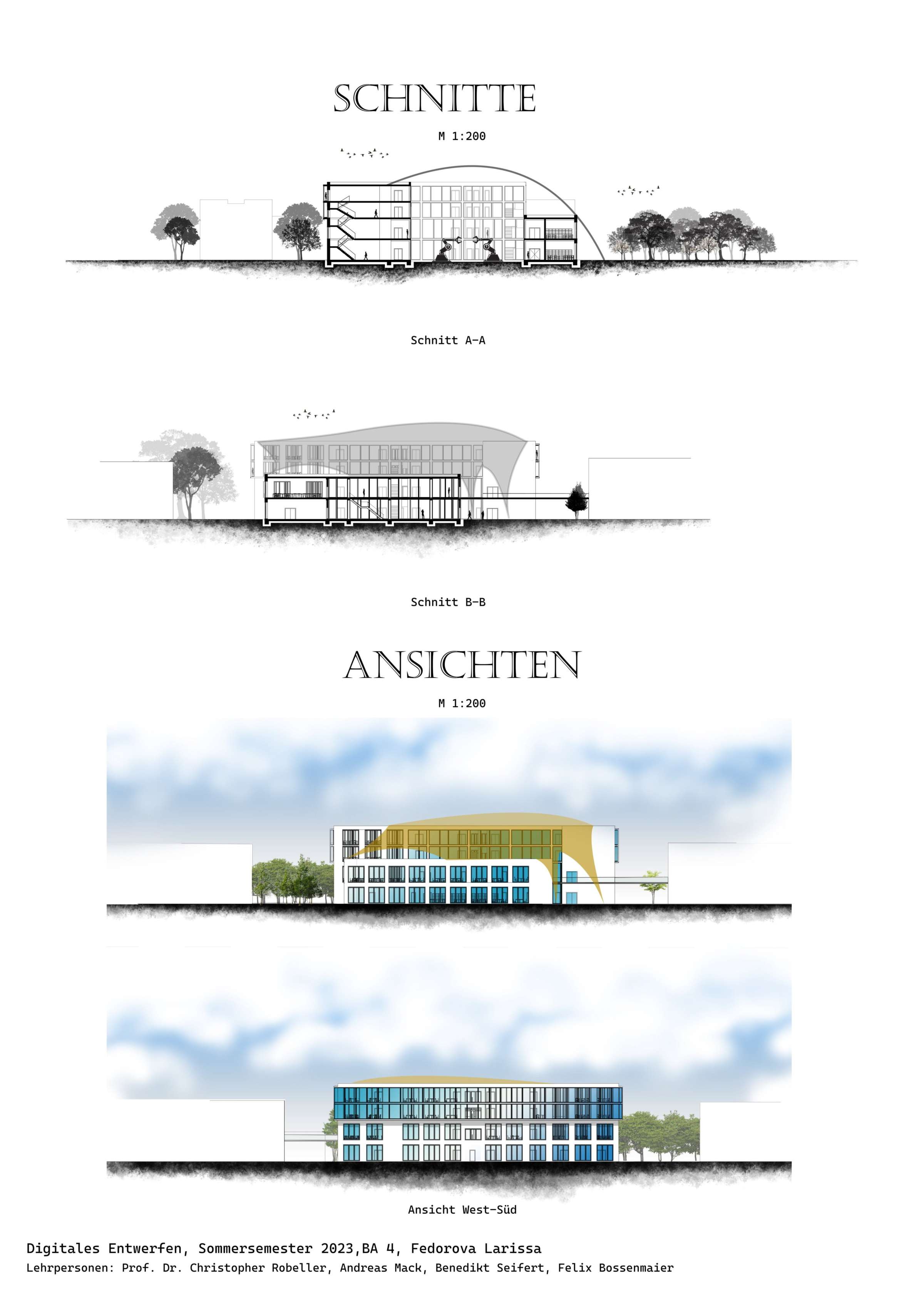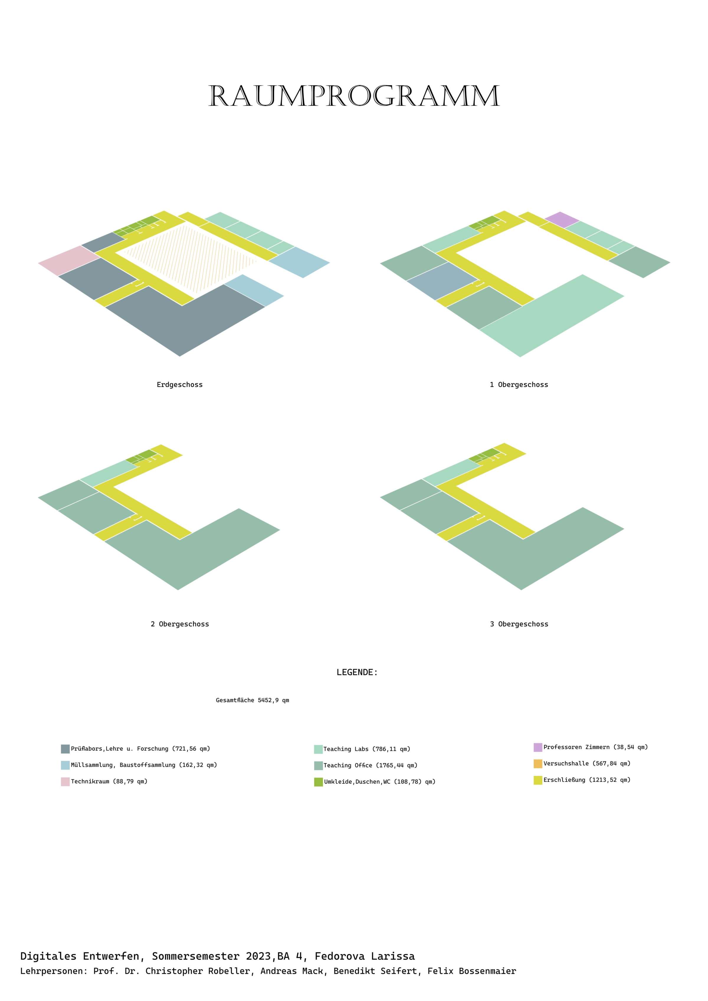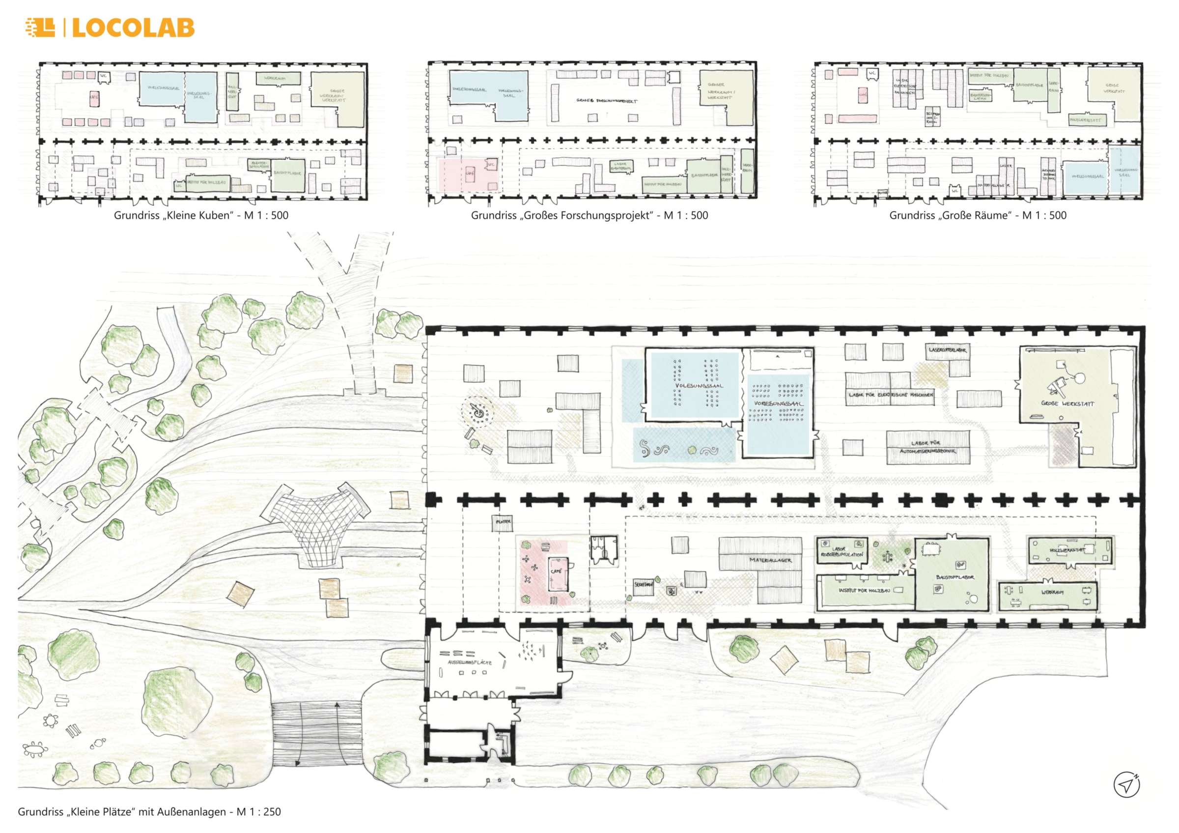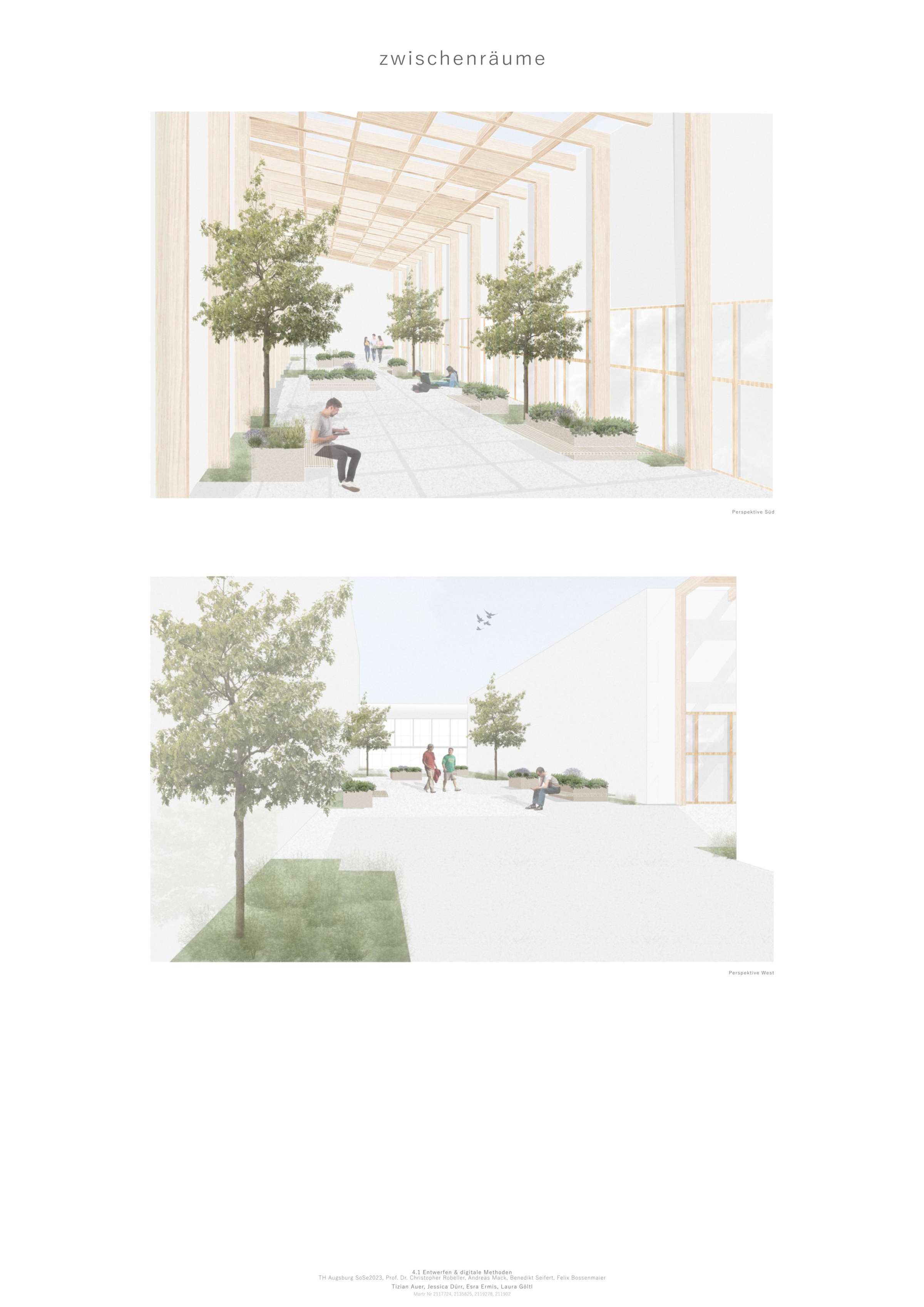 Das erlernte Wissen konnten die Studierenden direkt in ihre Entwurfsprozesse einsetzen und vertiefen. Jede Gruppe sollte ebenfalls ein Forschungsprojekt recherchieren und in ihren Entwurf integrieren.