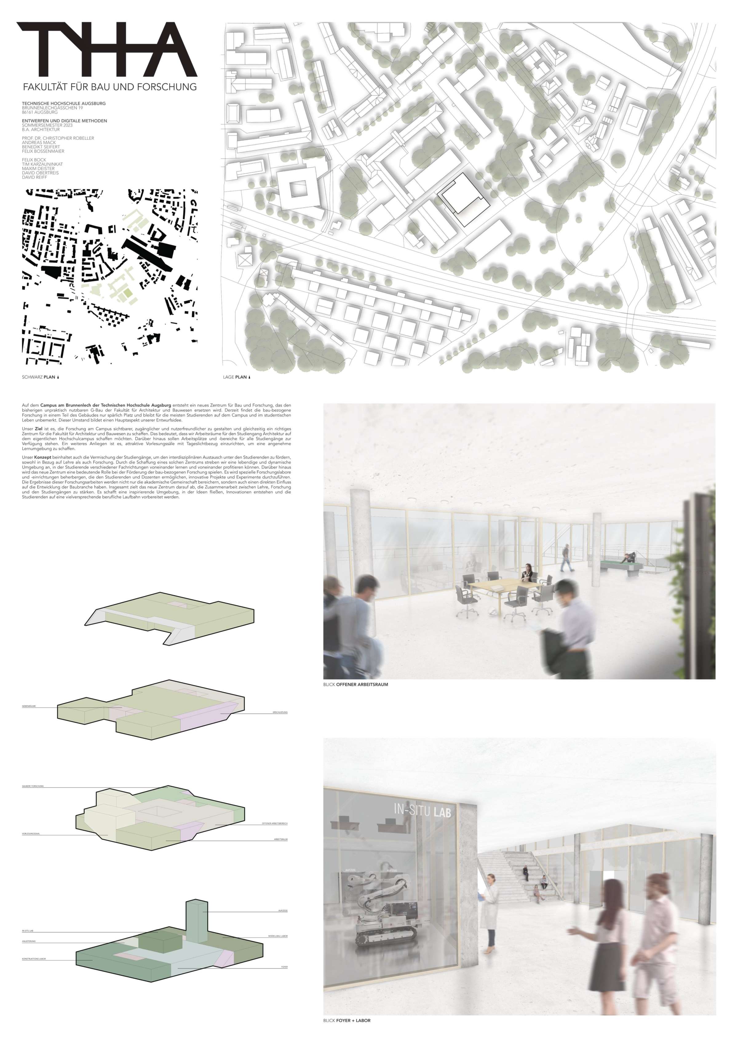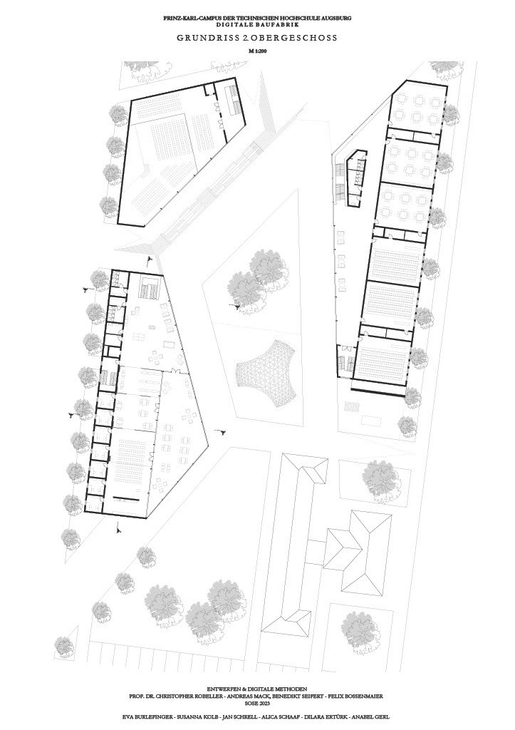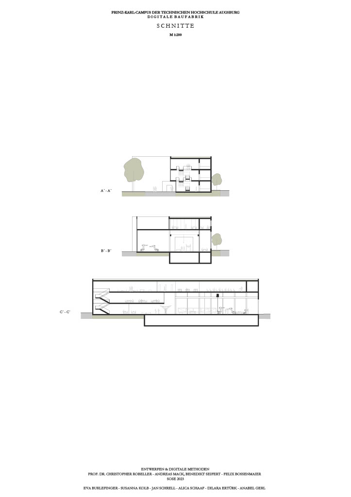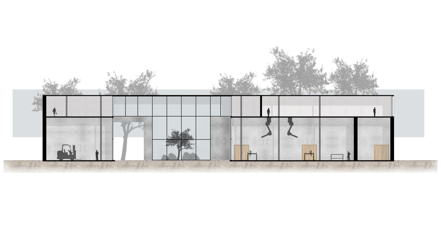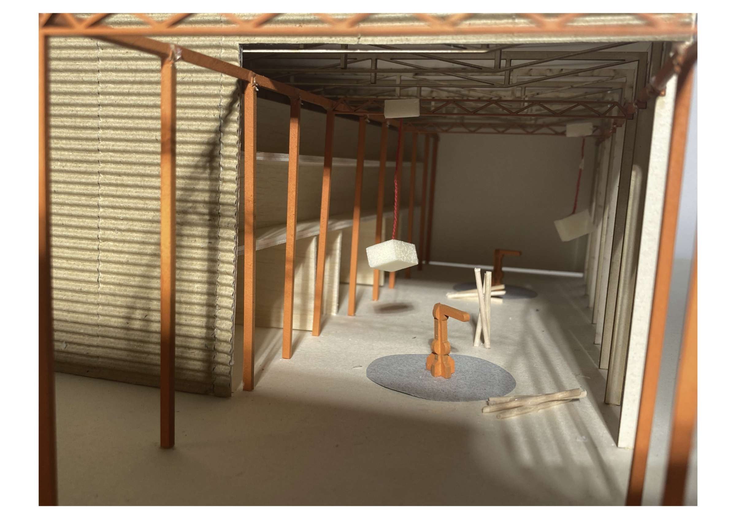 Im Anschluss an die Konzepterstellung widmeten sich die Teams jeweils einem Gebäude, das als wegweisende digitale Baufabrik dienen und spannende Experimente ermöglichen soll. Die Baufabrik fungiert in erster Linie als Labor, aber auch als Showroom und Austauschort für verschiedene Fachrichtungen, wobei der Fokus auf der digitalen Fabrikation und dem Holzbau liegt.