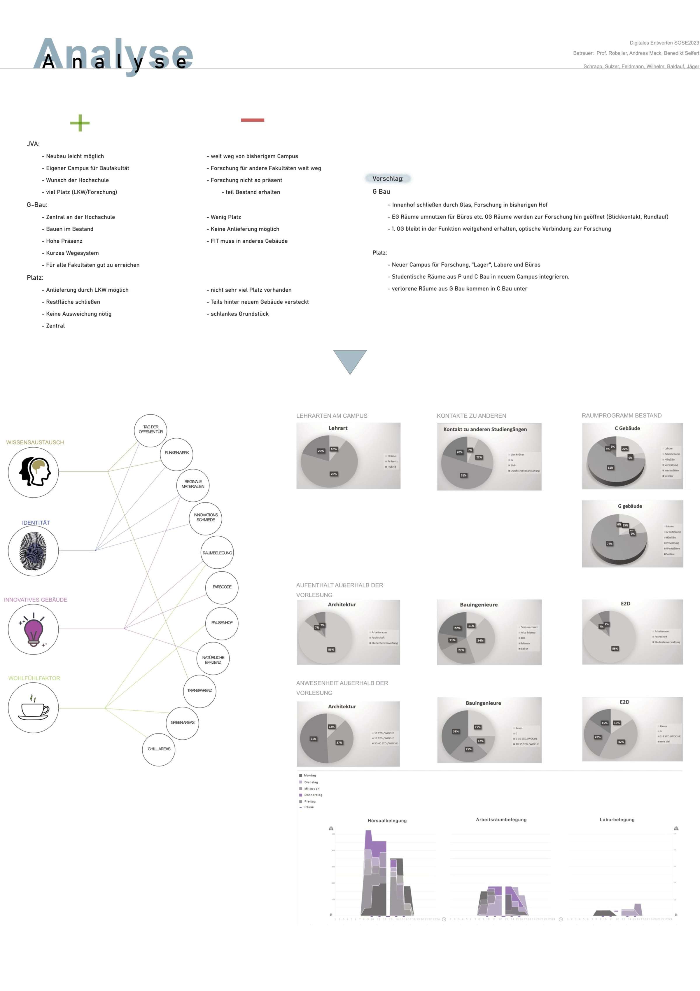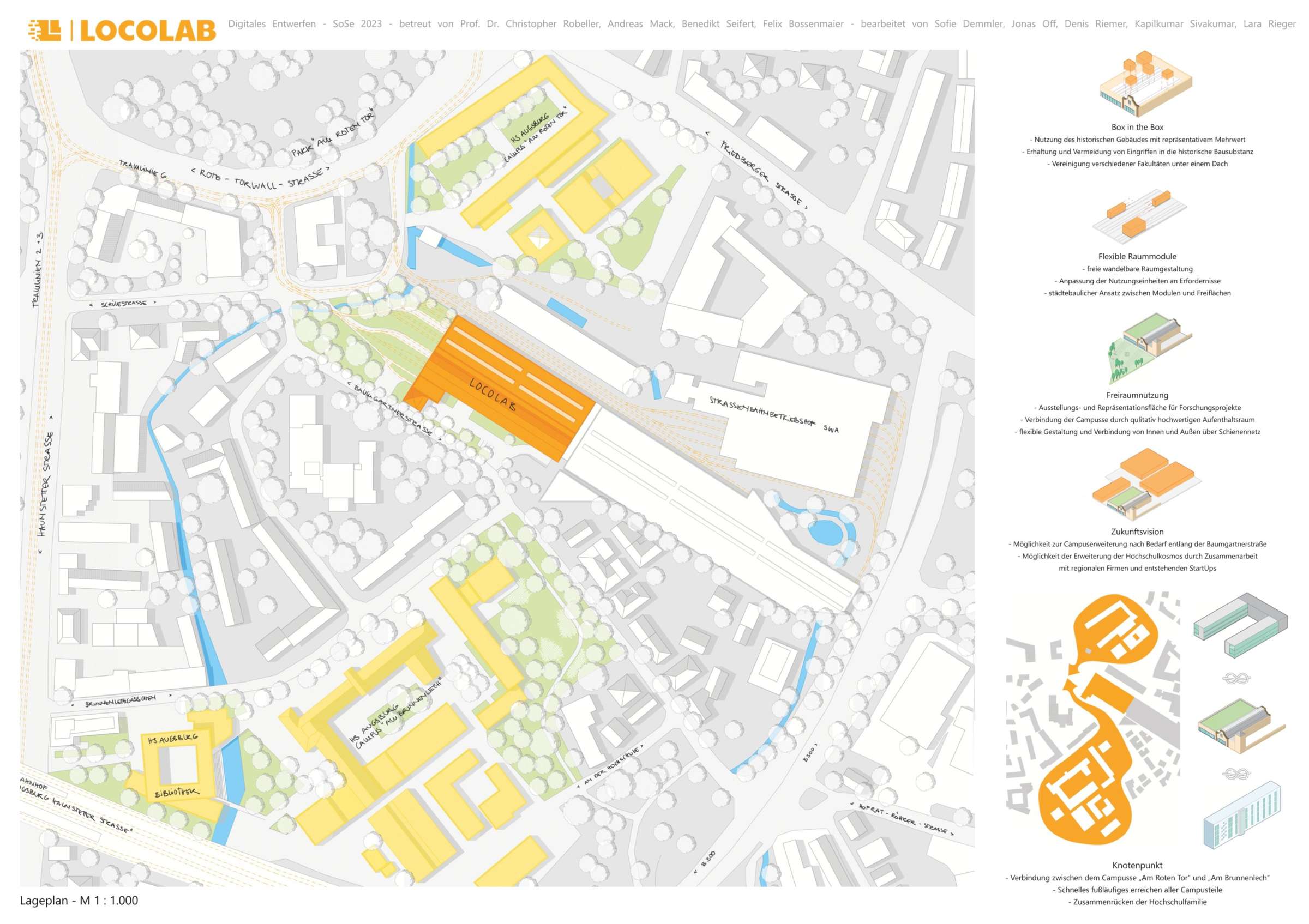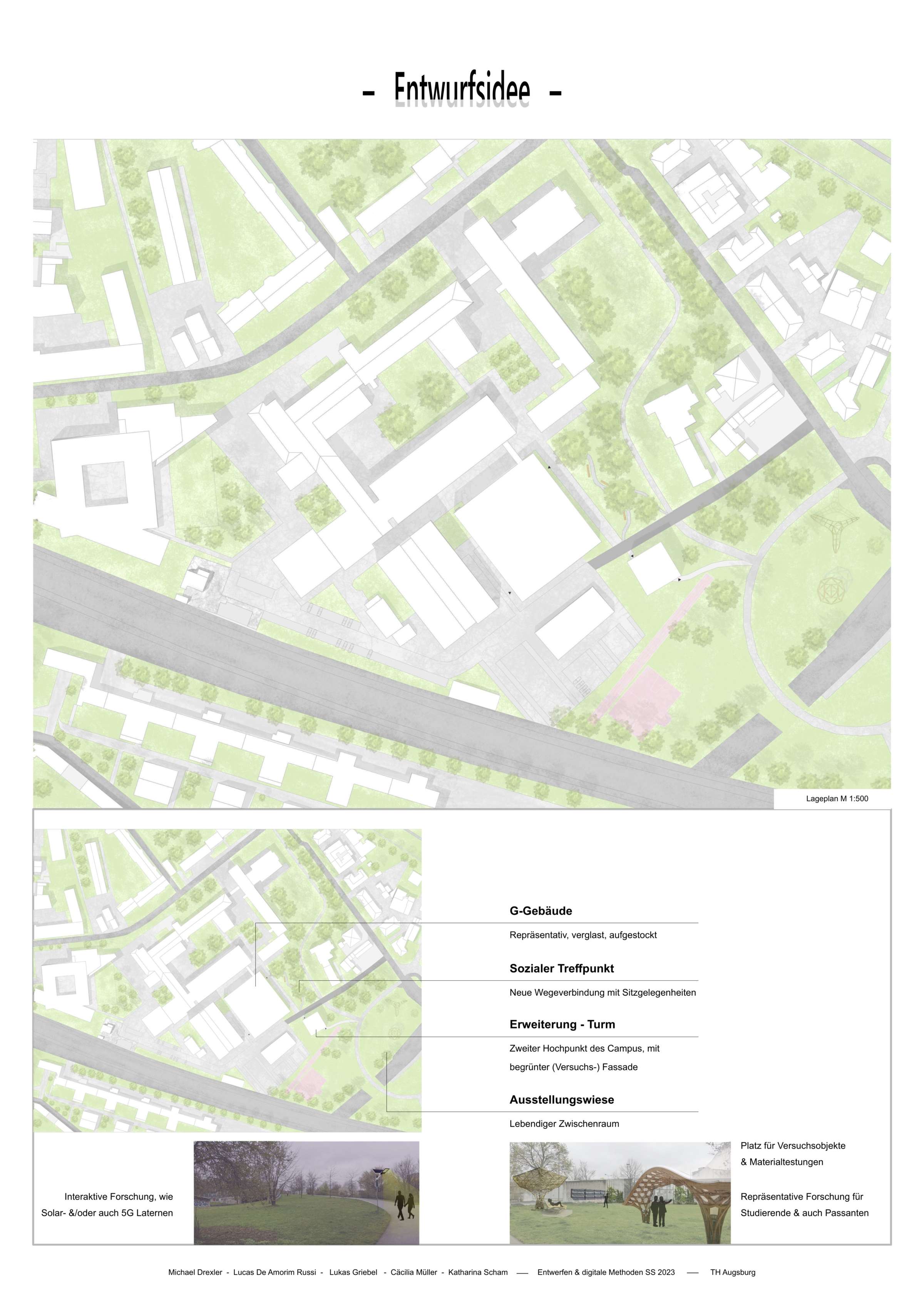 Zur Unterstützung bei der Konzepterarbeitung fand ebenfalls ein Vortrag zum Thema Städtebau statt. Dieser half den Studierenden dabei, einen modernen, belebten Campus mit hoher Aufenthaltsqualität zu gestalten und den fakultätsübergreifenden Austausch zu fördern.