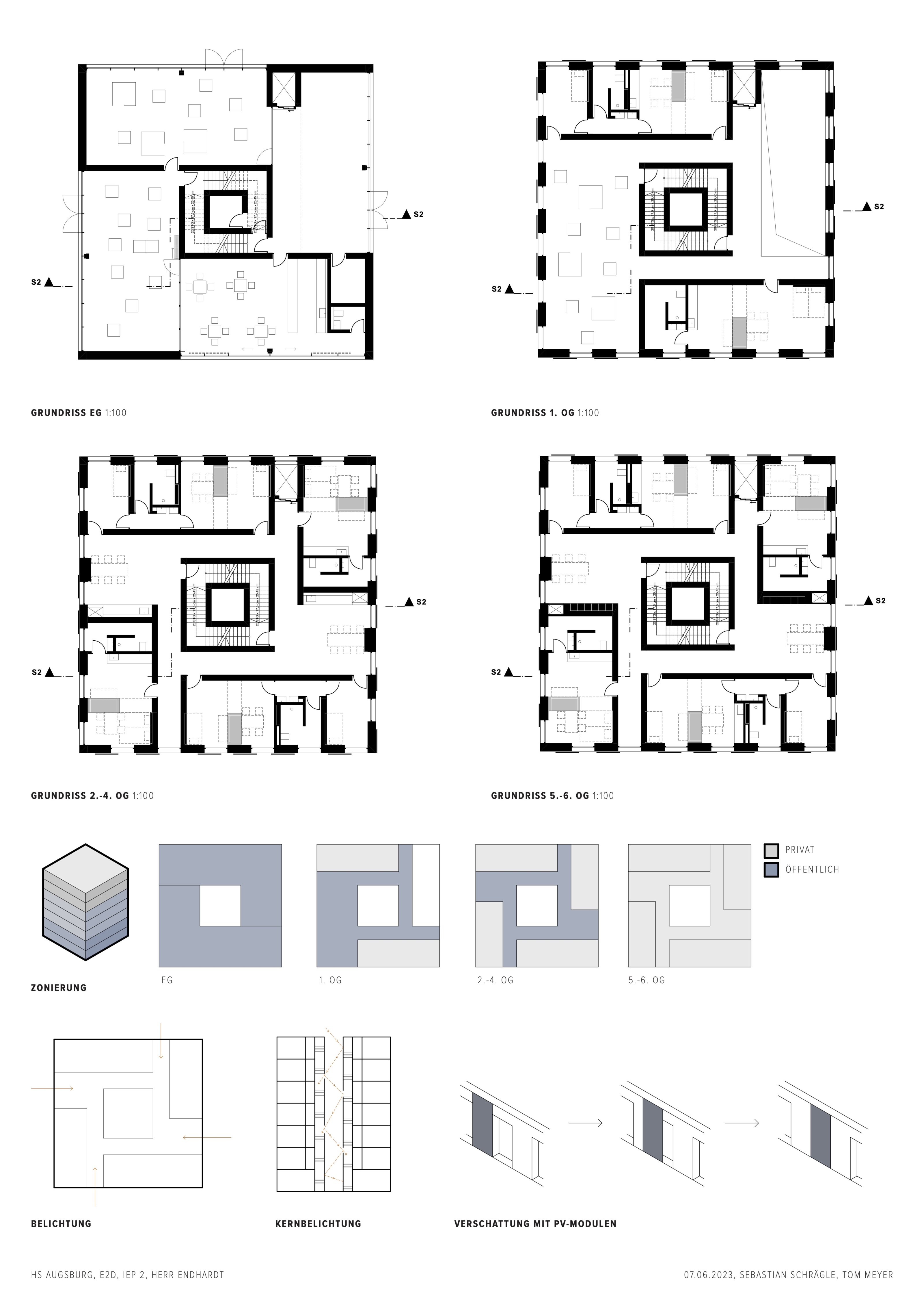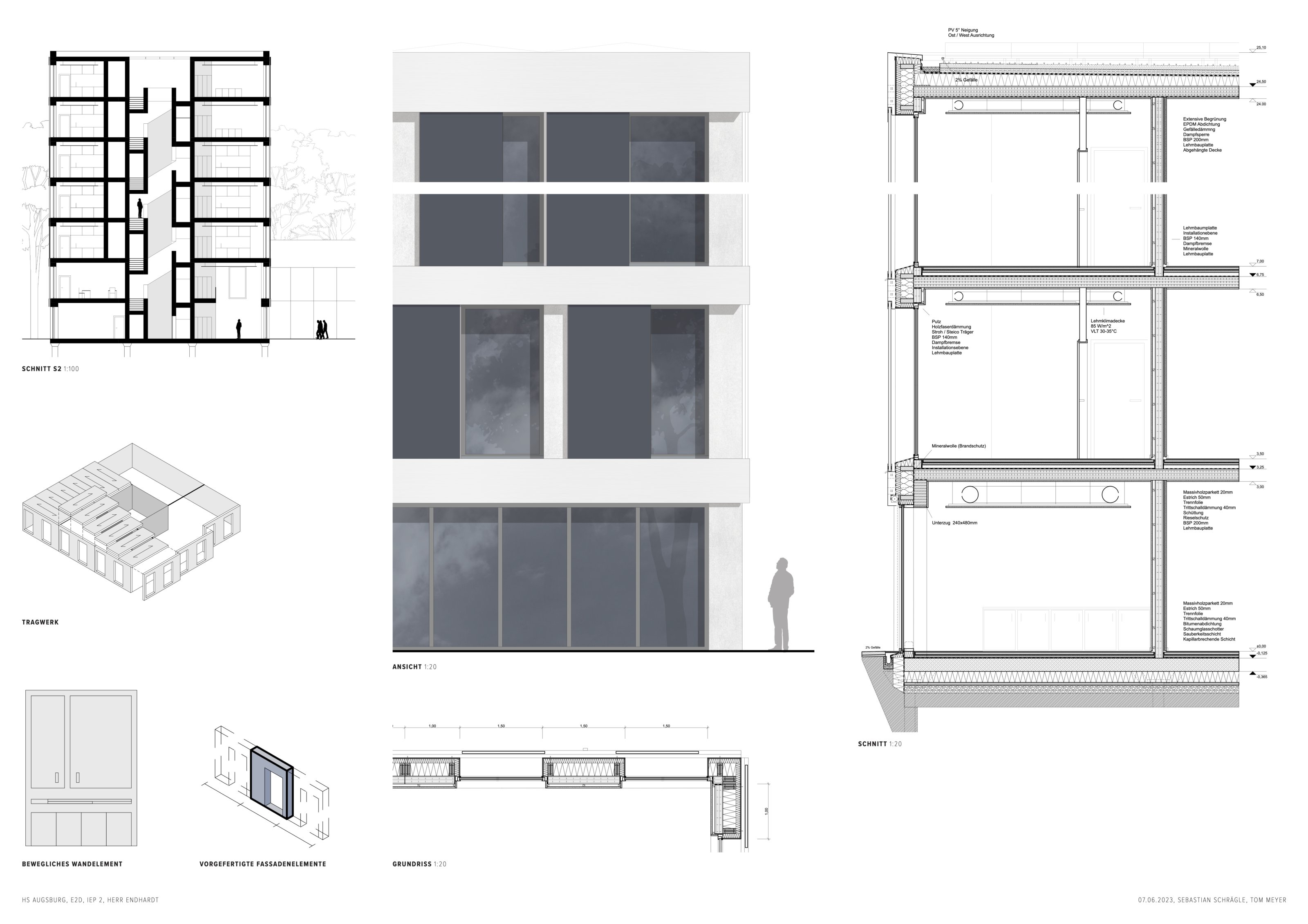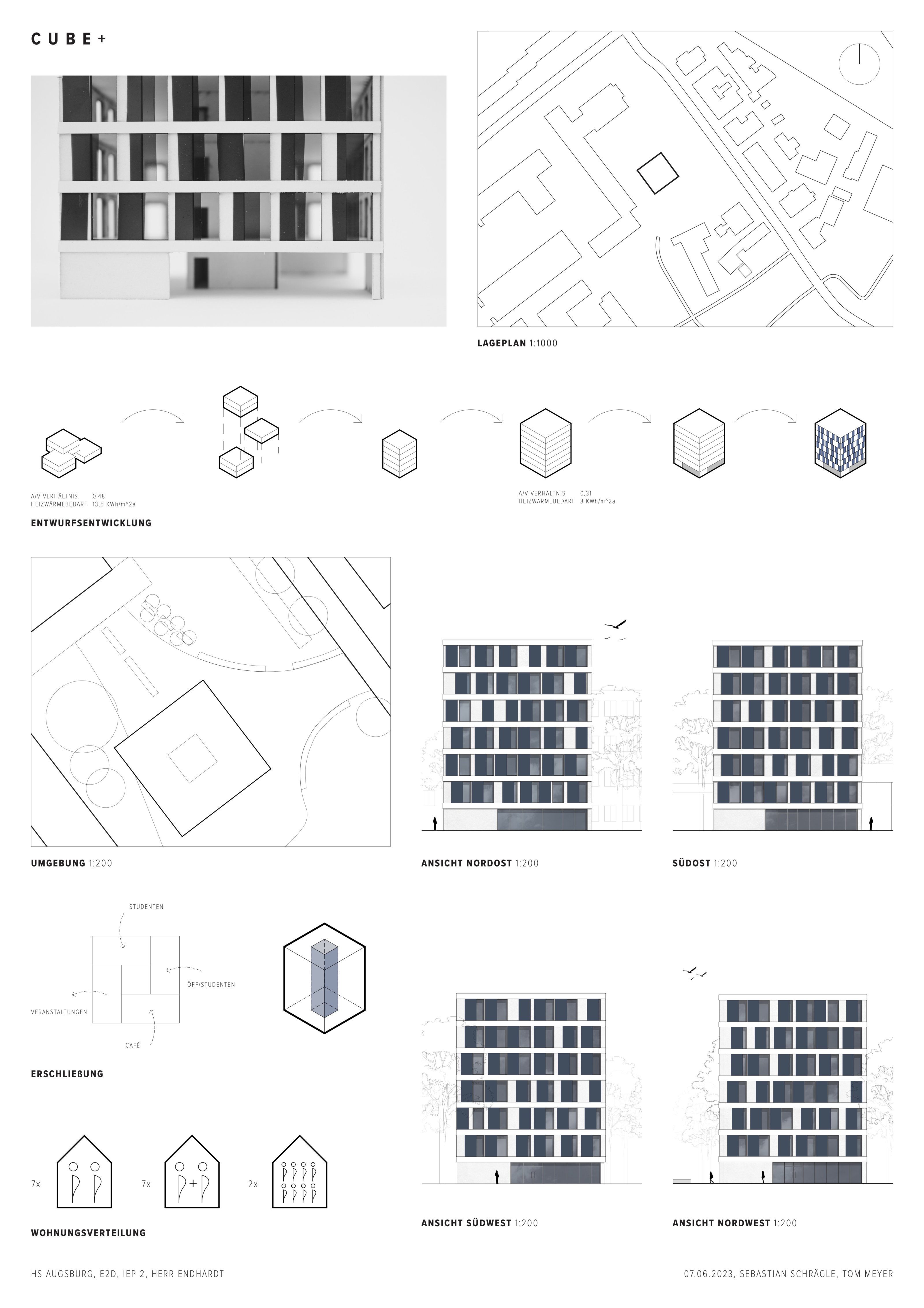 Die Entwurfsaufgabe besteht aus der integralen Planung eines Studierendenwohnheims der TH Augsburg in Passivhausstandard auf dem Campus am Brunnenlech. Das Grundstück befindet sich in direkter Näher des C-Gebäudes und der Alten Mensa der Hochschule an der Baumgartnerstraße. Studierende aller Fakultäten der Hochschule erhalten die Möglichkeit, direkt auf dem Campus zu leben - in flexiblen Wohnformen vom kleine Zimmer bis hin zu WGs, Gästezimmern oder Clusterwohnungen. Kleine Büros sind vorhanden, die gebucht werden können sowie Gemeinschaftsräume, die Möglichkeiten zu Spiel und Sport, Kultur, Kreativität etc. bieten. Wichtig sind der Austausch, die Kommunikation und die Gemeinschaft.