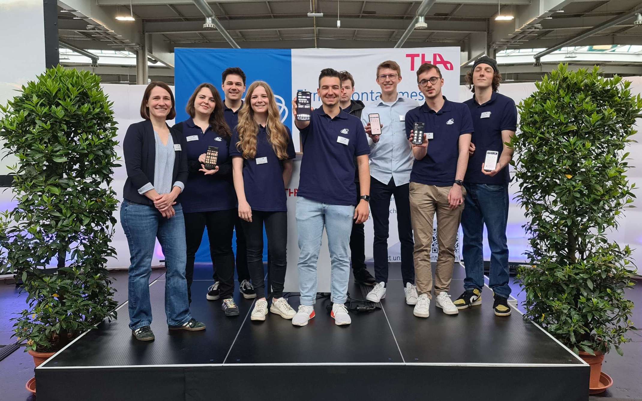 A student team consisting of Milo Franke, Felix Herbst, Franziska Funke called Kaiser, Raphael Karl, Jonas Kraus, Raphael Kraus, Michael Mai and Kristina Martel spent two semesters creating an app for the Pyramid company contact fair. The content of the trade fair guide, which was previously published as a printed book, can now be found in the app, as well as events and an interactive hall plan, so that you can quickly find your favourite company in the large exhibition hall. The option of selecting interesting companies in advance and saving them as favourites allows for a relaxed visit to the trade fair.