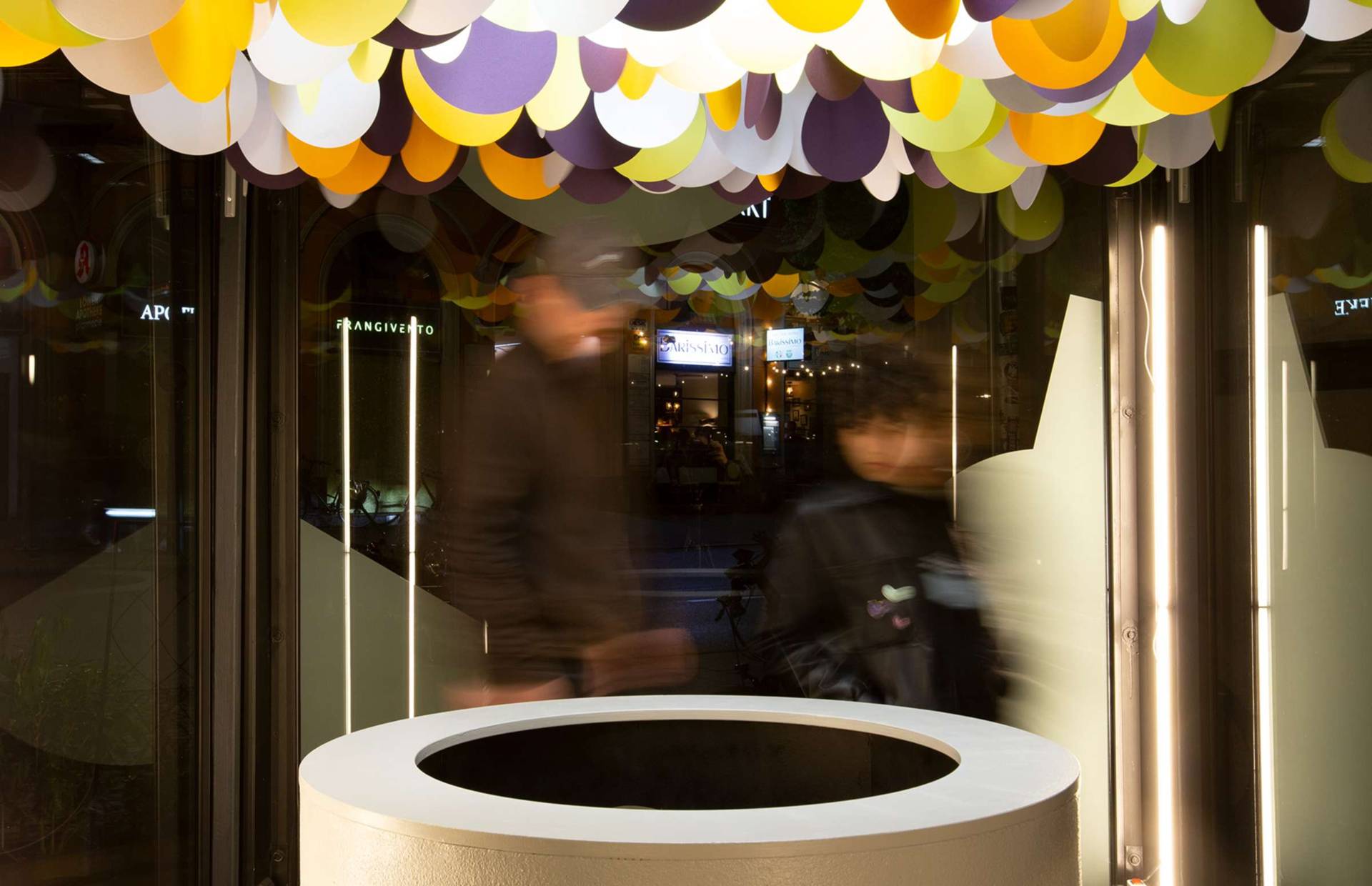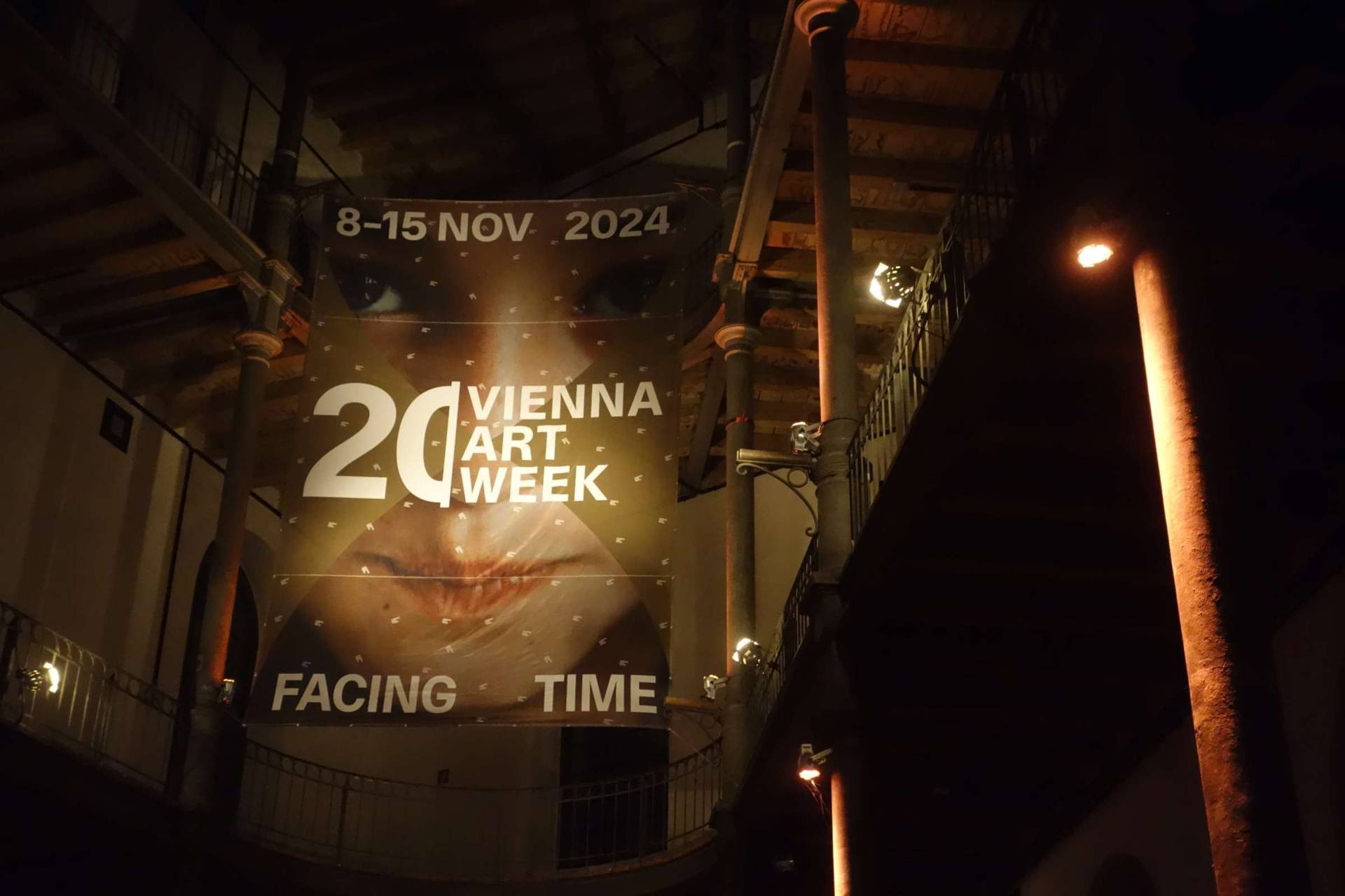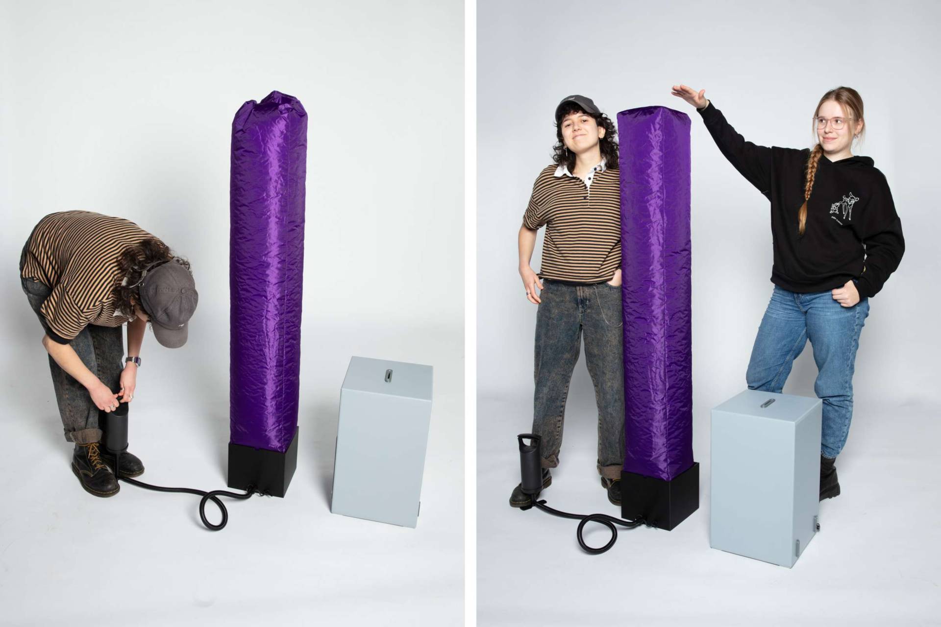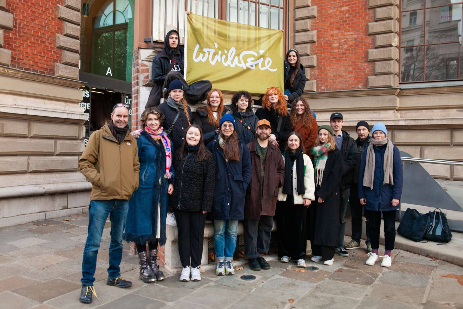 Bildergalerie zur Ausstellung der MA Identity Design Studienarbeiten des Jahrgangs’22 auf einer zur »Gesellschaftskolumne« umgestalteten Litfaßsäule mit Impressionen vom »Ausstellungsrundgang« (Vernissage).