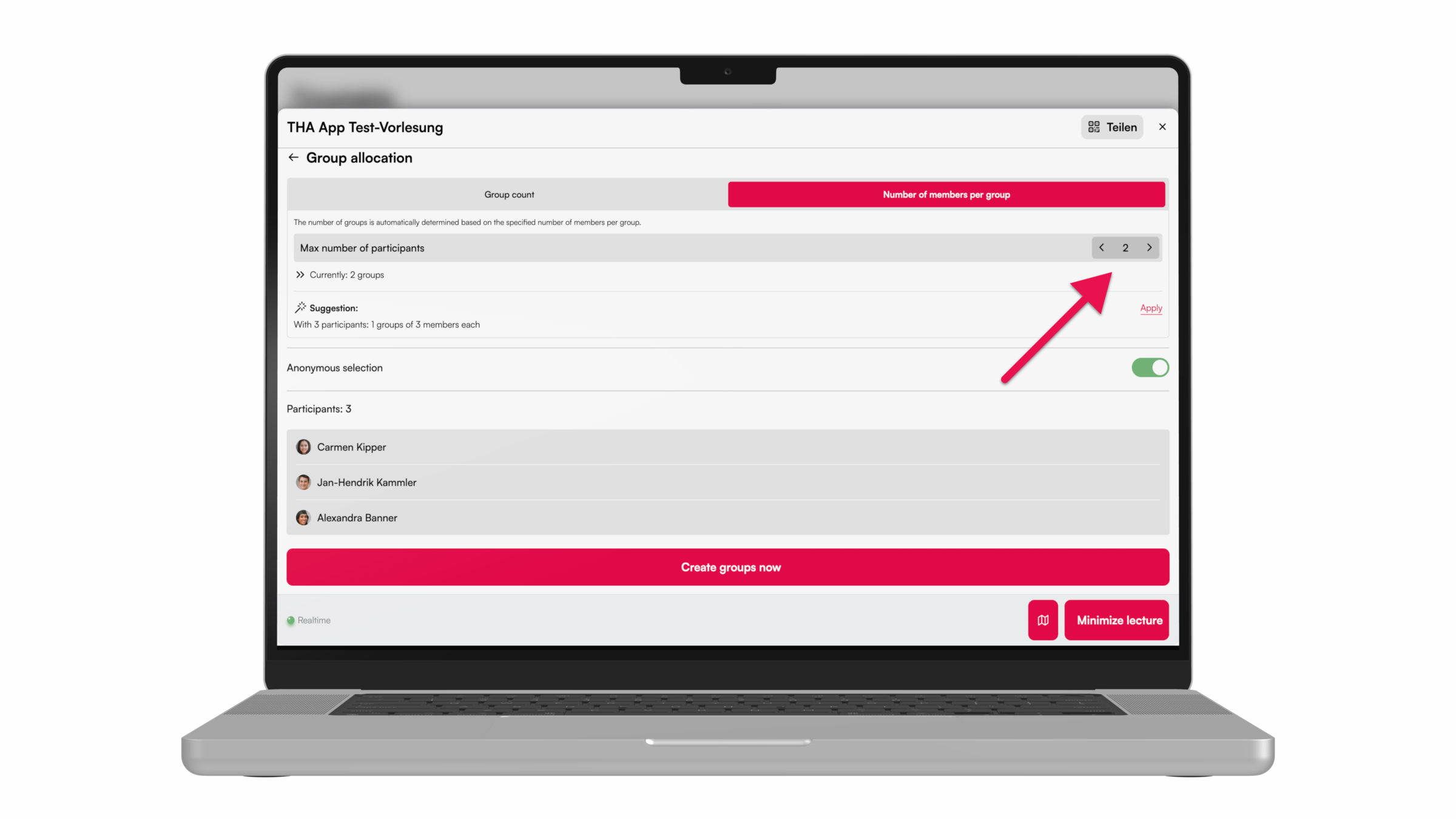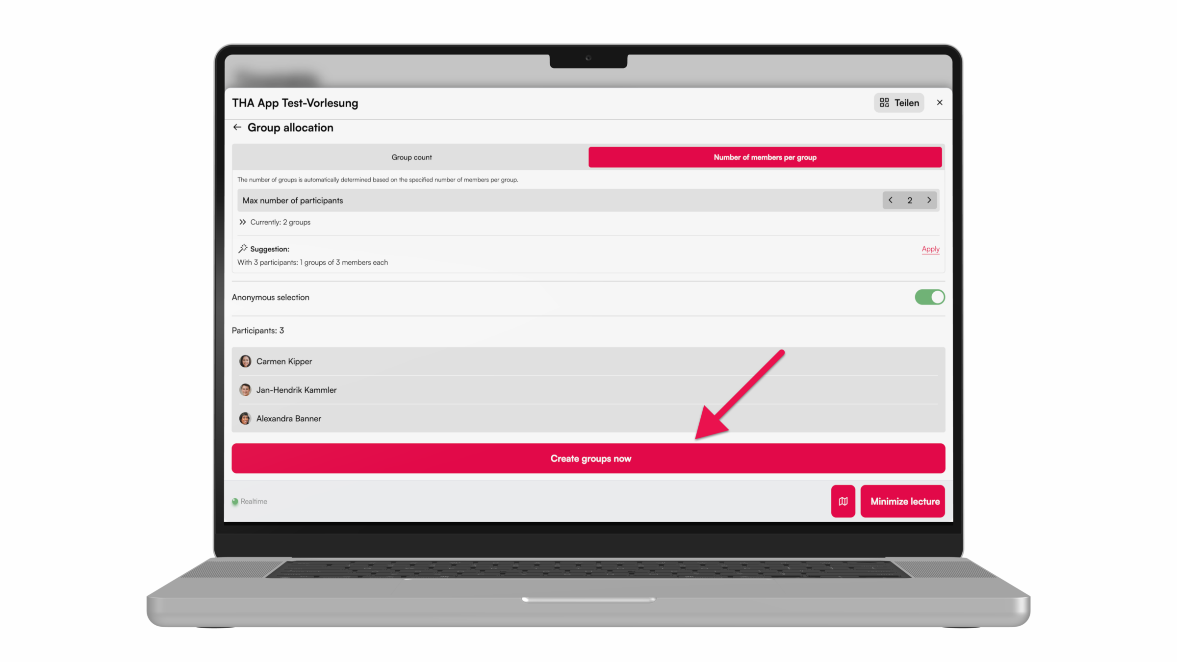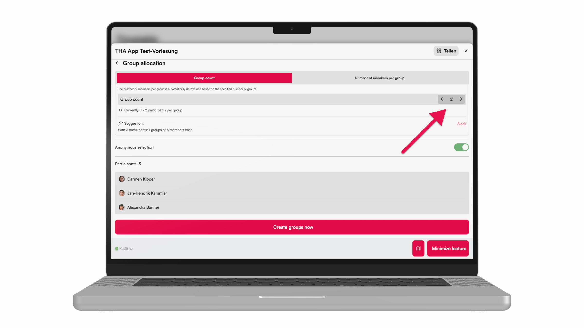 With the group division, groups can be formed spontaneously during the event, e.g. for the group puzzle method. Here we show you how to do it.