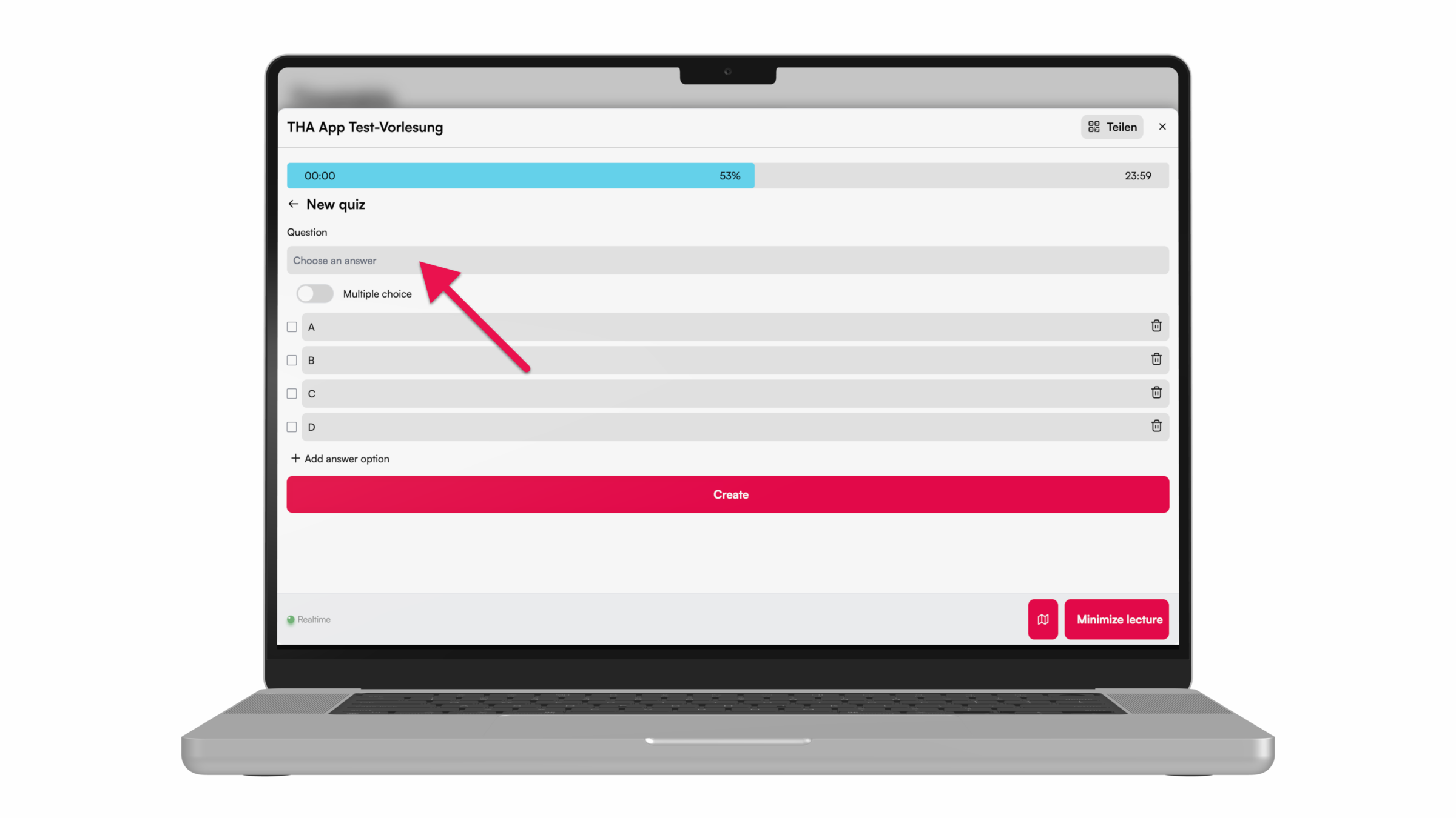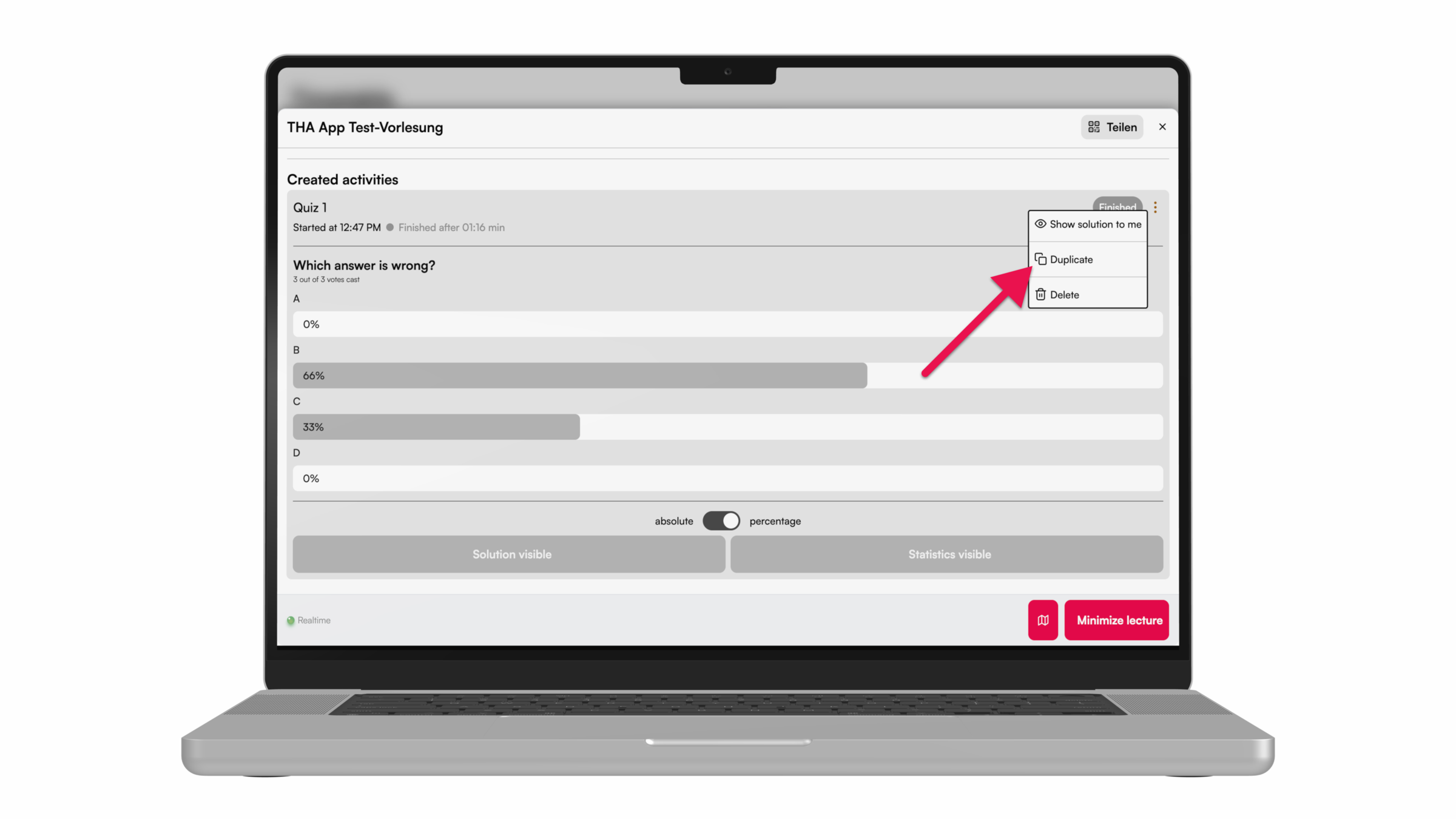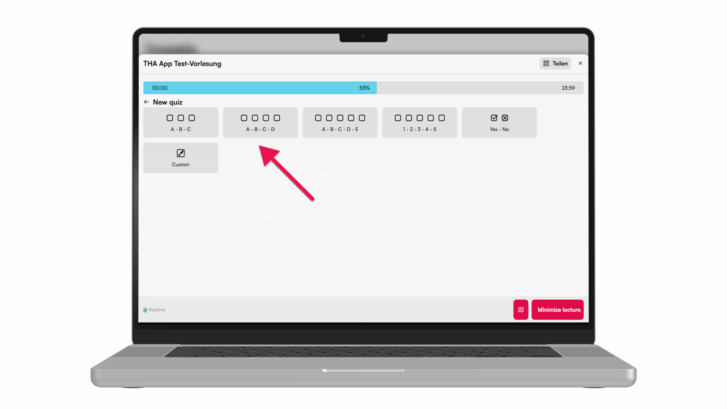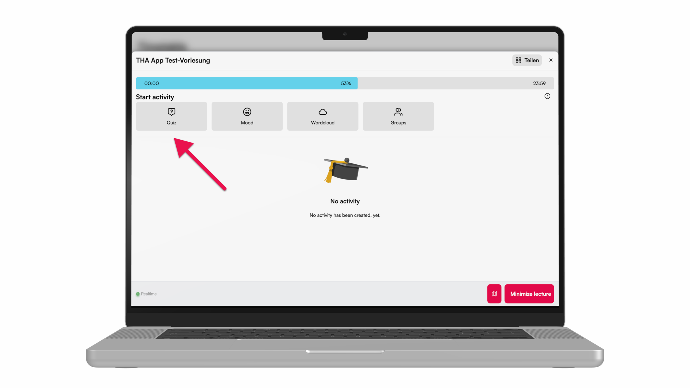 For more interaction during the lecture, e.g. with peer instruction, knowledge tests can be carried out using the quiz function. Here we show you how to do it.
