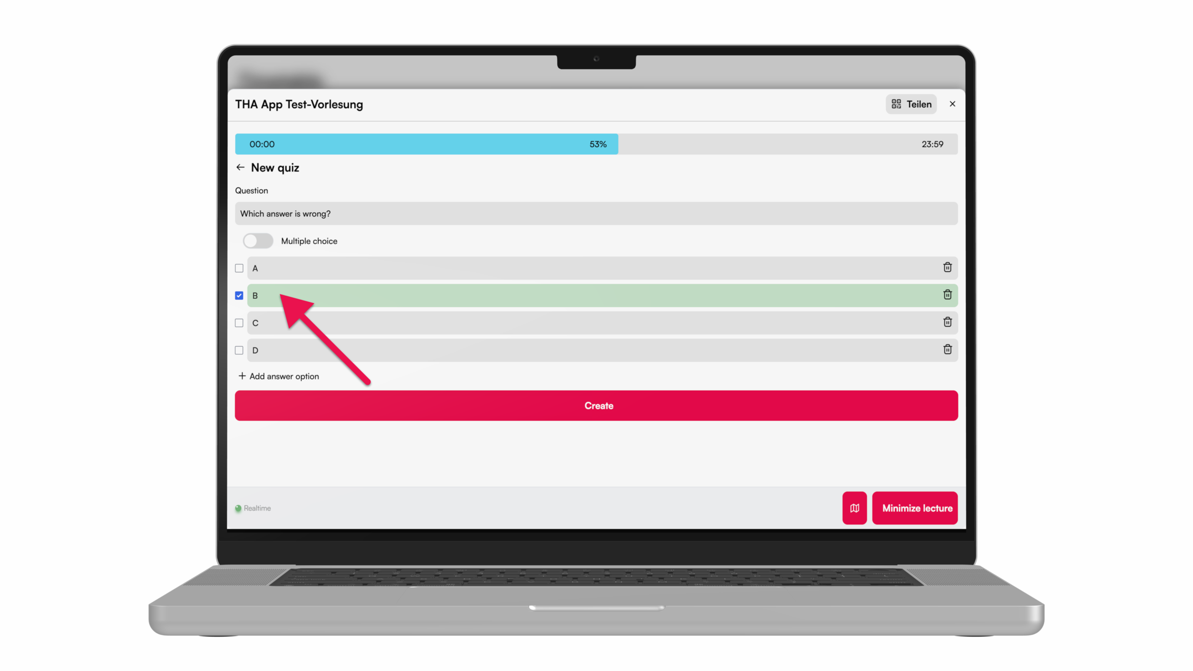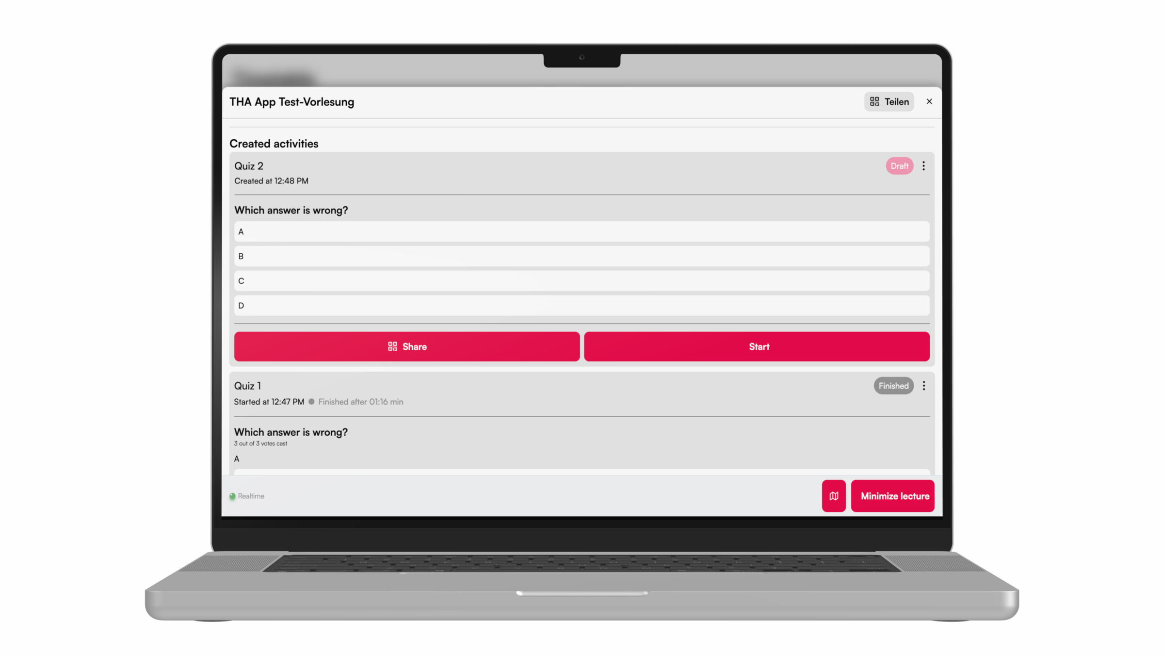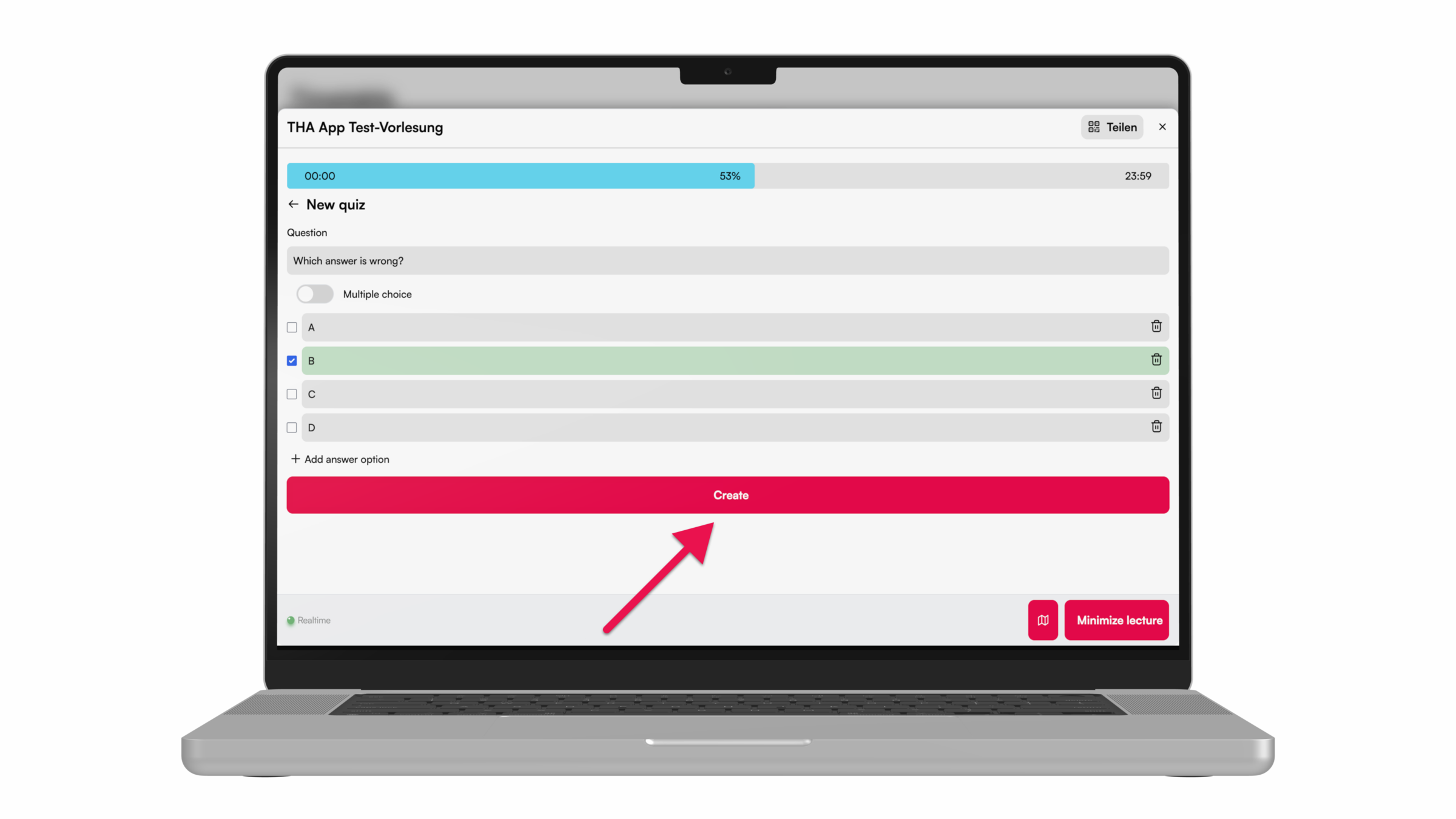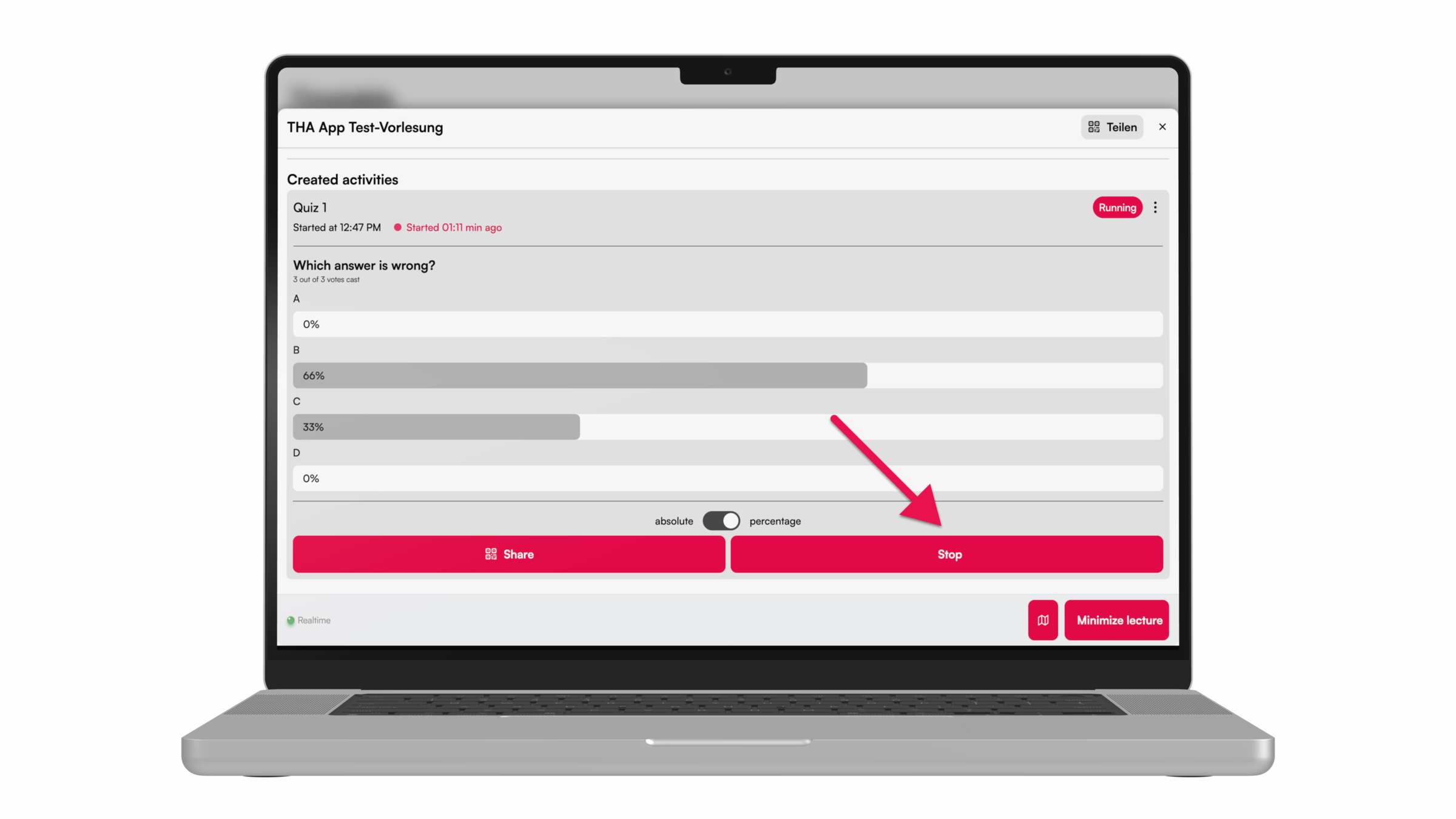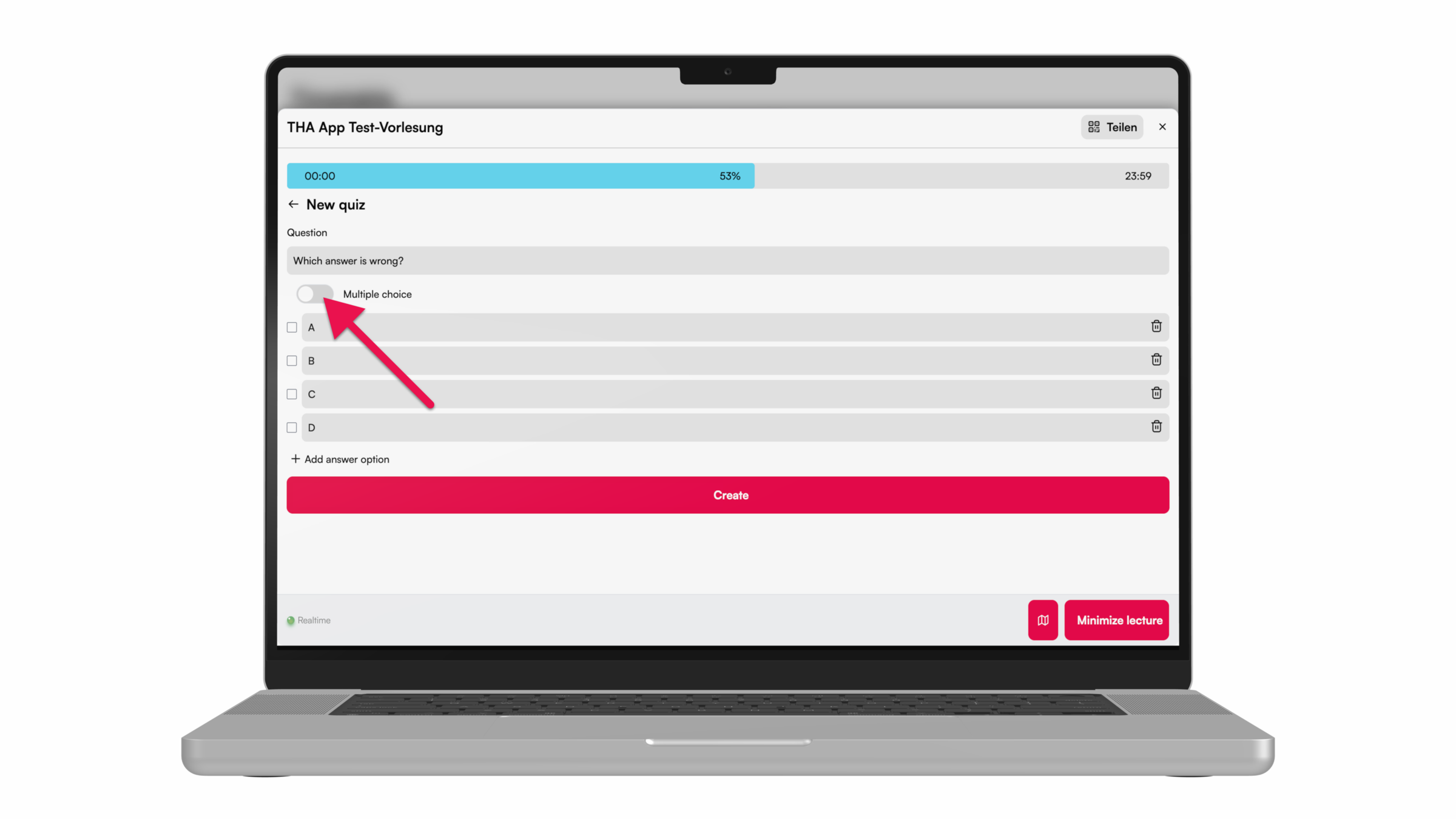 For more interaction during the lecture, e.g. with peer instruction, knowledge tests can be carried out using the quiz function. Here we show you how to do it.