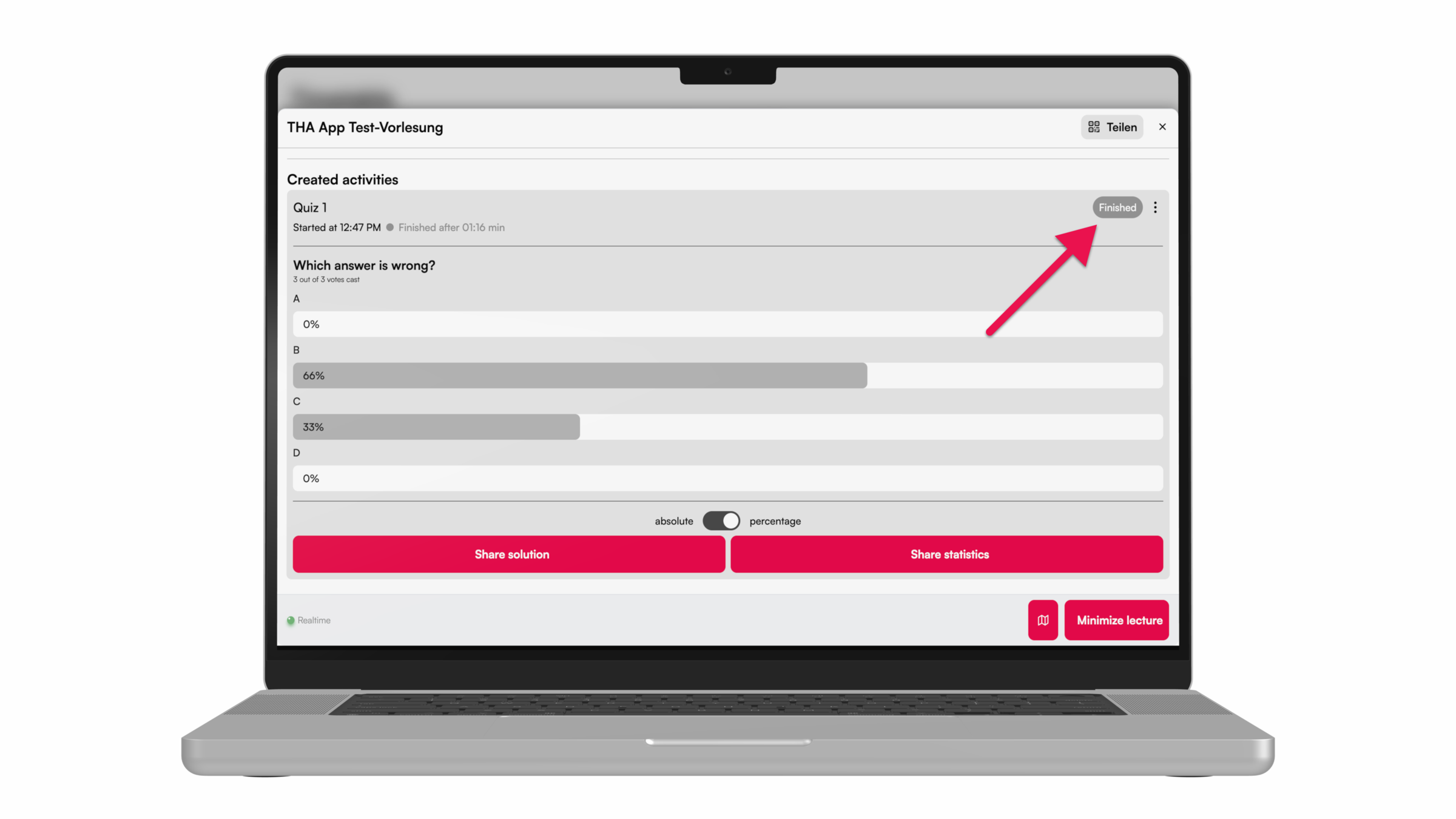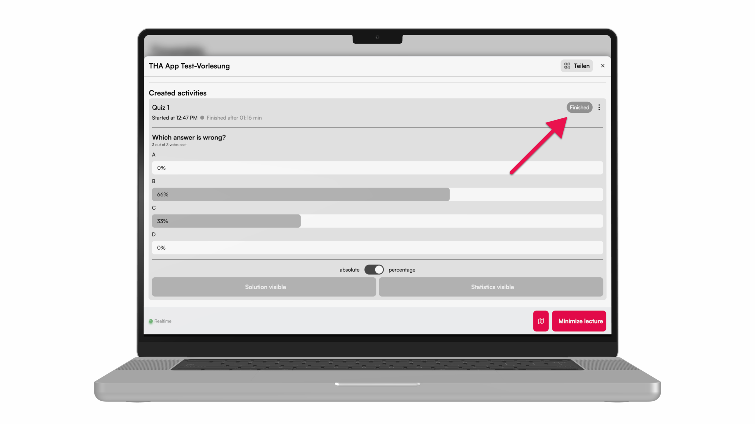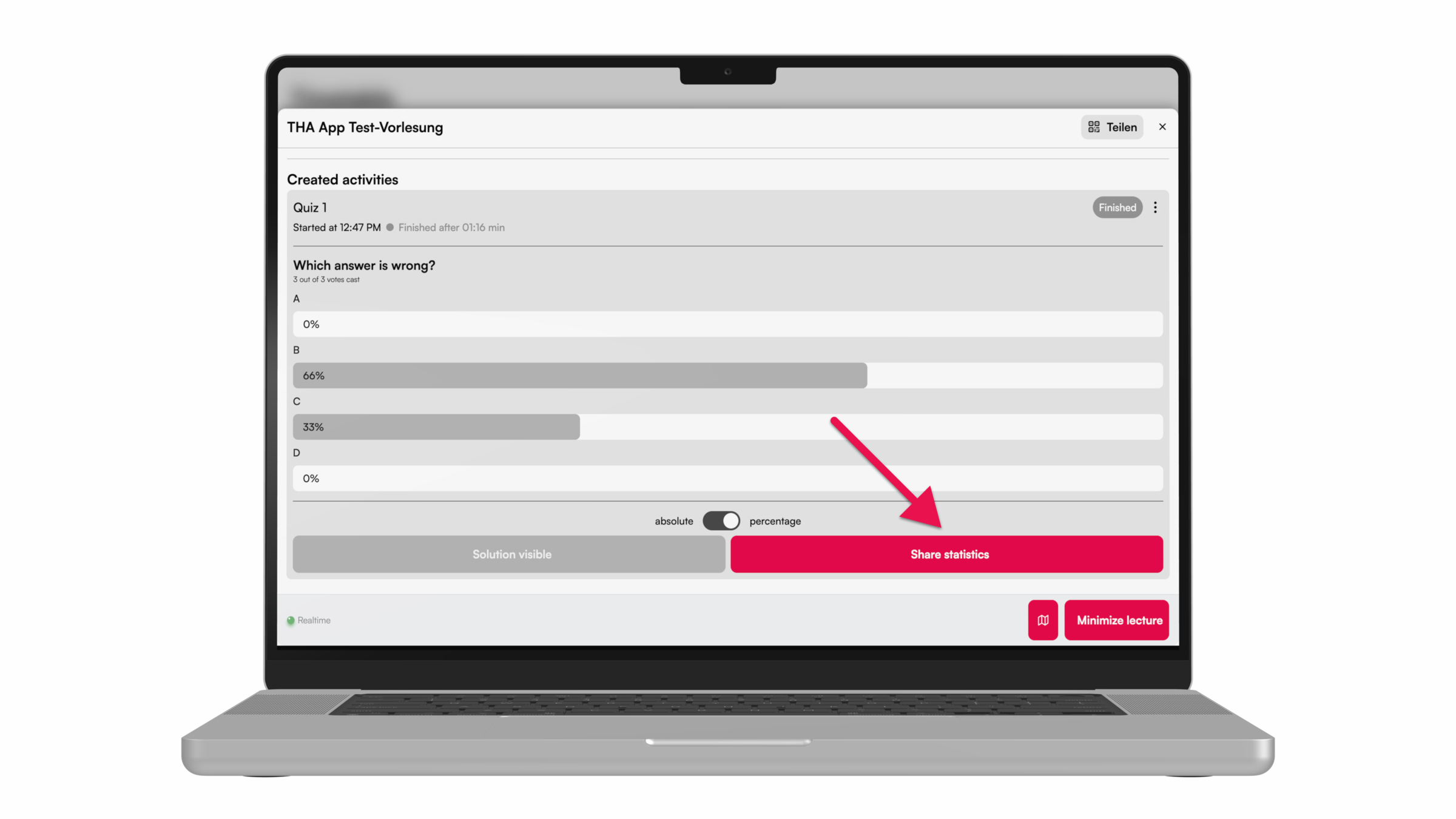 With the help of the quiz, Peer Instruction can easily be used in the lecture.
