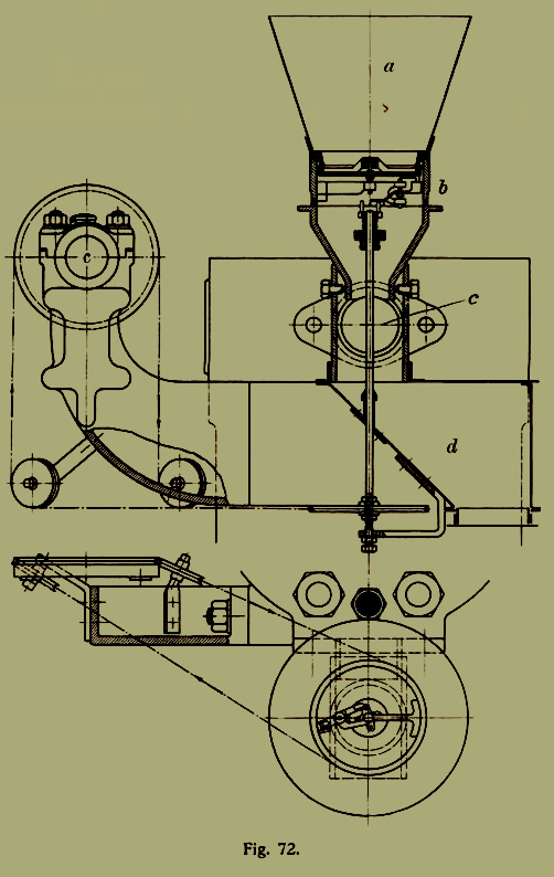 Als Abschluß der gesamten Laboratoriumsarbeiten wurden noch einige kurze Experimente mit Kohlenstaub durchgeführt.Auf dem Kasseler Vortrag im Juni 1897 hatte ich folgendes mitgeteilt: daß gleich von Anfang an die Ansicht herrschte, daß die Vergasung der Kohle grundsätzlich einfacher und billiger sei, als ihre Zermahlung und Siebung zu Mehl, und daß die Anwendung von Kohlenstaub, so verführerisch sie im ersten Augenblick erscheine, praktisch gegenüber der Anwendung von Kraftgas eher Nachteile als Vorteile biete.“ Und ferner: Ihre volle Bedeutung erhält jedoch die neue Maschine erst, wenn sie imstande sein wird, gewöhnliche Steinkohlen zu verwerten; ein Kraftgasgenerator dazu ist schon montiert.“Weil von Anfang an“ diese Ansicht bei den beteiligten Firmen herrschte, wurden, wie bereits auf Seite 8 und Seite 107 mitgeteilt, die ersten Versuchsmotoren sämtlich nur für flüssigen Brennstoff gebaut und ausschließlich hierfür durchgebildet.Die Ansichten über den Kohlenstaub hatten sich bis Ende 1899, in den sieben Jahren, die seit meinen ersten Vorschlägen verflossen waren, durch die Erfahrungen, welche gerade in dieser gleichen Zeitperiode mit den Kohlenstaubfeuerungen der Dampfkessel gemacht worden waren, geklärt. Wie sich die Zeitgenossen noch erinnern [126] werden, erregten diese Feuerungen damals großes Aufsehen und viel Begeisterung in der technischen Welt. Auch ich hatte sie an ausgeführten Anlagen eingehend studiert und mich mit den Fabrikanten von Kohlenstaub und Kohlenstaubmühlen in Verbindung gesetzt.Das Ergebnis der damaligen Erfahrungen war zunächst, daß eine Kohlenstaubindustrie überhaupt nicht bestand; es war schwer, diesen Brennstoff zu bekommen, er wurde eigentlich nur von den Fabriken hergestellt, welche die Kohlenstaubfeuerungen einrichteten. Außerdem war der damals käufliche Staub nicht entfernt fein genug für eine Anwendung in einem Verbrennungsmotor, wie ich sie mir vorstellte. Für diese Anwendung mußte der Kohlenstaub so fein sein, wie allerfeinstes Mehl, er mußte sich in ruhiger Luft längere Zeit schwebend erhalten, ohne sich abzusetzen.Ein solches Vermahlen und Sieben wäre sehr umständlich und viel zu teuer geworden. Da zudem der Kohlenstaub infolge seiner stark hygroskopischen Eigenschaften beim Lagern sofort wieder Feuchtigkeit annimmt, so ballt er sich schnell wieder zu Klümpchen zusammen, verliert stark an Heizwert und an sonstigen guten Eigenschaften und ist beim Lagern auch feuergefährlich. Wir waren also durch diese Erfahrungen zur Überzeugung gekommen, daß die Beschaffung und Erhaltung von feinstem Kohlenstaub an sich eine unpraktische und unwirtschaftliche Sache sei.Deshalb war Ende 1899 bei den beteiligten Firmen keine Neigung mehr vorhanden, nach dieser Richtung noch kostspielige Versuche zu machen, um so weniger, als die vorhandenen Versuchsmotoren nur für flüssigen Brennstoff durchgebildet waren; infolgedessen eigneten sie sich in ihrem gesamten Aufbau, in der Art ihrer Kolbenschmierung, in den Brennstoffeinfuhrvorrichtungen usw. nicht für Kohlenstaubbetrieb. Ein richtiger Kohlenstaubmotor hätte von Grund auf neu gebaut werden müssen mit Spezialeinrichtungen für das Einblasen des Kohlenstaubs und mit einer Kolbenschmierung, welche das systematische Ausspülen etwa zwischen die Ringe eingedrungenen Staubes erlaubte. Ferner hätte die Verbrennungskammer seitlich getrennt vom Zylinder ausgebaut werden müssen mit Einrichtungen, welche nur ein Minimum von Rückständen nach dem eigentlichen Zylinderraum übertreten ließen.Nachdem ich aber den Vorschlag zur Anwendung von Kohlenstaub gemacht hatte, lag mir begreiflicherweise trotzdem daran, solche Versuche noch zu machen. Durch Aufwendung meiner ganzen Beredsamkeit gelang es mir dann endlich, die Zustimmung der Maschinenfabrik zu einigen kurzen Versuchen im Dezember 1899 noch zu erwirken, allerdings in einer Form, die vom ursprünglichen Dieselprinzip [127] abwich, da dieses im vorhandenen Motor ohne teuere Umbauten, wie erwähnt, nicht durchführbar war.Es konnte in diesem Motor nur so gearbeitet werden, daß der eingesaugten Luft gepulverter Brennstoff beigemischt und mit ihr komprimiert wurde, worauf im oberen Totpunkt ein wenig Zündbrennstoff mit der gewöhnlichen Düse eingespritzt wurde, wodurch die Mischung zur Zündung und Verbrennung gelangte, ein Verfahren, welches auch schon mit Leuchtgas probiert worden war, und welches ich mit Kraftgas noch durchzuführen gedachte.Lange vor den Versuchen im eigentlichen Motor hatte ich schon zahlreiche Laboratoriumsversuche der Verbrennung verschiedener Kohlenstaubsorten an offener Luft durchgeführt; es wurden dabei abgewogene Mengen Kohlenstaub mittels eines Blasrohres in einen Glaszylinder geblasen und beobachtet, wieviel Staub schwebend blieb und wieviel sich absetzte. Es wurde ferner der Kohlenstaub des Handels in kleinen Sieben mit verschiedenen feinmaschigen Messinggeweben gesiebt und eine abgewogene Menge des durchgesiebten Materials mittels eines Blasrohres durch eine offene Flamme geblasen, wobei sich immer eine explosionsartige, meist klare Verbrennung ergab. Die Flamme war mit einem Schirm umgeben, so daß die Rückstände der Verbrennung aufgefangen wurden. Es zeigte sich dabei immer unter der Lupe, daß der Rückstand aus feinen Kokspartikelchen bestand, davon herrührend, daß die gröberen Körner nur entgast, d. h. verkokt wurden, während das ganz feine Pulver restlos verbrannte; je gröber das Pulver, desto größer die Menge der Koksrückstände. Weitere von Herrn Paul Meyer durchgeführte Versuche über die Eigenschaften verschiedener Kohlenstaubarten sind in der Tabelle S. 128 zusammengestellt.Für die Versuche im Motor selbst wurde der Apparat Fig. 72 angebracht, welcher von der Schweizerischen Kohlenstaubfeuerungs-Aktiengesellschaft, Zürich (Patent Wegener), bezogen war; der in dem Trichter a eingelagerte und durch das Rüttelsieb b gesiebte Staub mischte sich dem unter dem Sieb durchstreichen