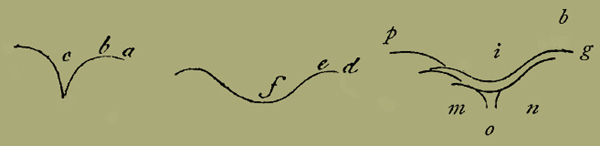 Le parti che mettono in mezzo il gobbo del naso si variano in otto modi: 1° cioè o esse sono egualmente dritte, o egualmente concave, o egualmente convesse; 2° ovvero sono disugualmente rette, concave e convesse; 3° ovvero sono nelle parti superiori rette e di sotto concave; 4° ovvero di sopra rette e di sotto convesse; 5° ovvero di sopra concave e di sotto rette; 6° o di sopra concave e di sotto convesse; 7° o di sopra convesse e di sotto rette; 8° o di sopra convesse e di sotto concave.