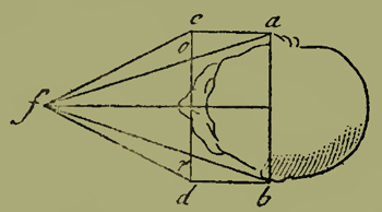 Sia dunque l'occhio posto nell'altezza a, il quale vede la sommità del monte b dopo la interposizione dell'aria a b, e vede la base d del medesimo monte dopo l'aria a d, spazio più breve che l'a b ; per essere essa aria ad più grossa che l'aria a b, la base del monte, com'è detto, parrà più distante che la sua cima.